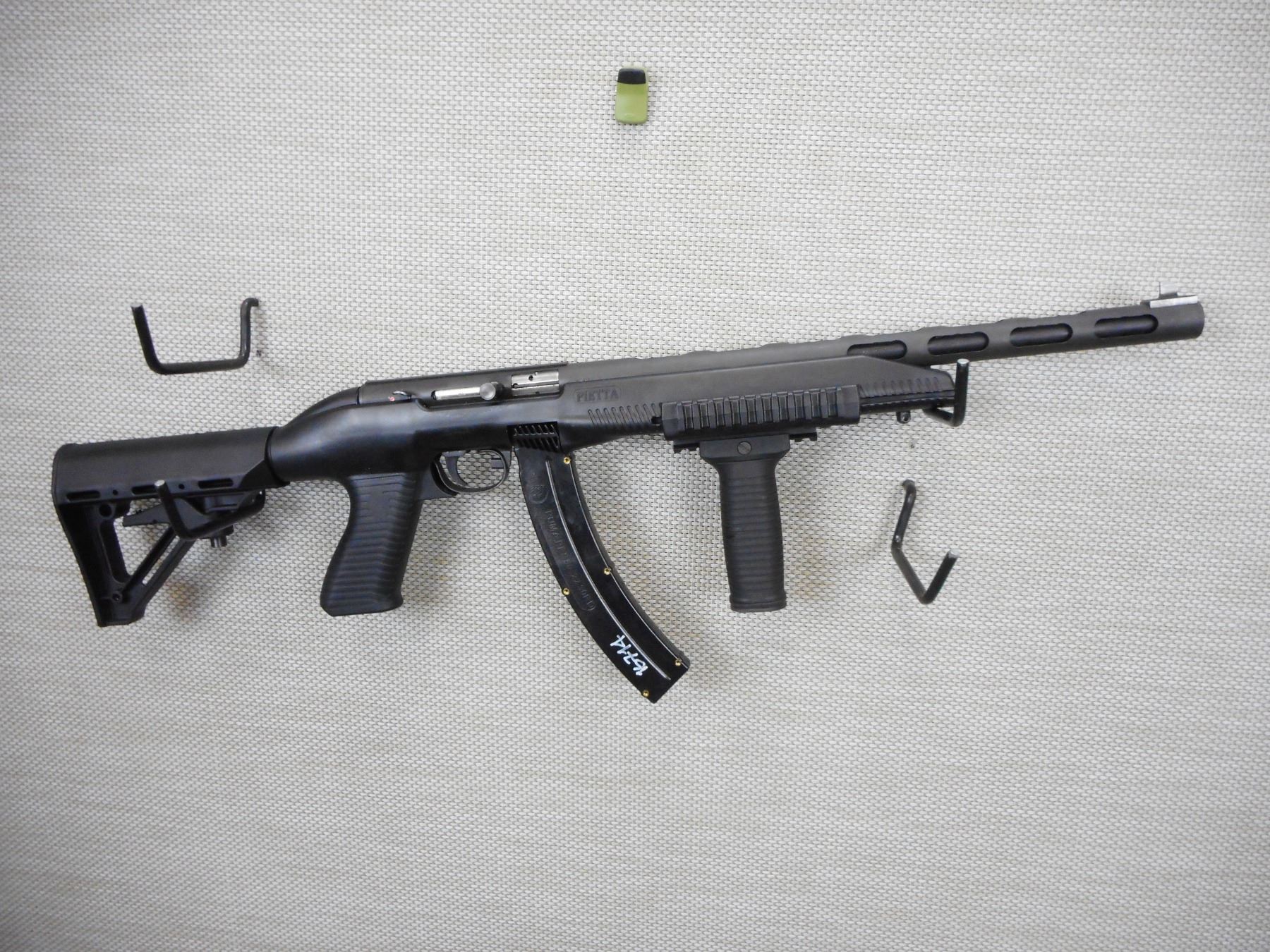 PIETTA , MODEL: PPS/50 , CALIBER: 22 LR , COMES WITH MAGAZINE, GOOD BORE, BLADE FRONT SIGHT, MISSING THE REAR SIGHT, FRONT AND REAR PISTOL GRIPS, COLLAPSABLE BUTT STOCK, SHOWS SOME HANDLING MARKS, UNSURE IF OTHER PARTS ARE MISSING, WHILE THIS FIREARM APPEARS TO BE NEW OR HAVE LITTLE USE IT IS A WARRANTY CENTRE RETURNS. THE PROBLEM COULD EITHER NOT BE RESOLVED OR REASON FOR RETURN CONDITION WAS INCONSISTENT OR NOT OBSERVED. THIS ITEM IS SOLD STRICTLY AS IS, THERE WILL BE NO FACTORY WARRANTY OR CONCESSION OF ANY KIND. THIS ITEM SHOULD BE PURCHASED AS A PARTS GUN ONLY AND NOT EXPECTED TO BE COMPLETE OR TO PERFORM AS AN O.E.M. MODEL , SERIAL # PP008110 , ACTION: SEMI AUTOMATIC RIFLE , BARREL LENGTH: 16" , CONDITION: PARTS GUN