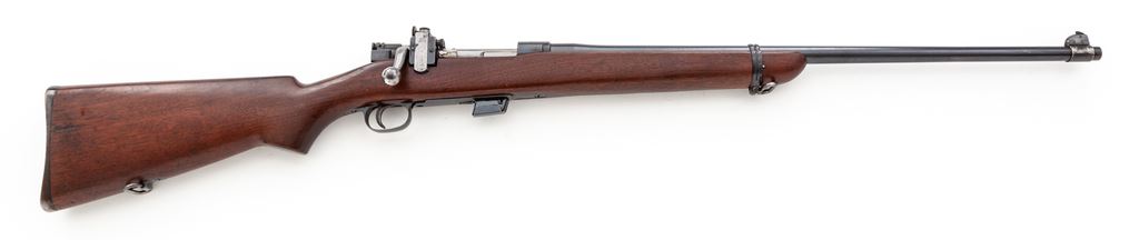 Early Springfield Model 1922 Bolt Action Sporter, #431, .22 LR cal., 24.5'' barrel (SA/6-22), blue finish, pistol-grip walnut stock, mill checkered cupped buttplate, with Lyman 48 rear and standard front sight. Includes one early M1922 GP rifle magazine. These rifles are considered quite scarce with approx. 2020 mfg'd. Condition is excellent retaining approx. 97% blue with most of the losses to the front sight band and highpoints of buttplate. Stock is excellent with one miniscule chip just behind the upper tang. Good action, bright bore. Est.: $1,800-$2,400. (C&R)