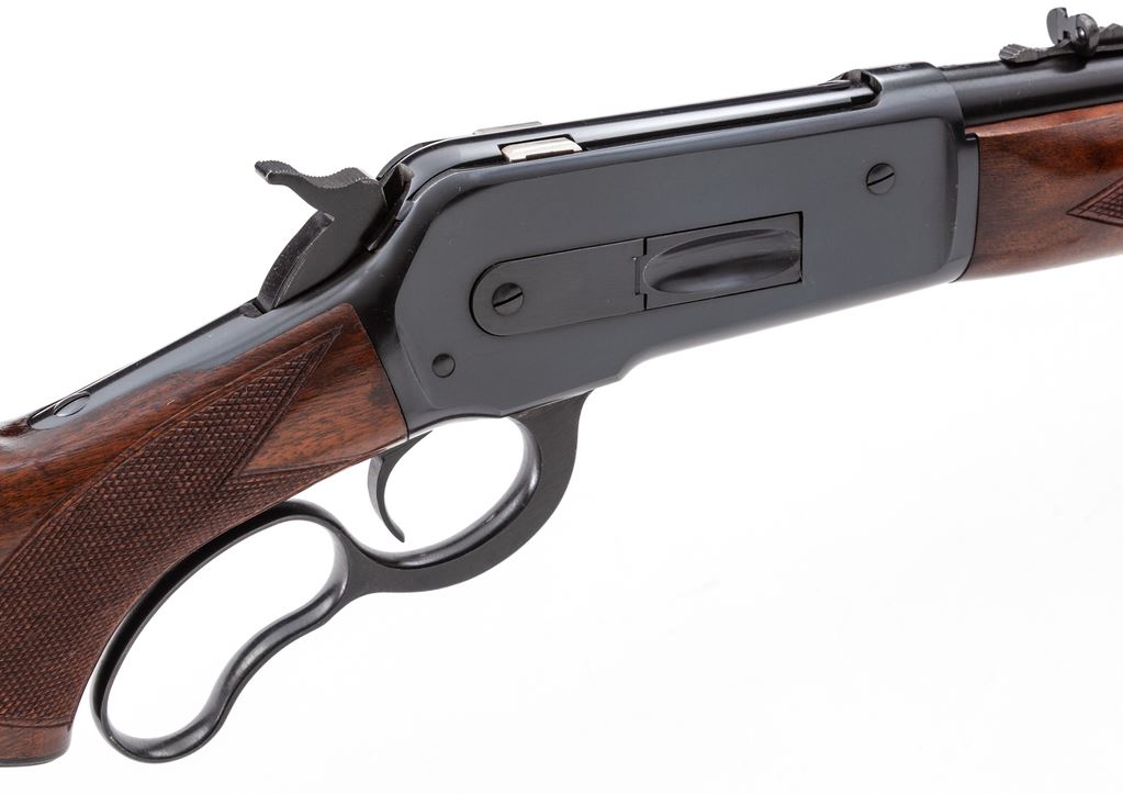 Winchester Deluxe Model 71 Lever Action Rifle, #40495, .348 cal., 24'' barrel, blue finish, checkered pistol-grip walnut stock and forend, factory sling swivel eyelets, standard sights, with checkered blue steel buttplate. Mfg'd 1954. Condition is excellent retaining approx. 98% blue with virtually no wear in the balance area just forward the lever. Stock with very light impressions. Action is good, bore is bright. Est.: $1,800-$2,400. (C&R)