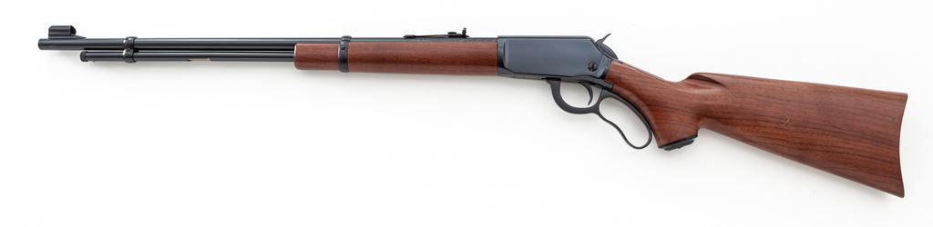 Winchester Model 9422 XTR Classic Lever Action Rifle, #F544417, .22 S-L-LR cal., 22.5'' barrel, dark blue finish, grooved receiver, pistol-grip walnut stock, smooth steel buttplate and grip cap. Sights include a hooded silver bead on ramped base front, and sporting elevator rear. In excellent overall condition with approx. 99% original finish. Right side of trigger with some light edgewear; left side of barrel near the muzzle with a small scratch. Wood shows a few light handling marks, the most noticeable being a moderate impression to left side of wrist. Action and bore are both excellent, and rifle appears to have been fired very little. Est.: $650-$850. (Modern)
