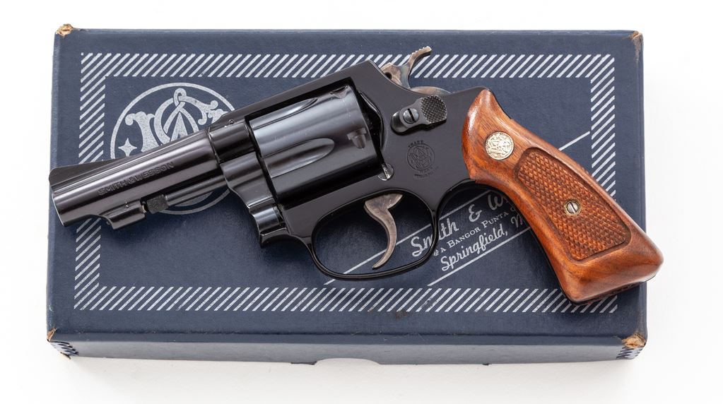 Smith & Wesson Model 37 .38 Chief's Special Airweight Double Action Revolver, #J839192, ,38 Spec. cal., 3'' pinned barrel, blue finish, factory checkered square butt PC magna walnut grips numbered to the gun with S&W medallions, serrated ramp front sight and standard square notch rear sight, on a 5 screw J-Frame with standard production thumb latch. Shipped January 1981, with information sheet from Roy Jinks. In a two-piece blue Bangor Punta box numbered to the gun, containing a parts list/instruction manual and S&W packing paper. Condition is near excellent with 99%+ factory bright blue showing a light index mark on cylinder. Hammer and trigger exhibit bright case colors. Crisp grips and action, bright bore. Est.: $600-$800. (Modern/PPT)