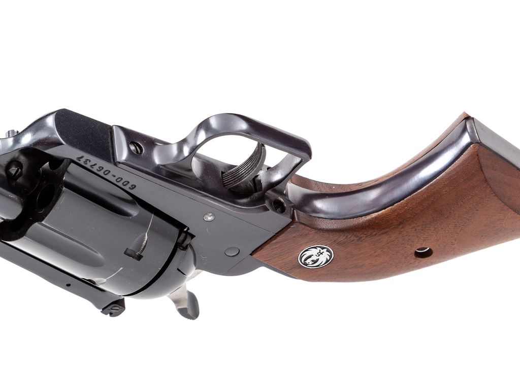 Limited Production Ruger New Model Blackhawk ''.357 Maximum'' Single Action Revolver, #600-06737, .357 Max. cal., 10.5'' barrel, blue finish, smooth wood grips with inlaid Ruger medallions, Patridge front sight, and square notched adjustable rear sight. In correct box with owner's manual. Condition is excellent and approx. 98%+ factory blue finish remains. Index line and light scratches to the rear portion of the cylinder account for most of the finish loss. Grips show minimal handling marks. Excellent action and bright bore. Approx. 11,500 were mfg'd in 1982-1984. Est.: $700-$900. (Modern/PPT)