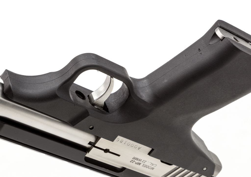 Excel Arms MP-22 Accelerator Semi-Automatic Pistol, with a .17 HMR & .22 Magnum barrel and six (6) magazines, #A000186, currently with a 8.5'' .17 HMR bull barrel, stainless steel, black polymer frame, integral Weaver style base with ramped front sight, and square notched fully adjustable rear sight. As previously mentioned, this pistol comes with six (6) total 9-shot magazines and an additional 8.5'' .22 magnum bull barrel. Overall this pistol rates in excellent condition showing normal light handling marks from range use. Action is smooth; both bores are bright. Est.: $500-$700. (Modern/PPT) (Paul Hantke collection)