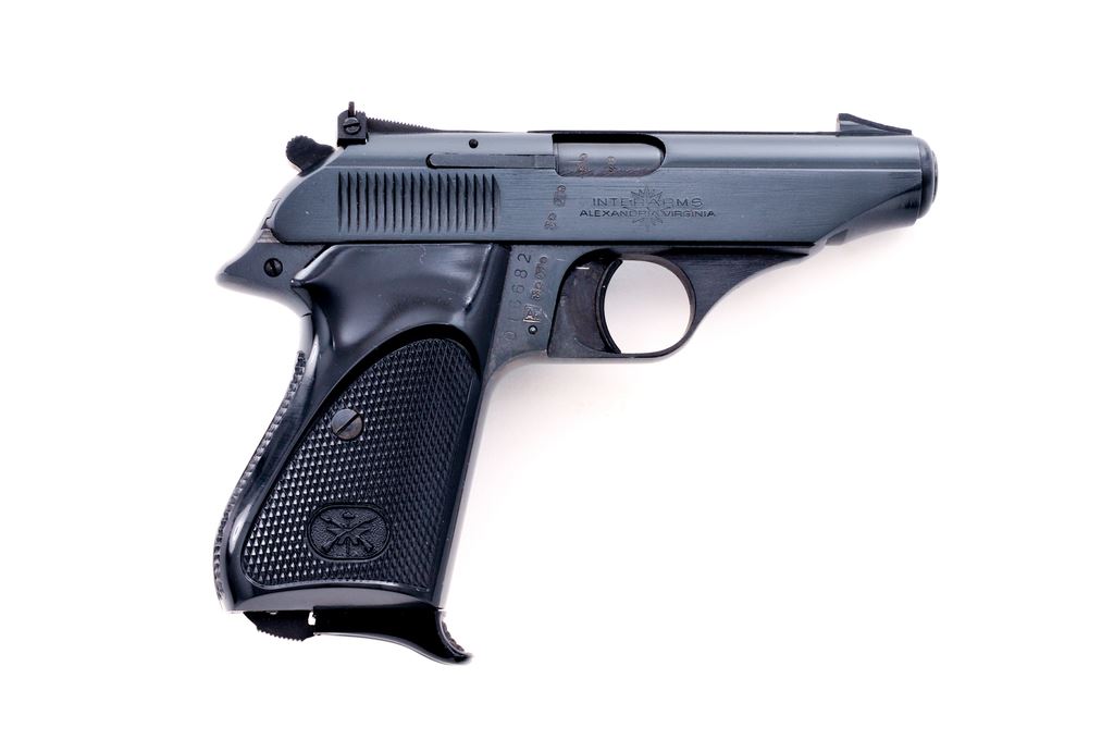 Bernardelli Model 80 Semi-Automatic Pistol, #016682, .380 ACP cal., 3.5'' barrel, blue finish, factory checkered black plastic thumbrest grips, with a fixed front sight, adjustable rear sight, and two (2) magazines with black plastic finger extension. In original two-piece box with matching end label, owner's manual, screwdriver, and cleaning brush. Right side of barrel, frame, and slide with various proofmarks; right side of slide is ''Interarms'' marked. Date code is ''AH'' mfg'd in 1981. Pistol is in excellent overall condition with 99%+ factory blue, showing just light handling marks. Grip checkering is sharp. Slide, hammer, and trigger all function smoothly; bore is near excellent showing normal light wear. Est.: $150-$300. (Modern/PPT) (Consecutive to the next lot)