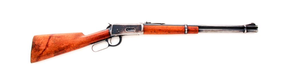 Winchester Model 1894 Lever Action Carbine, #1301376, .32 WS cal., 20'' round barrel, blue finish, straight grip walnut stock, serrated steel shotgun style buttplate, dovetailed front sight on ramped base, and sporting elevator rear sight. Top of barrel and receiver are Winchester proofed. Condition is good with approx. 70% original blue finish. Factory lettering is clear. Wood shows age and wear consistent with the rest of the rifle including thinning to the finish, small dings and scratches. Action is crisp with a smooth hammer and trigger; bore is excellent. Est.: $300-$400. (C&R)