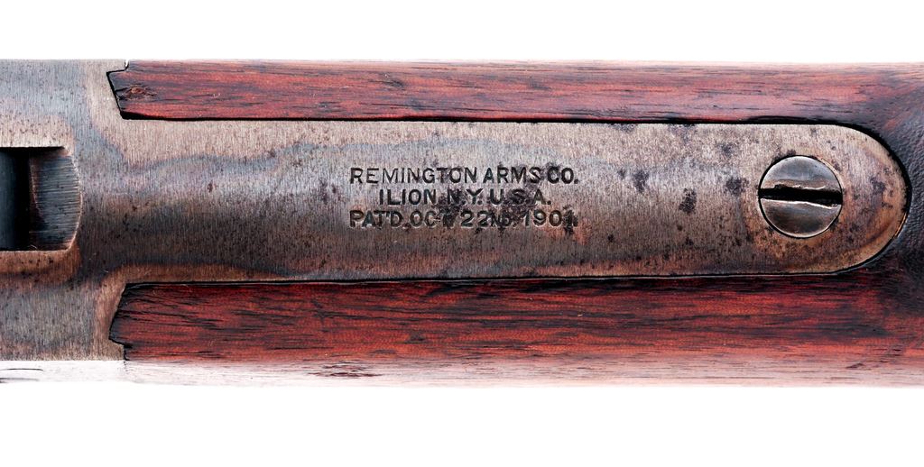Remington Model 1897 No. 5 Rolling Block Cartridge Infantry Rifle, NVSN, 7mm smokeless cal., 30'' round steel barrel marked ''Cal. 7m.m.'' and retained by two steel bands (front band with stud for knife-type bayonet). Steel sling swivels at front band and bottom of buttstock, steel triggerguard and buttplate, and steel cleaning rod. Case hardened receiver marked ''Remington Arms Co. / Ilion, N.Y. U.S.A. / Pat'd. Oct. 22nd, 1901.'' on upper tang. Originally blued and case hardened finished metal, with oil-finished walnut stocks including upper handguard. Condition is near excellent retaining most original blue on barrel, breechblock and hammer. Stocks are smooth and clean with nice coloring and only minor handling marks. Action is tight and crisp; bore is shiny with deep rifling. Est.: $600-$800. (C&R)