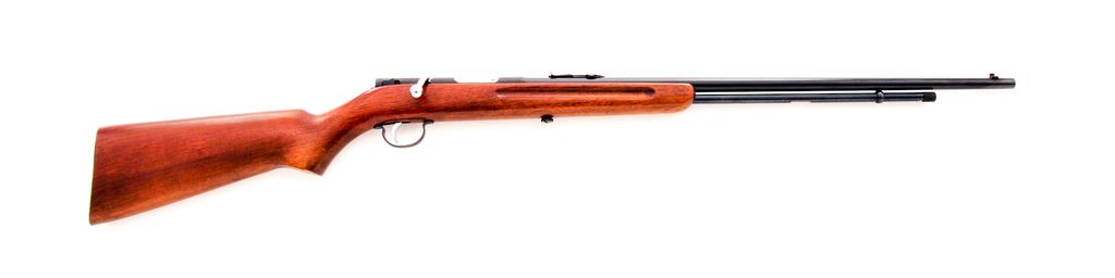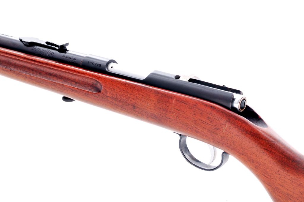 Remington Model 34 Bolt Action Rifle, #146745, .22 S-L-LR cal., 24'' round barrel, blue finish, pistol-grip walnut stock, case hardened smooth metal buttplate, chrome plated bolt and trigger, with dovetailed silver bead front sight and standard ''V''-notched elevator rear sight. Condition is very good. Barrel and receiver retain a majority of a satin blue/brown looking finish. Barrel address with nice raised edges. Nearly all of the chrome plating remains on the bolt and trigger; bolt body shows moderate rub marks. Buttplate with 50% case colors. One-piece wood stock with scattered small impressions and scratches; finish has thinned a little in the handling areas. Good smooth crisp action with an excellent bore. Est.: $150-$300. (C&R)