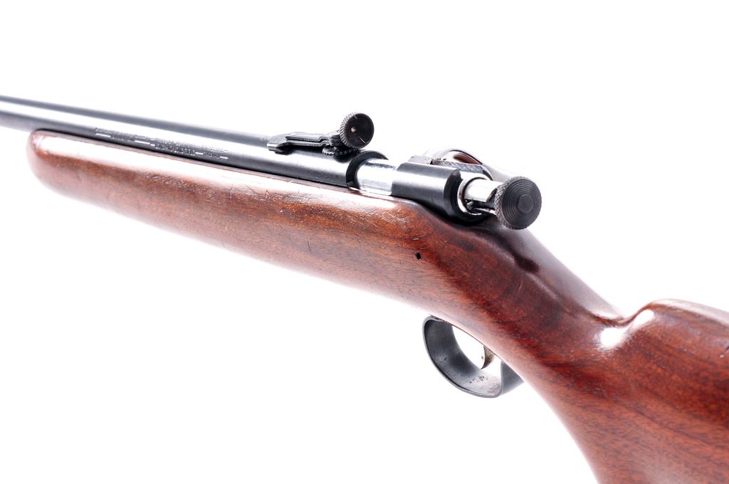 Lot of Two (2) Winchester Bolt Action Single Shot .22 Rifles: 1.) Model 67, NVSN, .22 S-L-LR cal., 27'' barrel, blue finish, smooth pistol-grip walnut stock, black composition Winchester buttplate, dovetailed blade front sight with silver bead, and rear peep sight. Top of barrel and bolt are both Winchester proofed. Condition is very good with approx. 97% blue remaining. Triggerguard with some toning and freckling. Bolt handle may have been refinished. Wood with general small dents and scratches; pistol grip cap with some darkening as evidence of sanding. Good action, excellent bore. 2.) Model 60A, NVSN, .22 S-L-LR cal., 27'' barrel, blue finish, smooth pistol-grip walnut stock, black composition Winchester buttplate, dovetailed blade front sight with silver bead, and standard elevator rear sight. Condition is very good with approx. 93%-95% blue remaining. The area around the muzzle may have been cleaned leaving it tan in color. Wood with general surface dents and scratches; most of the finish remains. Barrel address is clean and clear. Fine action and bore. Est.: $250-$400. (Both/C&R)