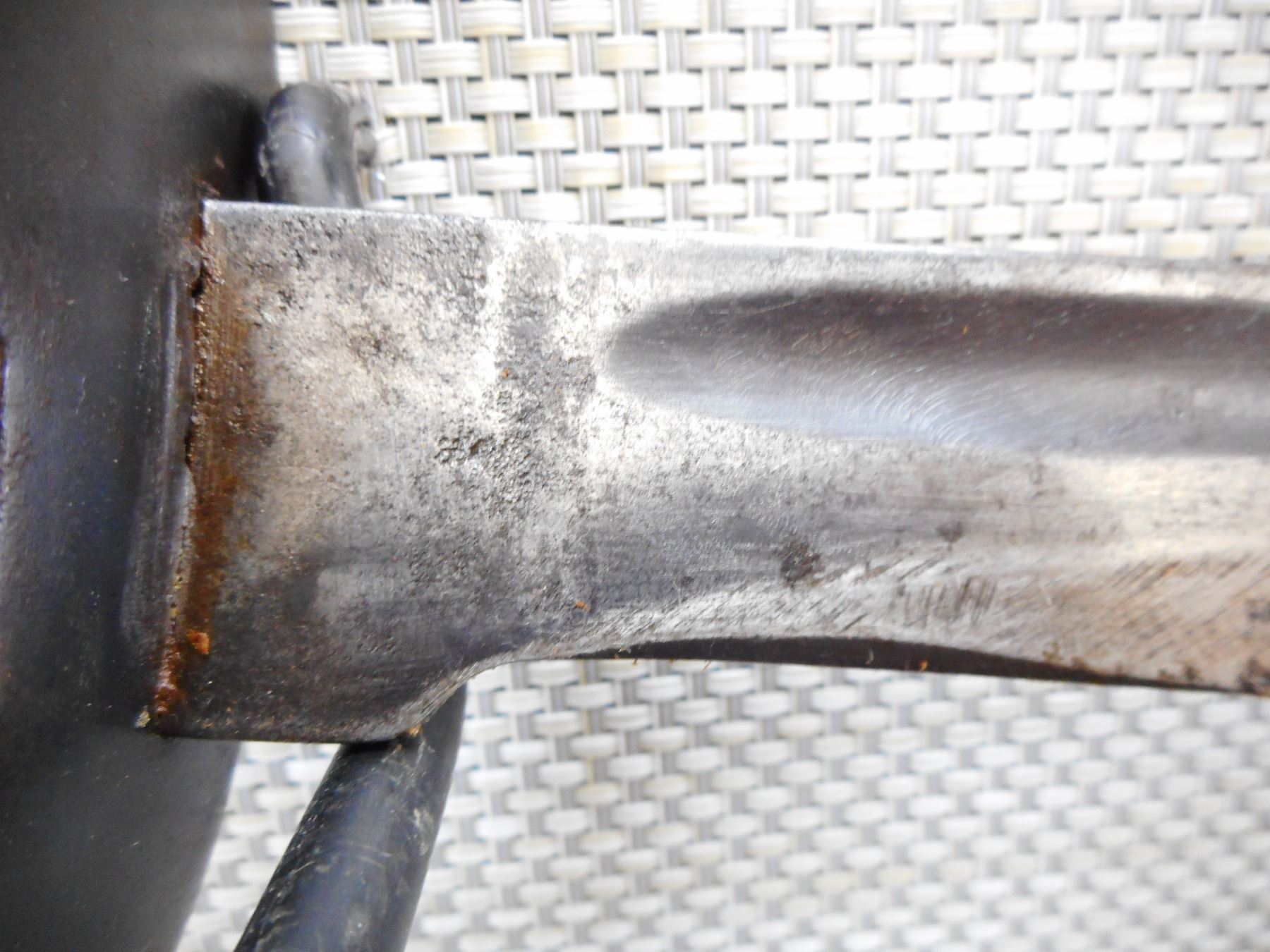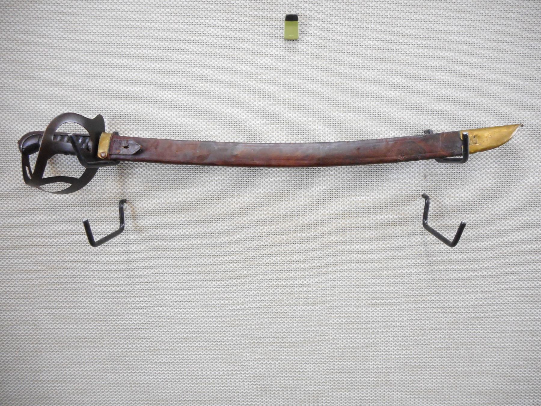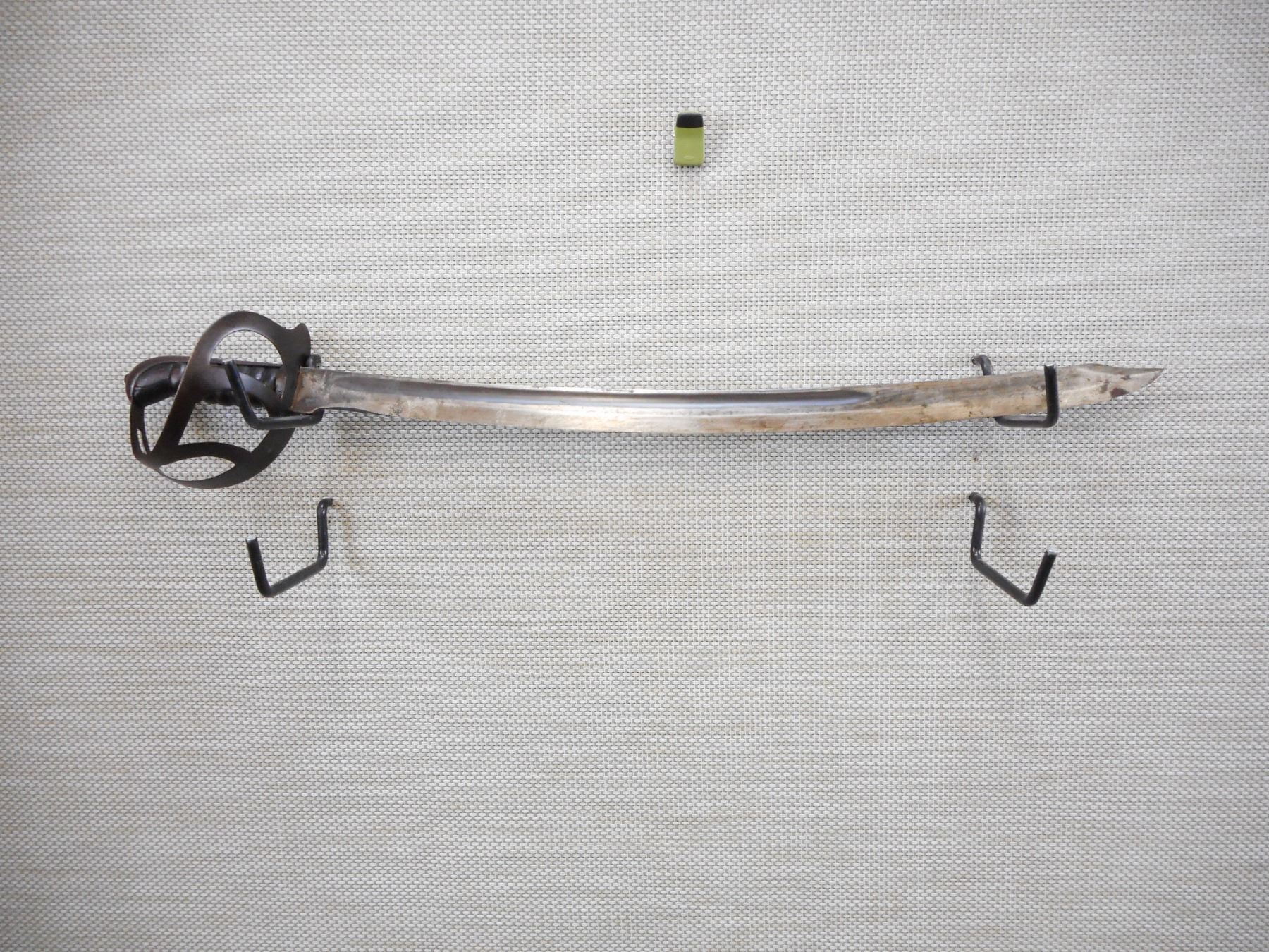DUTCH KLEWANG WITH SCABBARD , RICASSO MARKED RUG, UNDERSIDE OF CROSSGUARD MARKED P.B.C. 42, WITH LEATHER SCABBARD