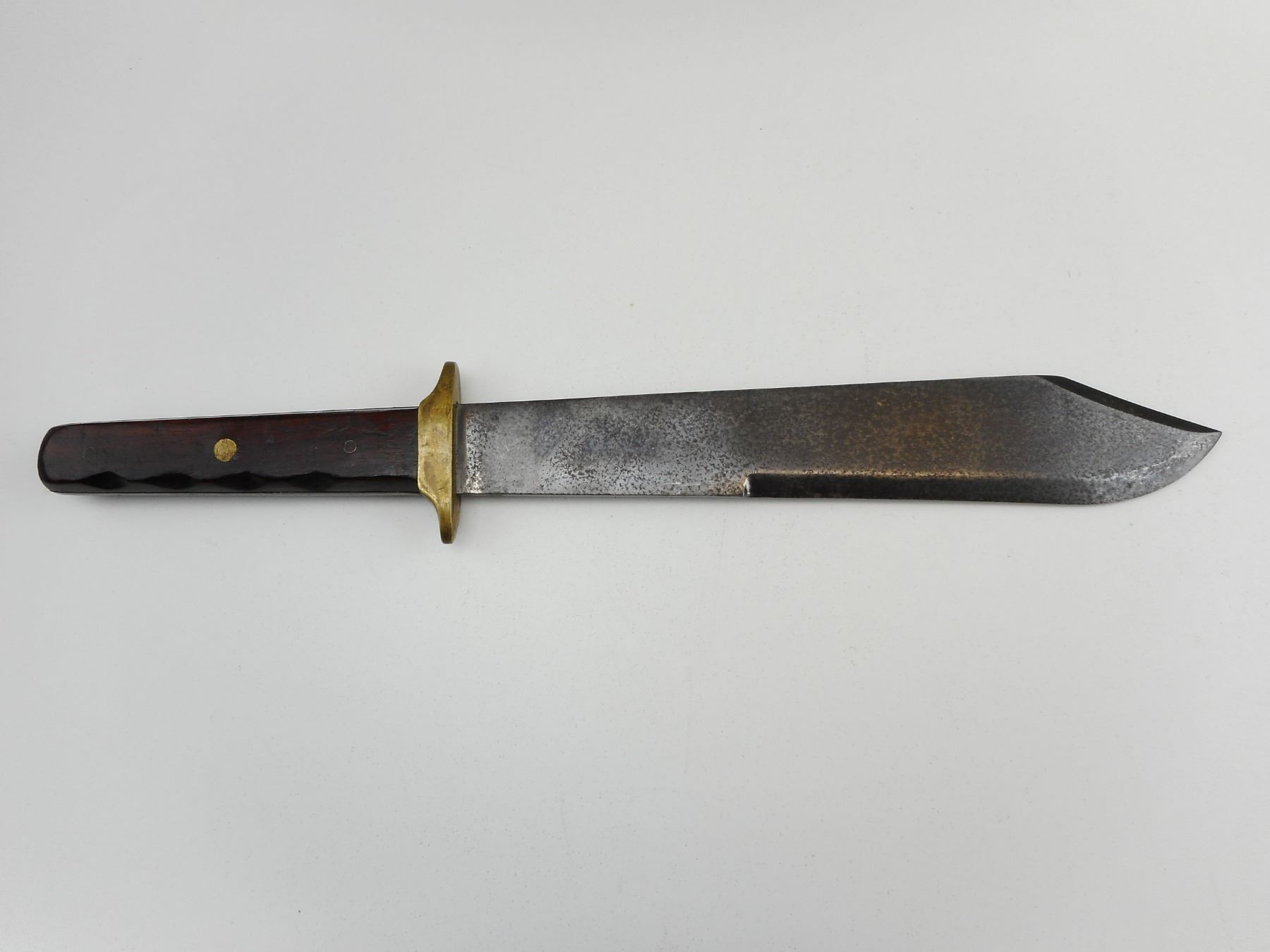 WELLS FARGO BOWIE KNIFE , BLADE ETCHED PROPERTY OF WELLS FARGO & CO.'S EXPORES OFFICIAL U.S. __, APPROX 10.5" BLADE WITH WOODEN HANDLE AND BRASS CROSSGUARD, NO SHEATH