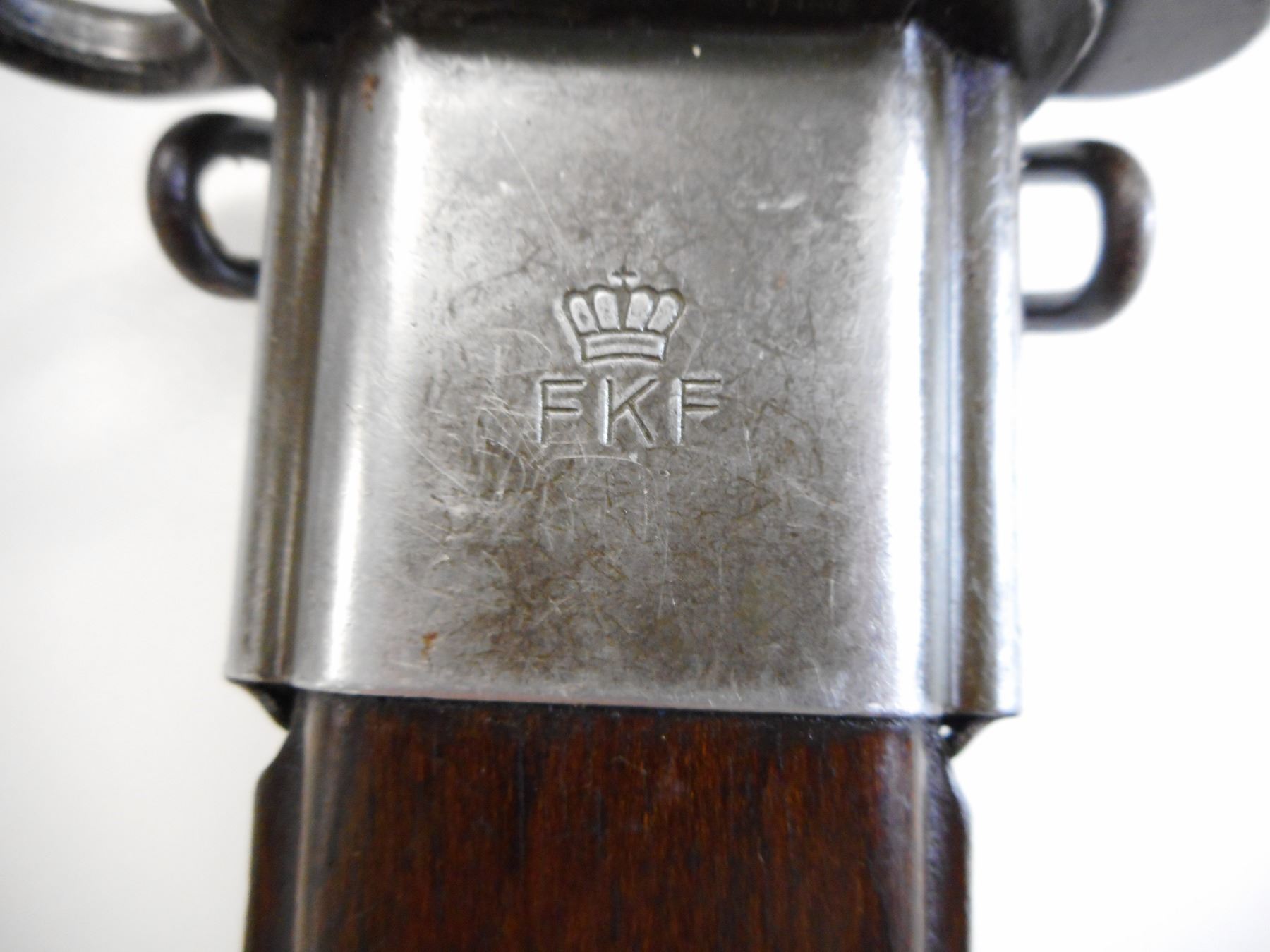 DANISH M55 M1 GARAND BAYONET WITH SCABBARD , RICASSO MARKED FKF 1955, WITH SCABBARD MARKED FKF WITH CROWN