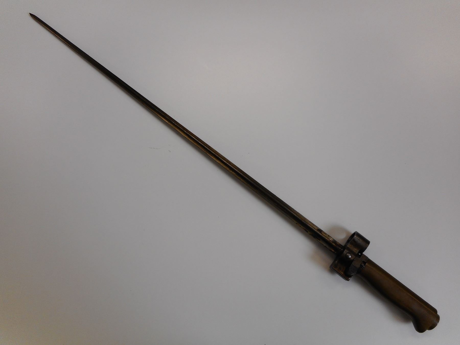 FRENCH M1886/15 LEBEL EPEE BAYONET WITH SCABBARD , NO VISIBLE MARKS, BLADE LENGTH 520MM, BRASS GRIP, WITH SCABBARD