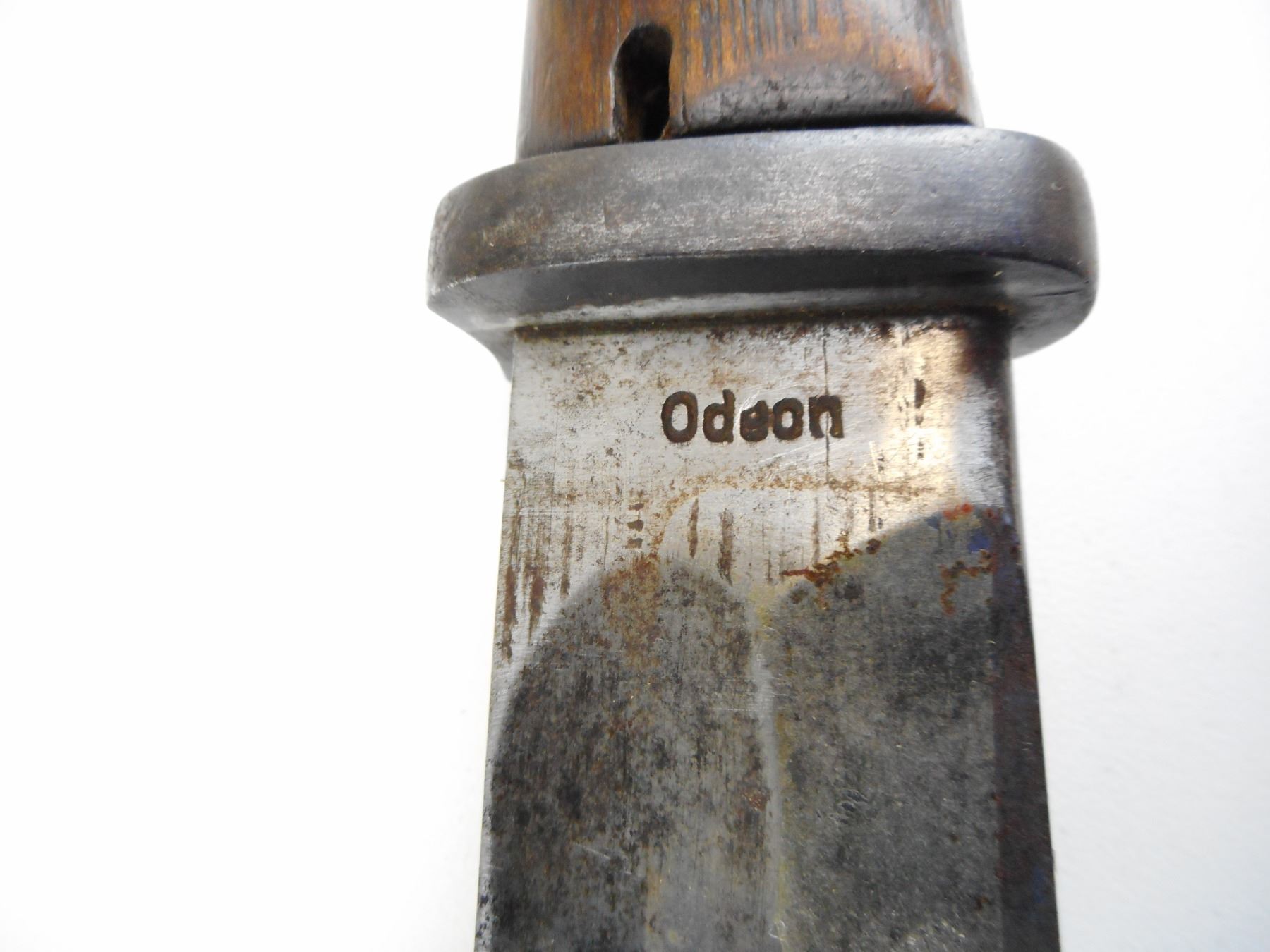GERMAN S14 BAYONET WITH SCABBARD , RICASSO MARKED ODEON WITH MARKE ON BACK OF BLADE