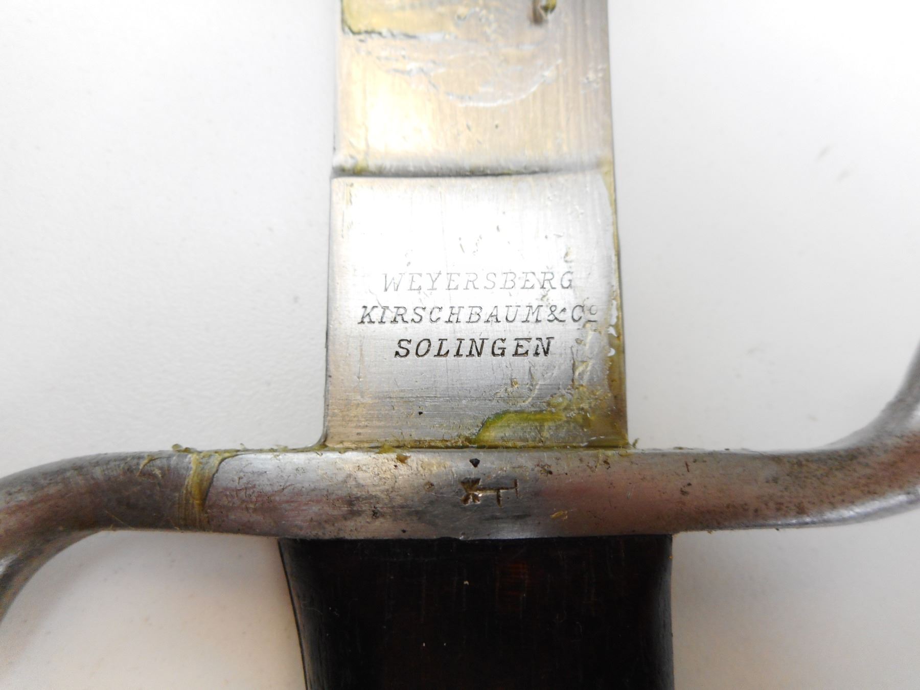 ARGENTINE M1909 BAYONET WITH SCABBARD , RICASSO MARKED MODELO ARGENTINO 1909 WITH CREST & WEYERSBERG KIRSCHBAUM& CO SOLINGEN, CROSSGUARD MARKED F03464, POMMEL MARKED RA, WITH SCABBARD AND GREEN FROG