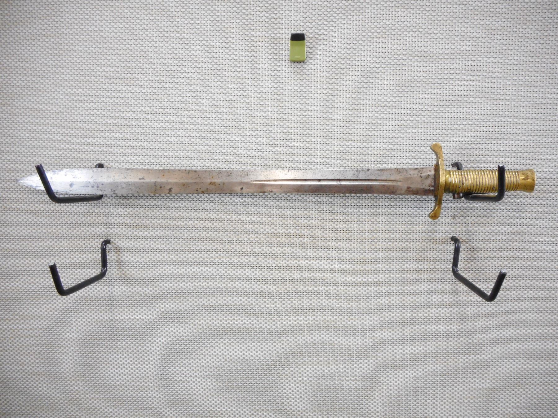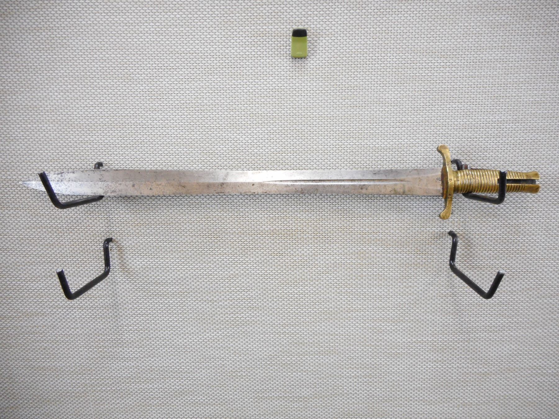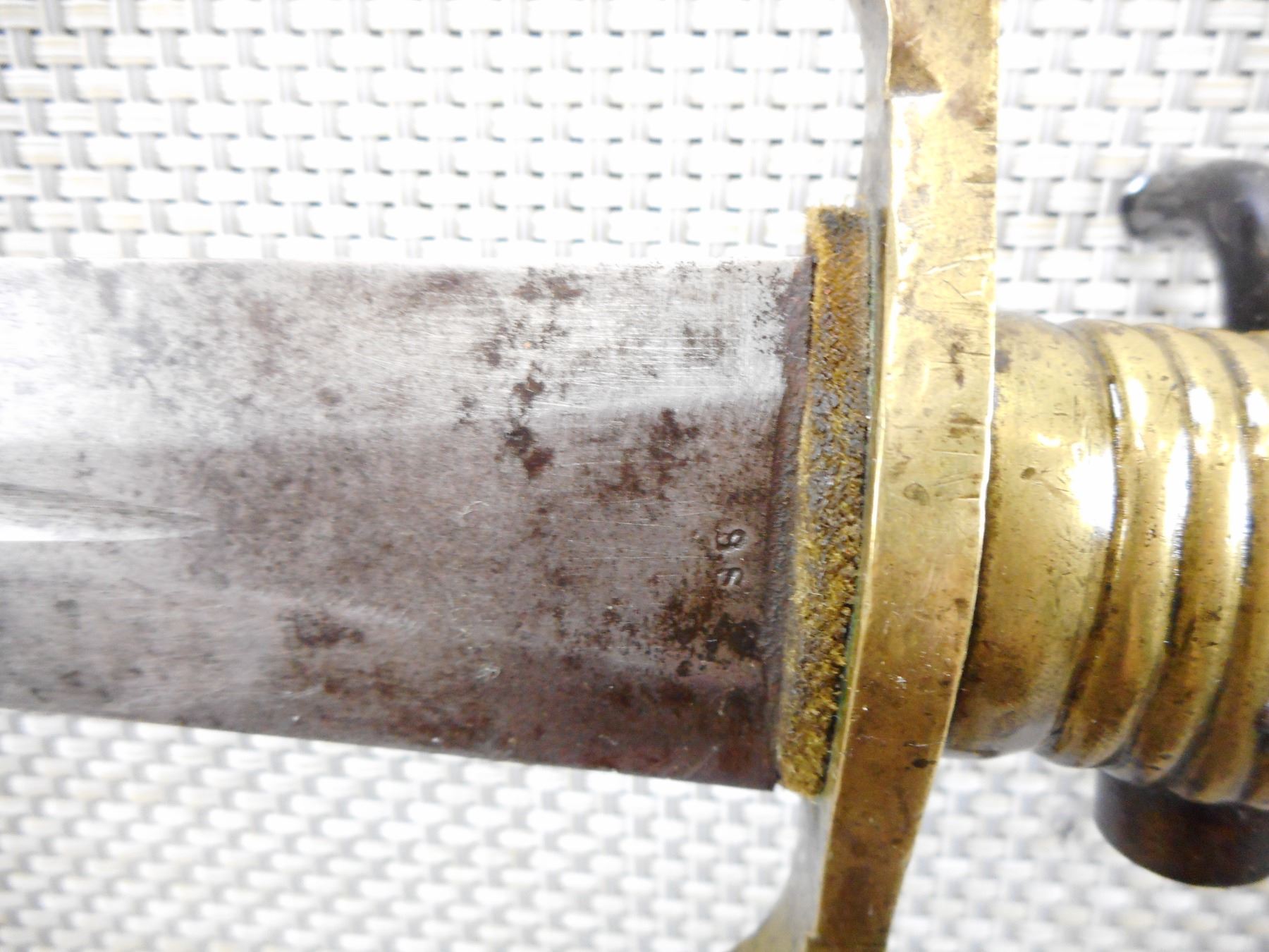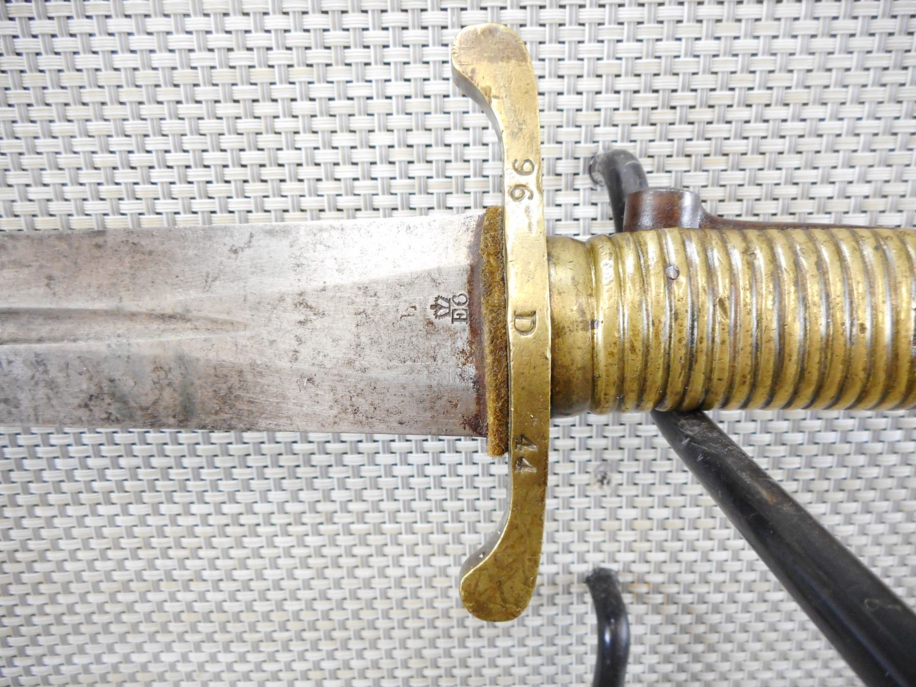BRITISH 1848 PATTERN BRUNSWICK SWORD BAYONET , RICASSO WITH PROOF MARKS, CROSSGUARD MARKED REGIMENTALLY 96 D 44