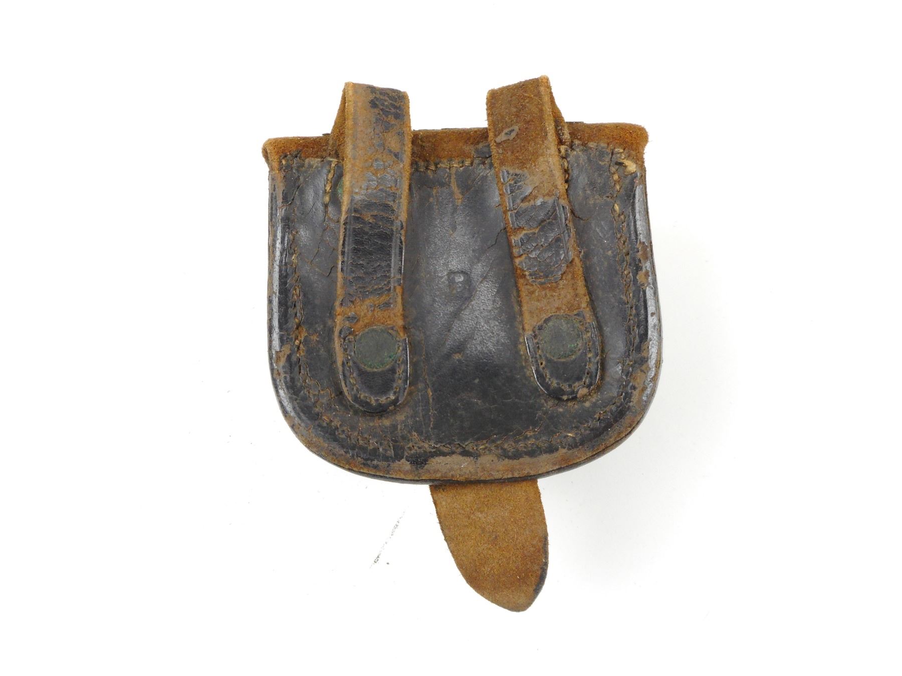 US CIVIL WAR ERA CAP BOX , WITH BRASS US BUCKLE, INSIDE LEATHER FLAP STAMPED BUT WORN: S.H. YOUNG & CO NEWARK N.J.