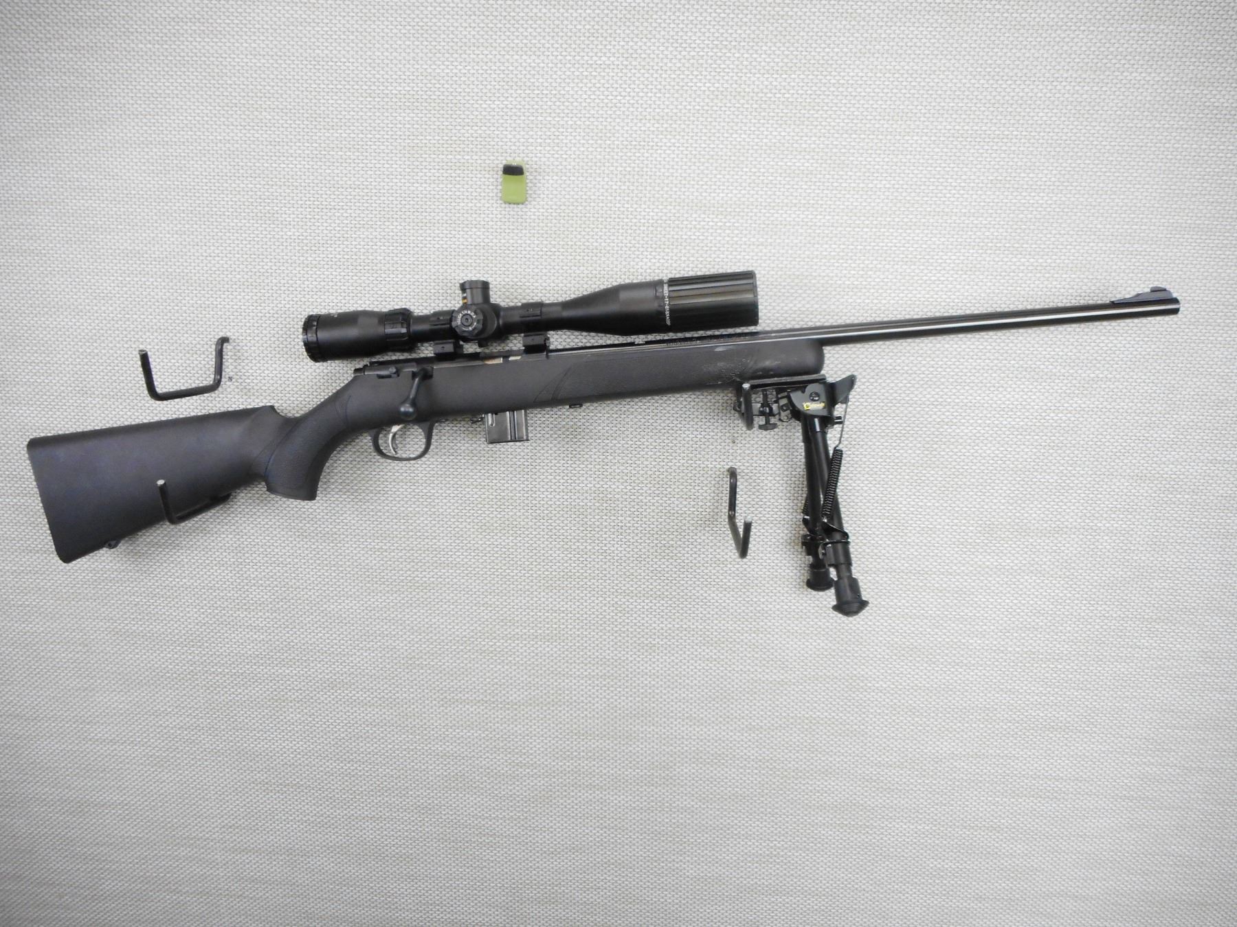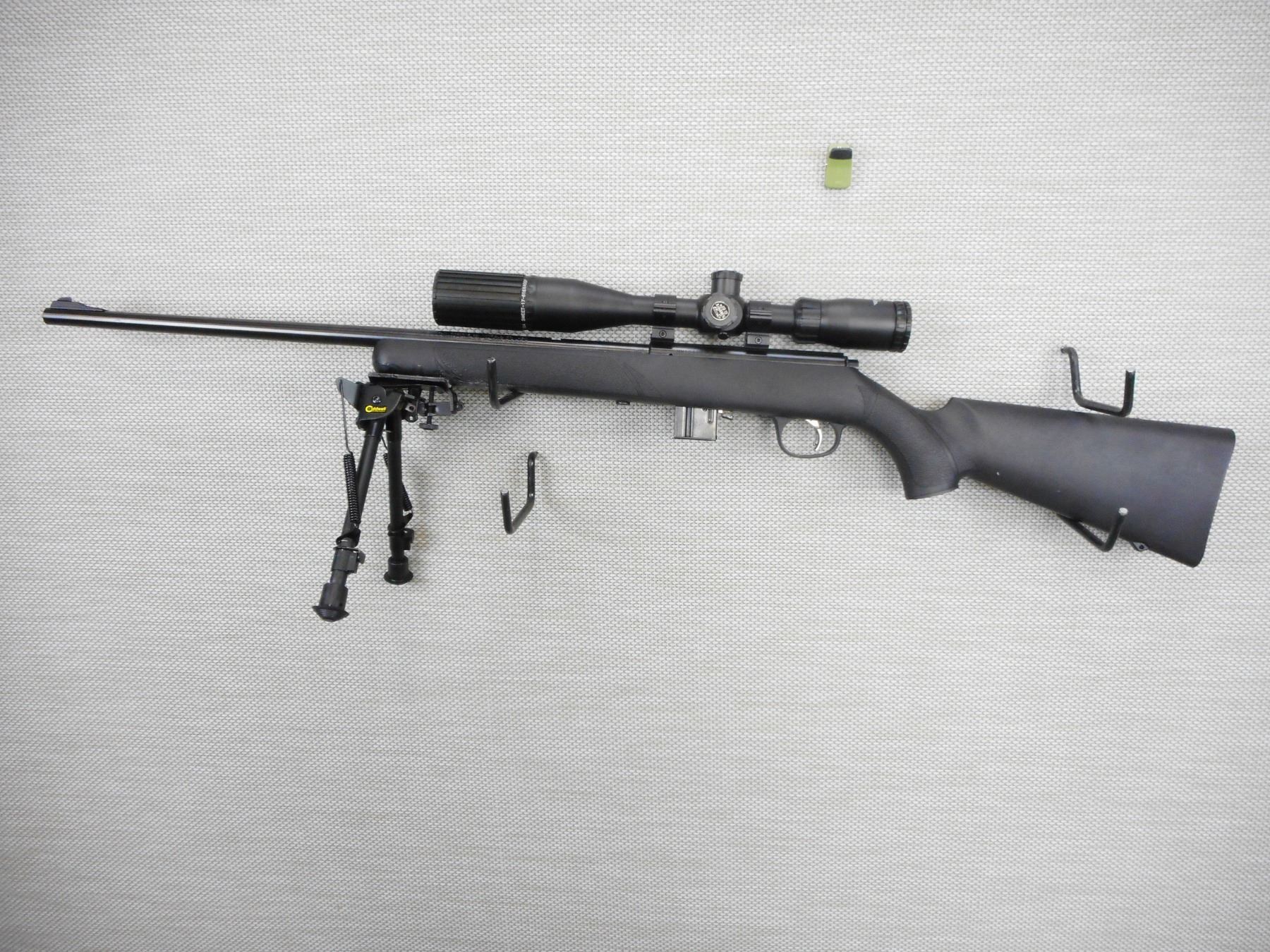 MARLIN, MODEL: XT-17, CALIBER: 17 HMR , COMES WITH 2 MAGAZINES, HAS A VERY GOOD BORE, RAMP FRONT AND NO REAR SIGHT, SWEET 17 SCOPE ADJUSTABLE 6-18 MADE BY BSA AND BIPOD, SYNTHETIC STOCK WITH CAPPED PISTOL GRIP, ACCU TRIGGER, SHOWS VERY LITTLE HANDLING MARKS , ACTION: BOLT ACTION RIFLE , BARREL LENGTH: 22" , CONDITION: 8/10 , STOCK # 9142 , SERIAL # MM12495C , CLASS: CANADIAN NON RESTRICTED CLASS