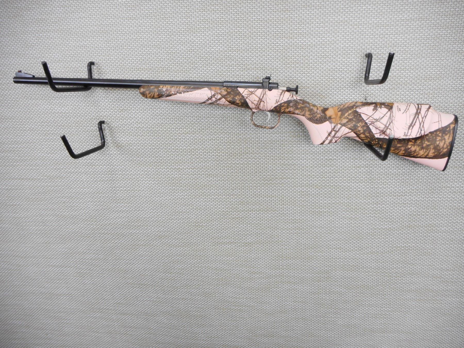CRICKETT , MODEL: CRICKETT, CALIBER: 22 LR , MANUFACTURED BY KEYSTONE SPORTING ARMS, EXCELLENT BORE, CAMO PINK SYNTHETIC STOCK, RAMP FRONT AND PEEP REAR SIGHT, MISSING THE SLING SWIVEL , ACTION: BOLT ACTION SINGLE SHOT , BARREL LENGTH: 16" , CONDITION: 9/10 , STOCK # 9157 , SERIAL # 624485 , CLASS: CANADIAN NON RESTRICTED CLASS