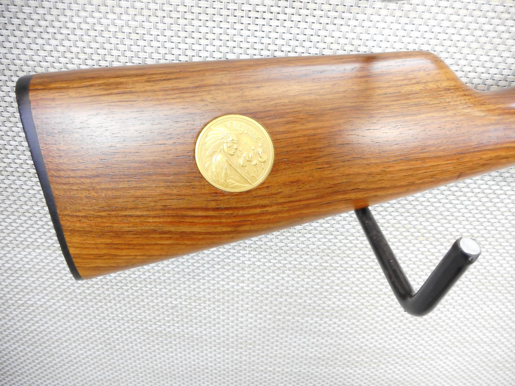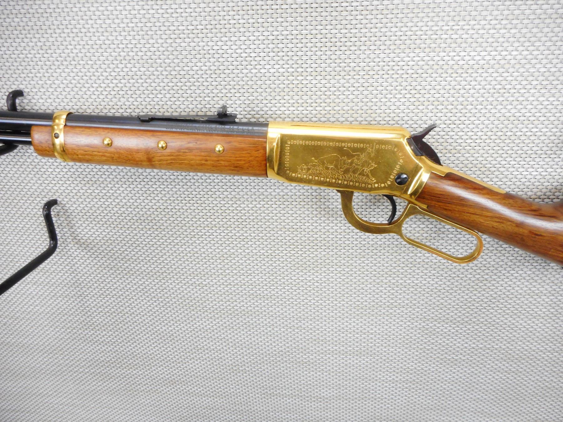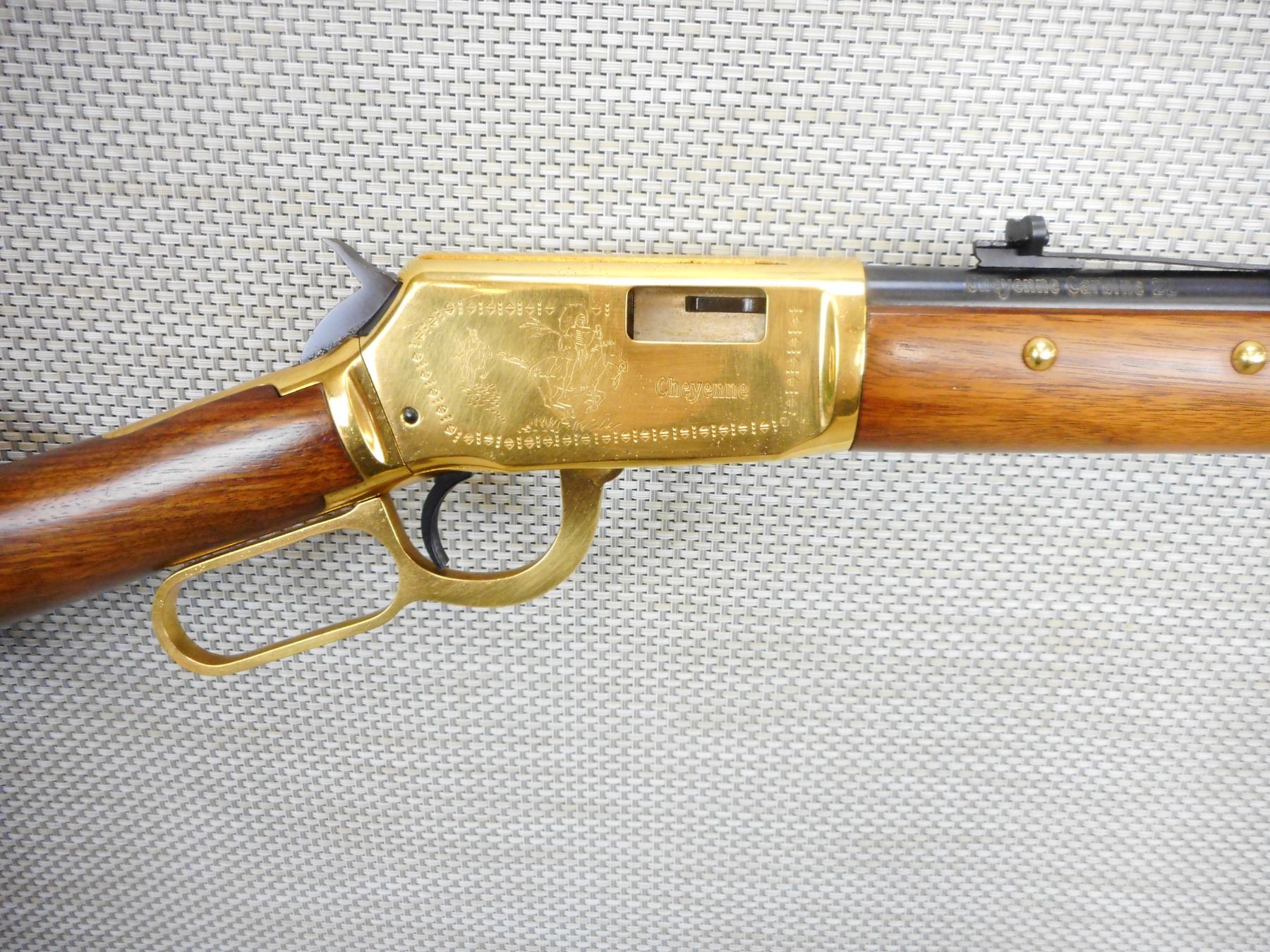 WINCHESTER, MODEL: 9422 CHEYENNE, CALIBER: 22 LR , DOES NOT HAVE A BOX, EXCELLENT BORE, HOODED FRONT SIGHT AND ADJUSTABLE REAR SIGHT, SHOWS VERY LITTLE HANDLING MARKS, PLASTIC BUTT PLATE, FEATURES THE CHEYENNE MEDALION , ACTION: LEVER ACTION RIFLE , BARREL LENGTH: 20" , CONDITION: 9/10 , STOCK # 9166 , SERIAL # CHF0421 , CLASS: CANADIAN NON RESTRICTED CLASS