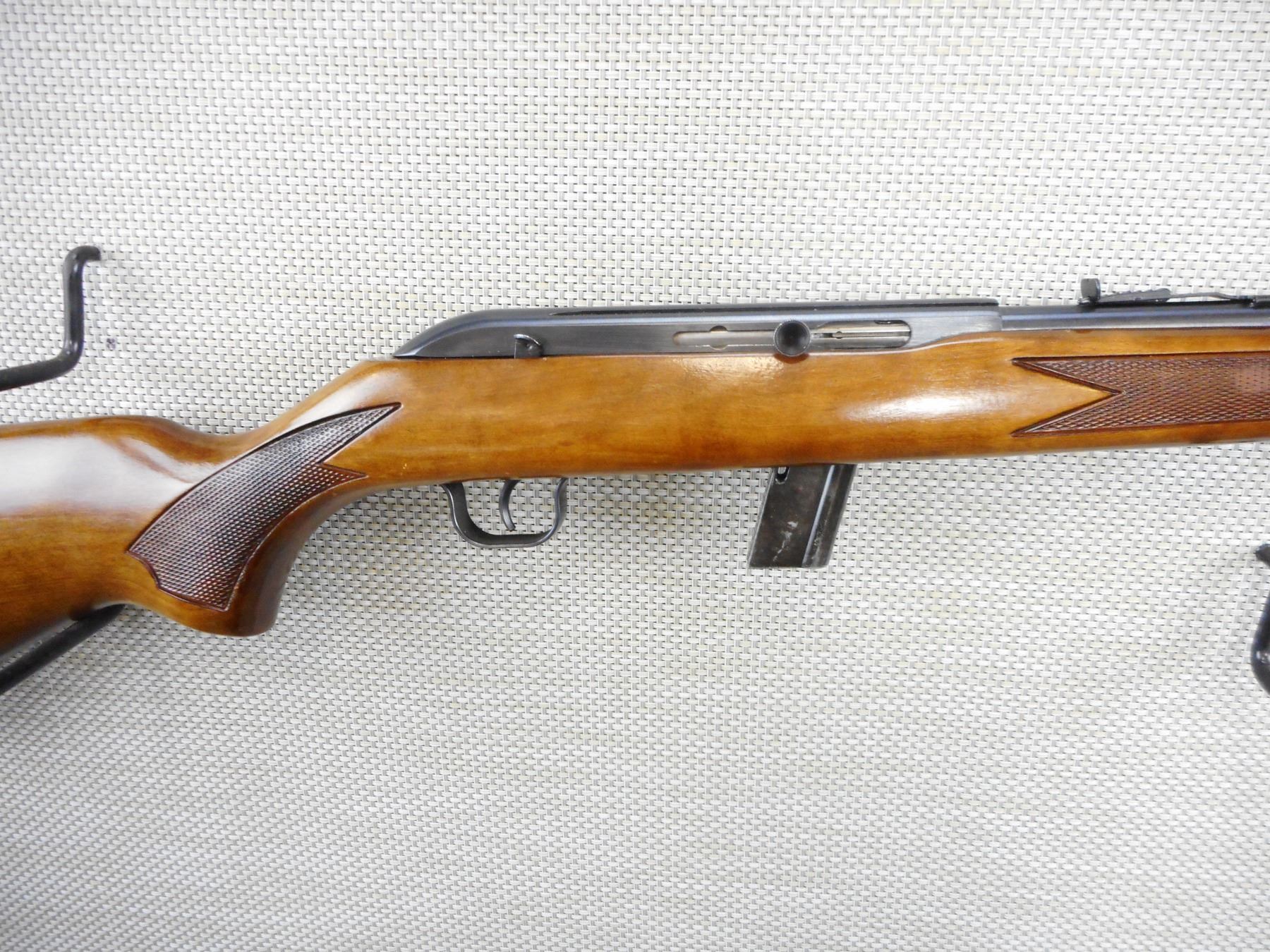 LAKEFIELD , MODEL: 64B, CALIBER: 22 LR , COMES WITH MAGAZINE, BORE IS VERY GOOD, BLADE FRONT AND ADJUSTABLE REAR SIGHTS, CHECKERED FOREND AND SEMI PISTOL GRIP BUTT STOCK, PLASTIC BUTT PLATE, SHOWS VERY LITTLE HANDLING MARKS , ACTION: SEMI AUTOMATIC RIFLE , BARREL LENGTH: 20" , CONDITION: 8/10 , STOCK # 9195 , SERIAL # L095176 , CLASS: CANADIAN NON RESTRICTED CLASS