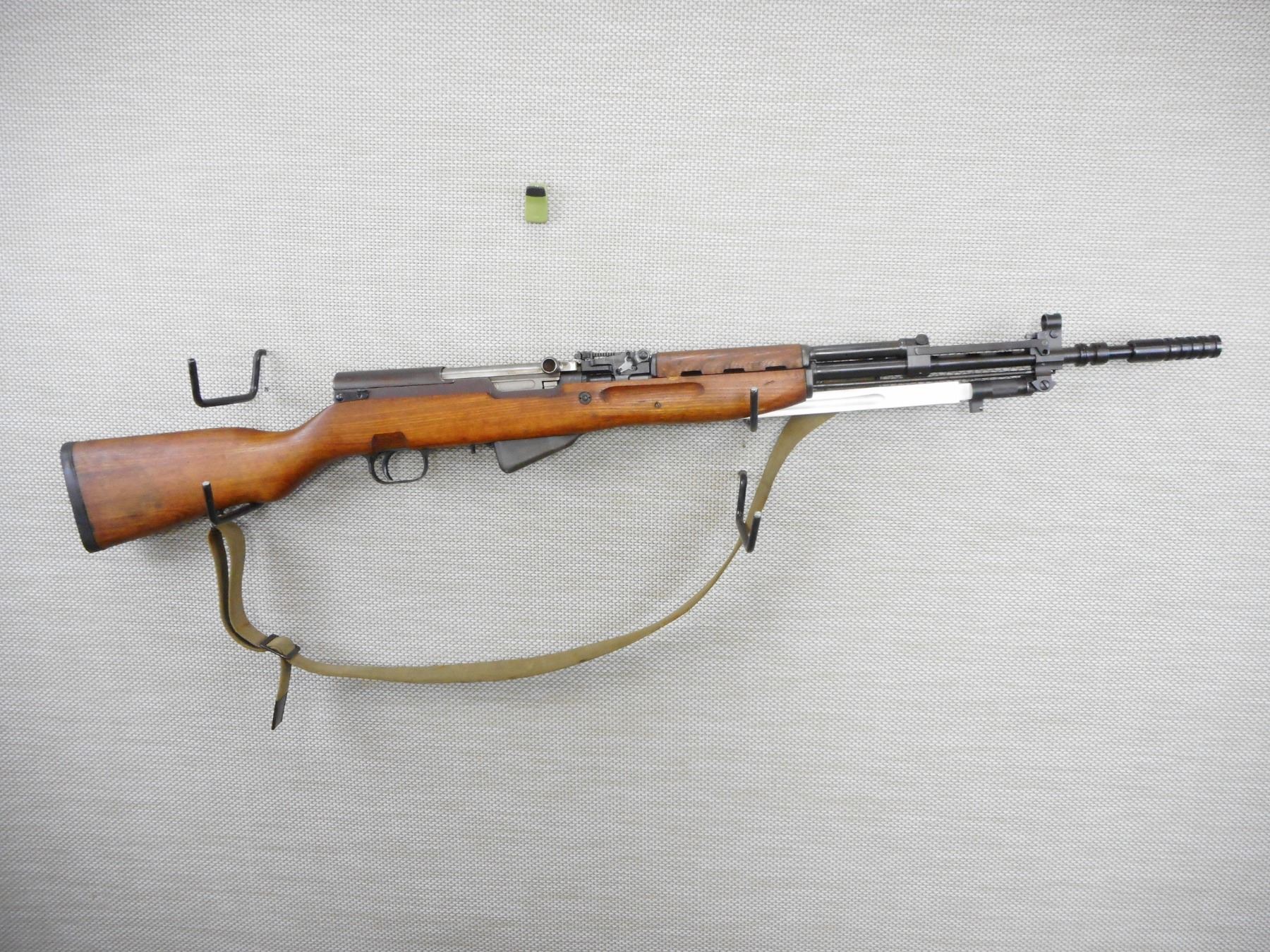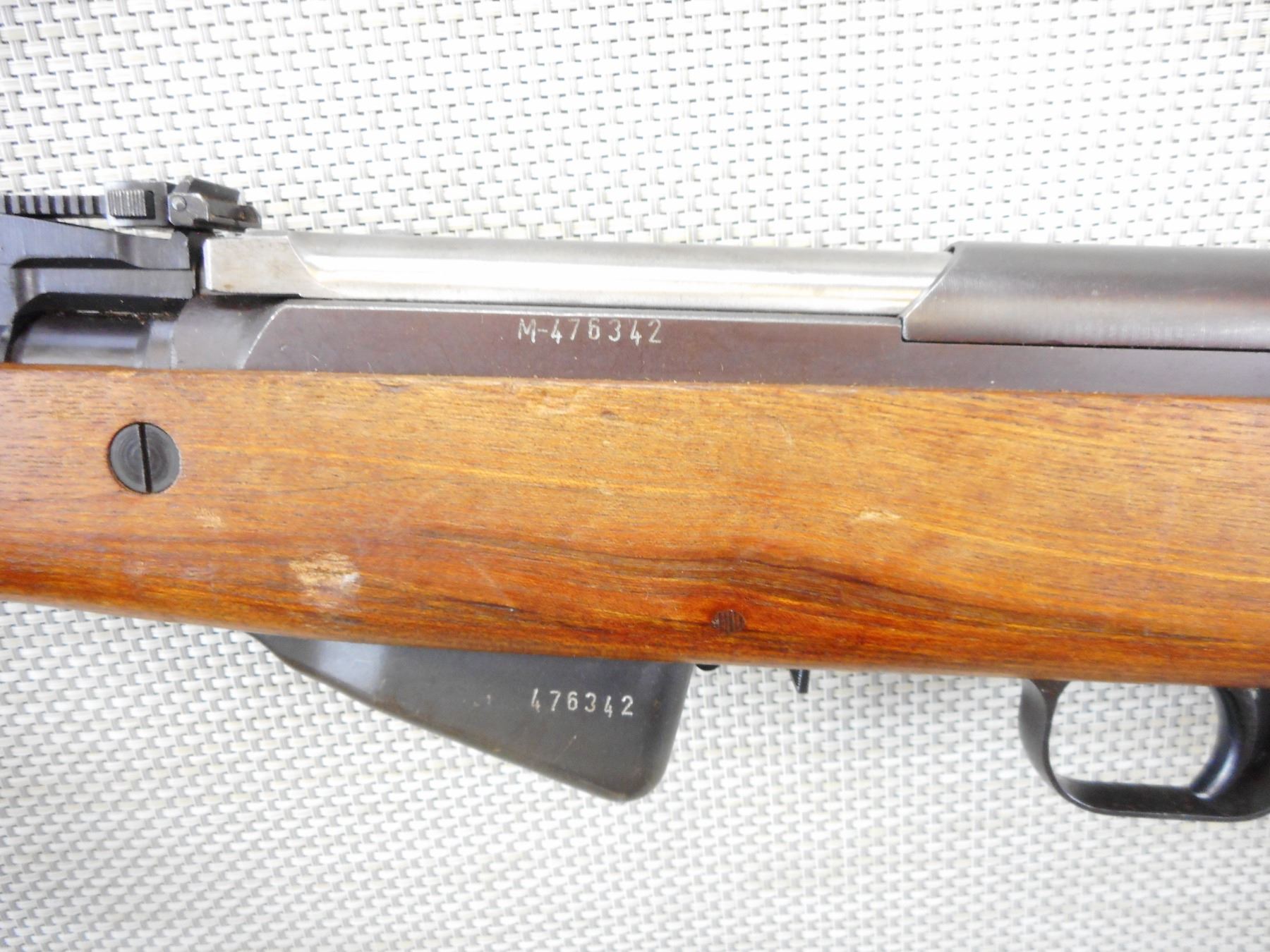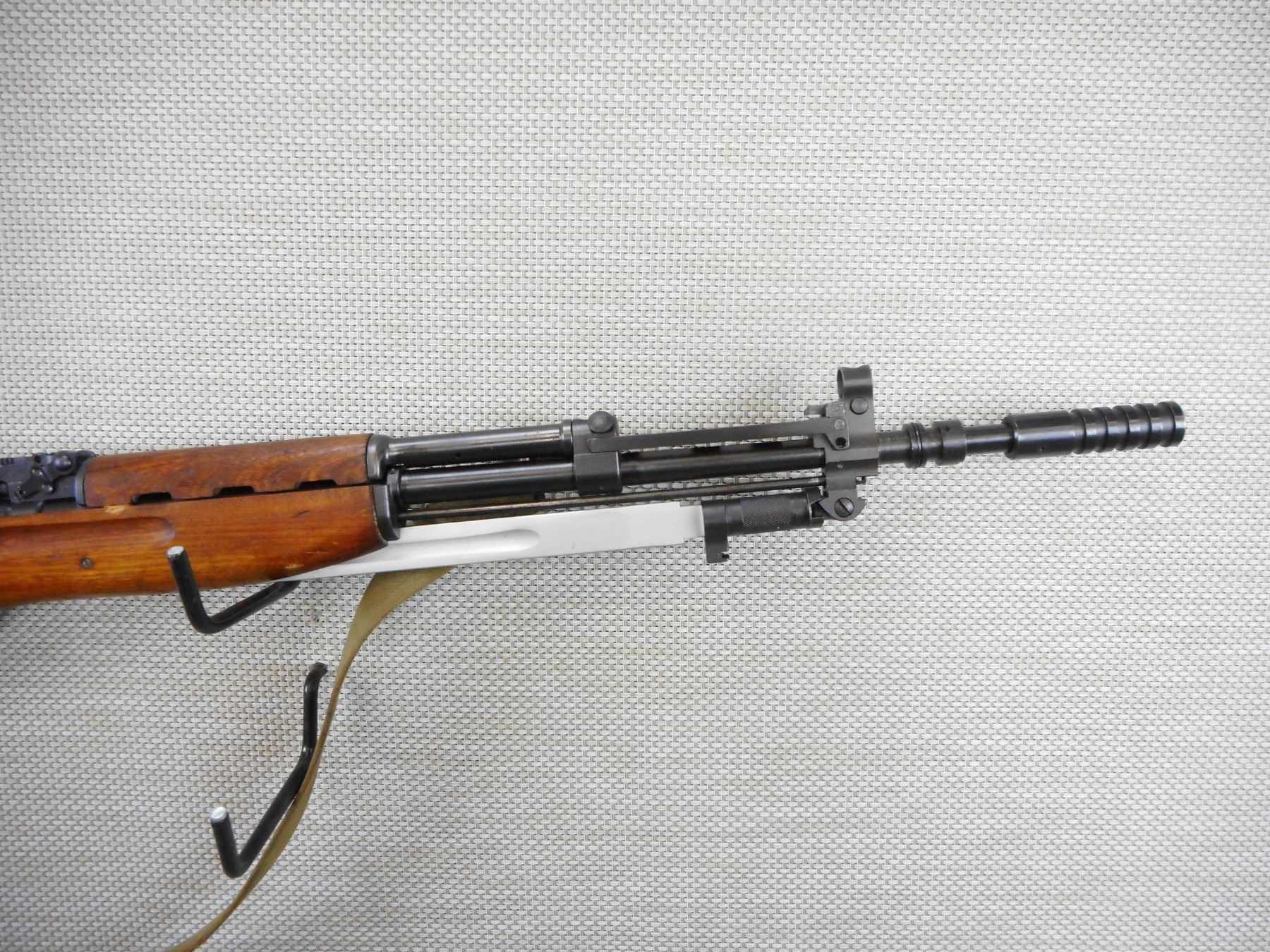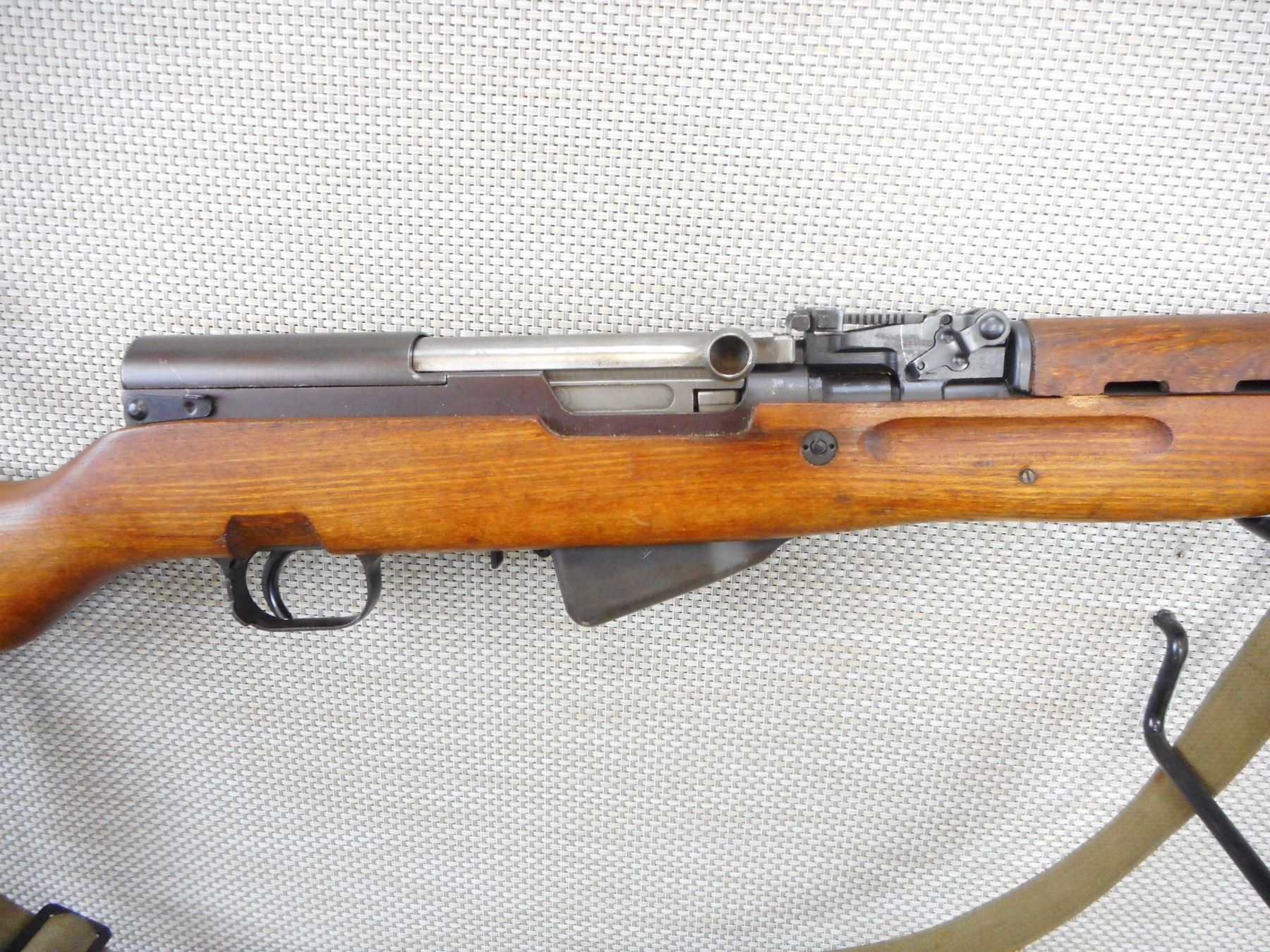SIMINOV, MODEL: SKS, CALIBER: 7.62 X 39 , YUGOSLAVIAN MADE, HAS GRENADE LAUNCHER, BORE IS EXCELLENT, HOODED FRONT AND ADJUSTABLE REAR SIGHT, TWO PIECE HARDWOOD STOCK WITH RUBBER BUTT PLATE, SHOWS SOME HANDLING MARKS, HAS SLING LOOPS WITH CANVAS SLING, FOLDING BLADE BAYONET, ALL MATCHING STOCK, RECEIVER AND BOLT , ACTION: SEMI AUTOMATIC RIFLE , BARREL LENGTH: 21" , CONDITION: 8/10 , STOCK # 9196 , SERIAL # M476342 , CLASS: CANADIAN NON RESTRICTED CLASS