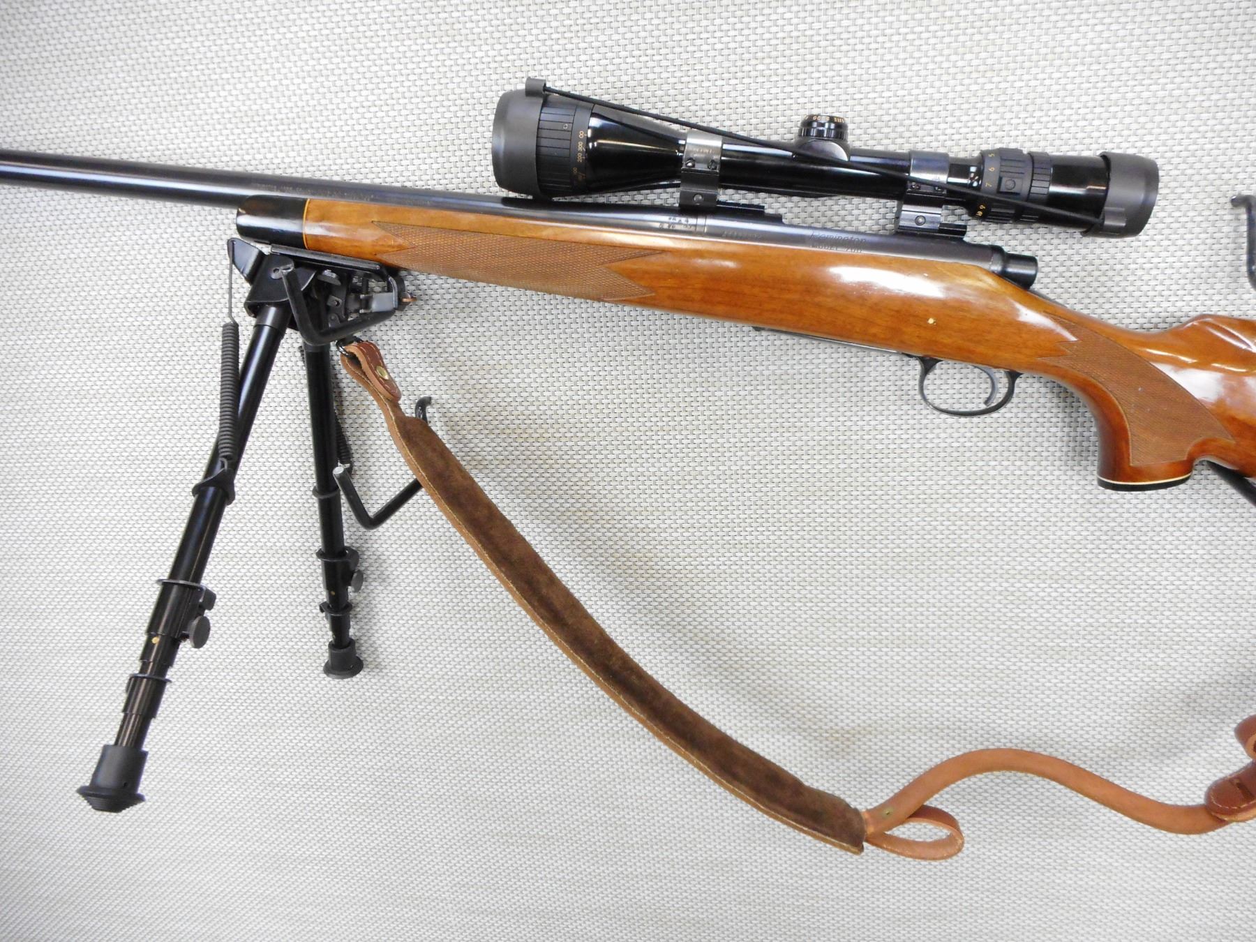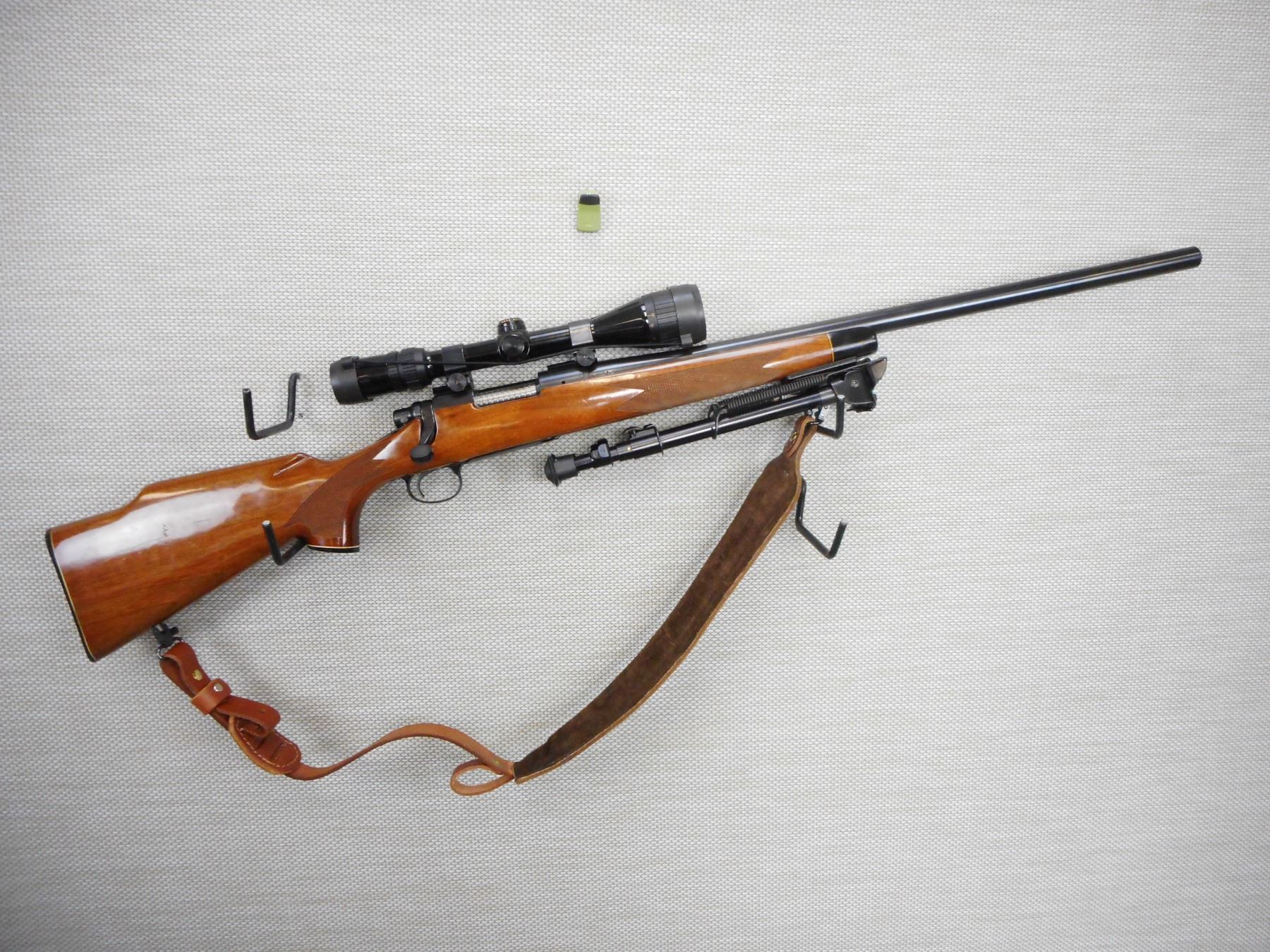 REMINGTON, MODEL: 700, CALIBER: 22-250 REM , HAS A BAUSH AND LOMB ELITE 3000 SCOPE, EXCELLENT BORE, HINGED FLOOR PLATE, CAPPED CHECKERED FORED WITH CAPPED PISTOL GRIP AND RAISED CHEEK BUTT STOCK, PLASTIC BUTT PLATE, BIPOD, LEATHER SLING WITH SLING SWIVELS, SHOWS VERY LITTLE HANDLING MARKS , ACTION: BOLT ACTION RIFLE , BARREL LENGTH: 25" , CONDITION: 8/10 , STOCK # 9215 , SERIAL # A6466682 , CLASS: CANADIAN NON RESTRICTED CLASS