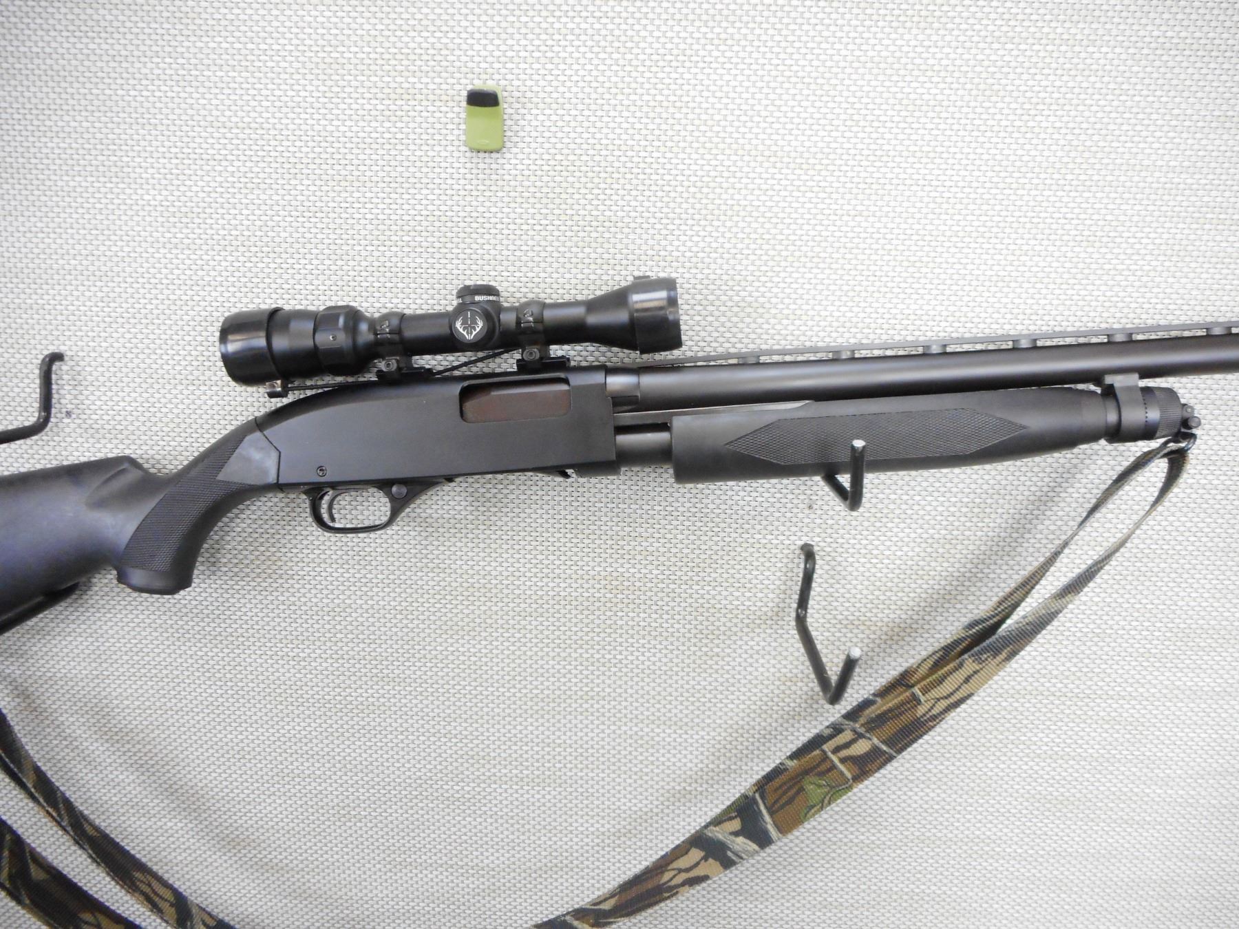 WINCHESTER, MODEL: 1300 TURKEY, CALIBER: 12GA X 3" , COMES WITH 3 CHOKES AND A BUSHNELL 1.75 X 4 POWER SCOPE, BORE IS VERY GOOD, VENTED RIB BARREL, SYNTHETIC FOREND AND CAPPED PISTOL GRIP BUTT STOCK, SLING SWIVELS WITH NYLON SLING, NYLON BUTT COVER, SHOWS VERY LITTLE HANDLING MARKS , ACTION: PUMP ACTION SHOTGUN , BARREL LENGTH: 22" , CONDITION: 8/10 , STOCK # 9218 , SERIAL # L2699677 , CLASS: CANADIAN NON RESTRICTED CLASS
