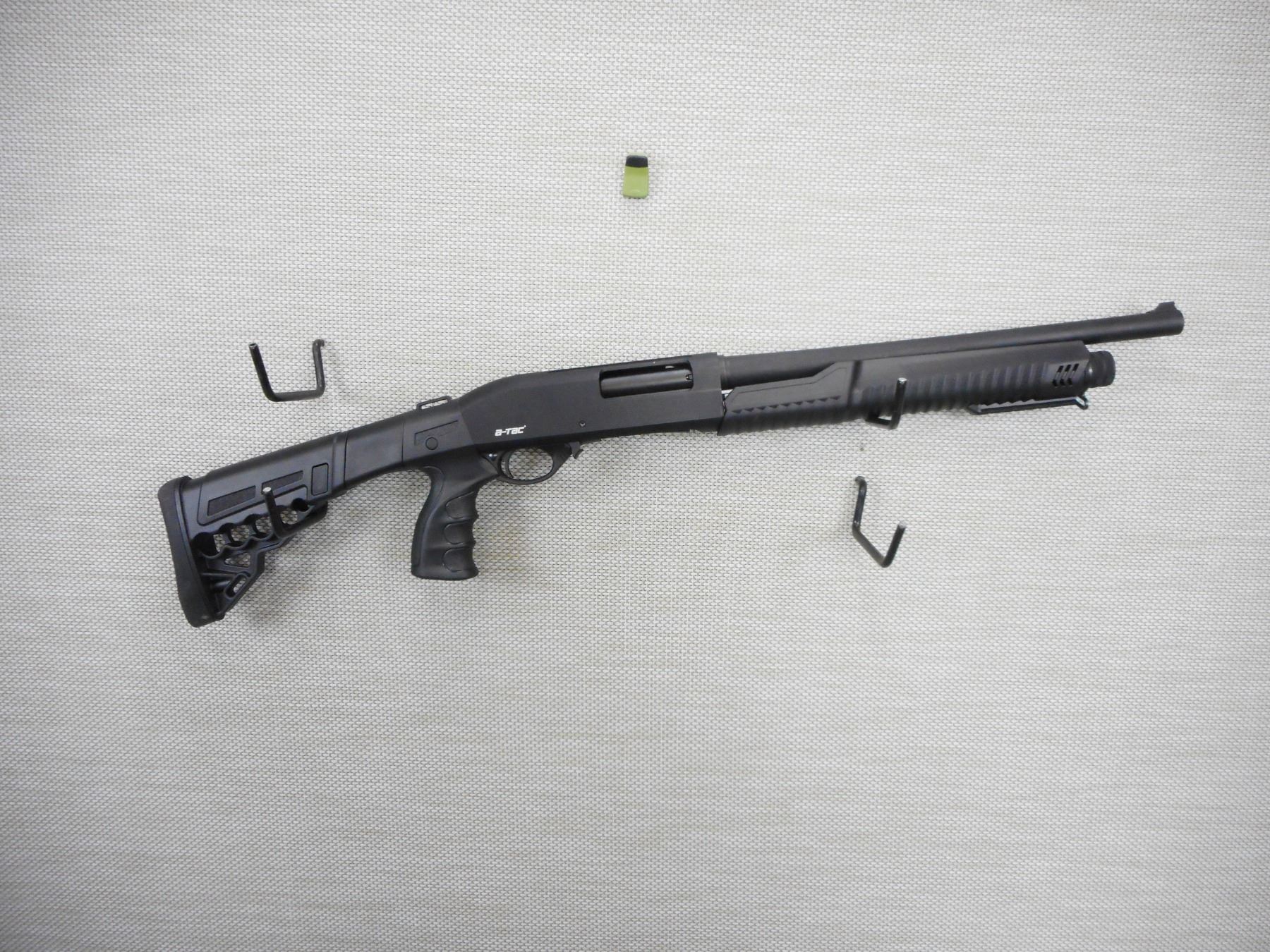 KHAN ARMS , MODEL: A-TAC SPARK, CALIBER: 12GA X 3" , COMES WITH A BOX, CYLINDER BORE WHICH IS EXCELLENT, BLACK SYNTHETIC STOCK, FOREND WITH ACCESSORY RAIL, ADJUSTABLE BUTT STOCK, RUBBER RECOIL PAD ON BUTT AND CARTRIDGE STORAGE , ACTION: PUMP ACTION SHOTGUN , BARREL LENGTH: 16" , CONDITION: 9/10 , STOCK # 9237 , SERIAL # 17P0337 , CLASS: CANADIAN NON RESTRICTED CLASS