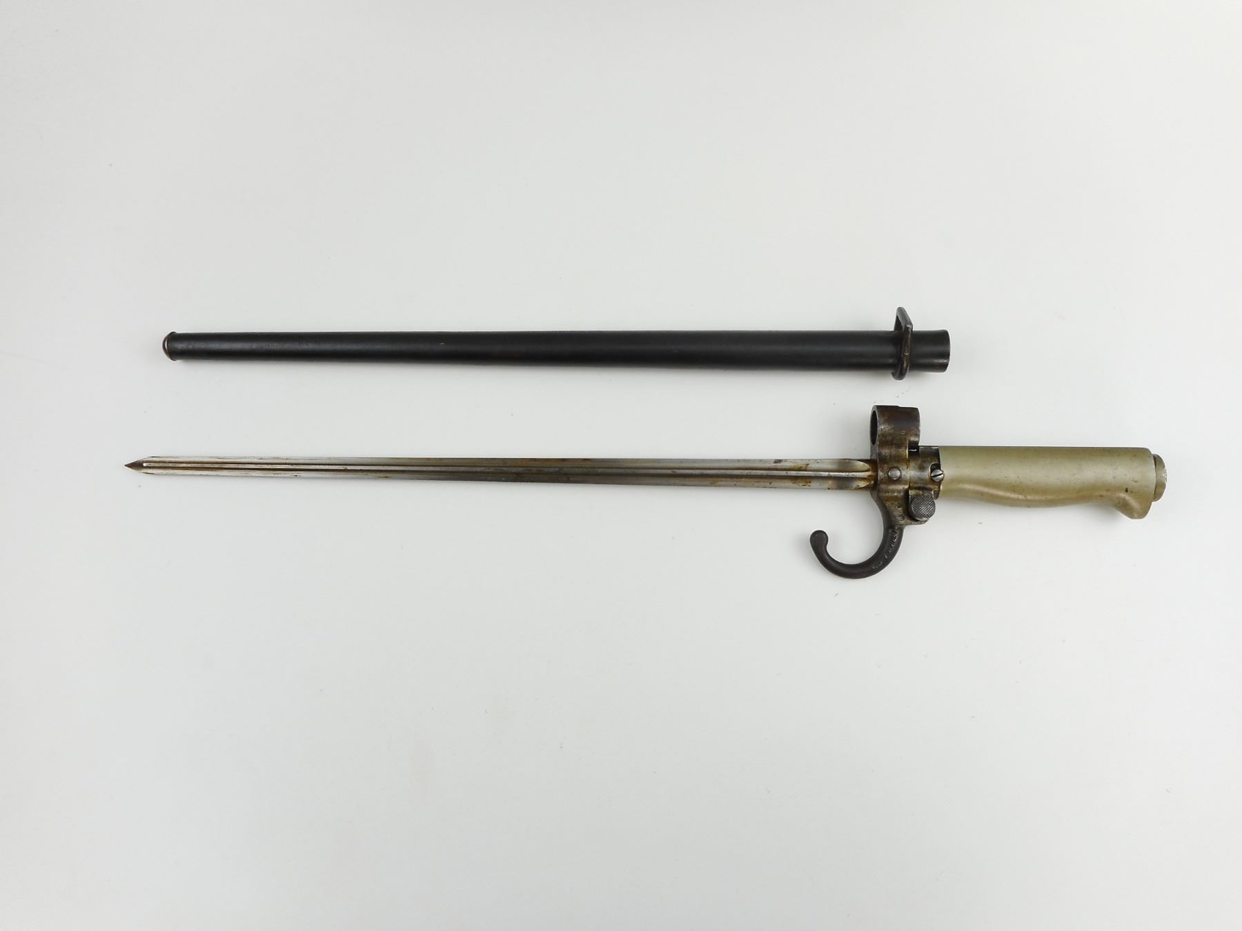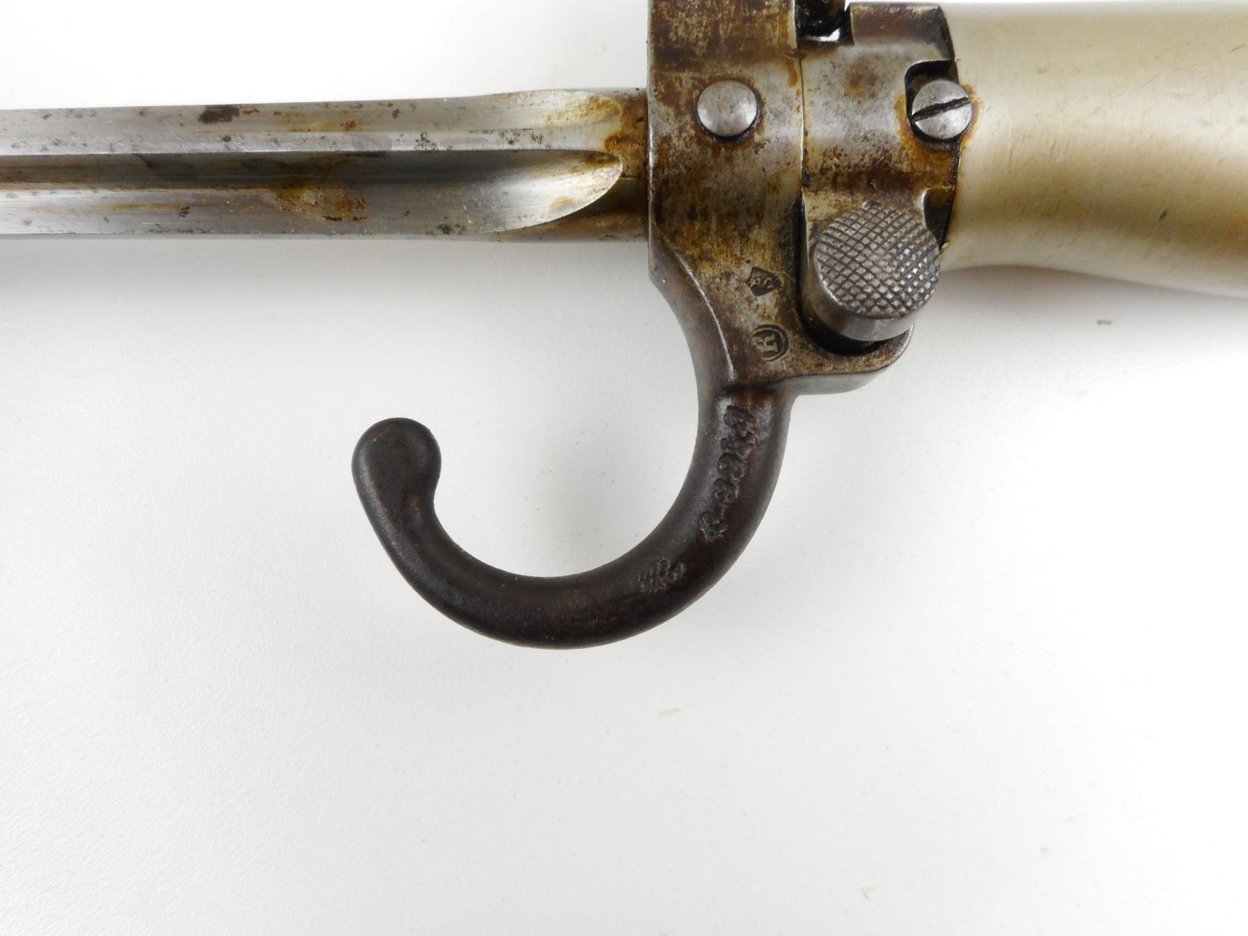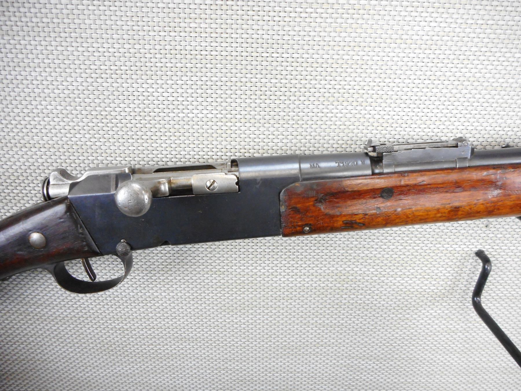 LEBEL , MODEL: 1886/93, CALIBER: 8 X 50R LEBEL , COMES WITH BAYONET, BAYONET HAS SCABBARD BUT DOES NOT MATCH BY SERIAL #, VERY GOOD BORE, BLADE FRONT AND ADJUSTABLE REAR SIGHT, RETAINS FULL MILITARY CONFIGURATION, SLING SWIVEL LOOPS, SHOWS SOME HANDLING MARKS, STEEL BUTT PLATE , ACTION: BOLT ACTION RIFLE , BARREL LENGTH: 32" , CONDITION: 7/10 , STOCK # 9244 , SERIAL # T1920N , CLASS: CANADIAN NON RESTRICTED CLASS
