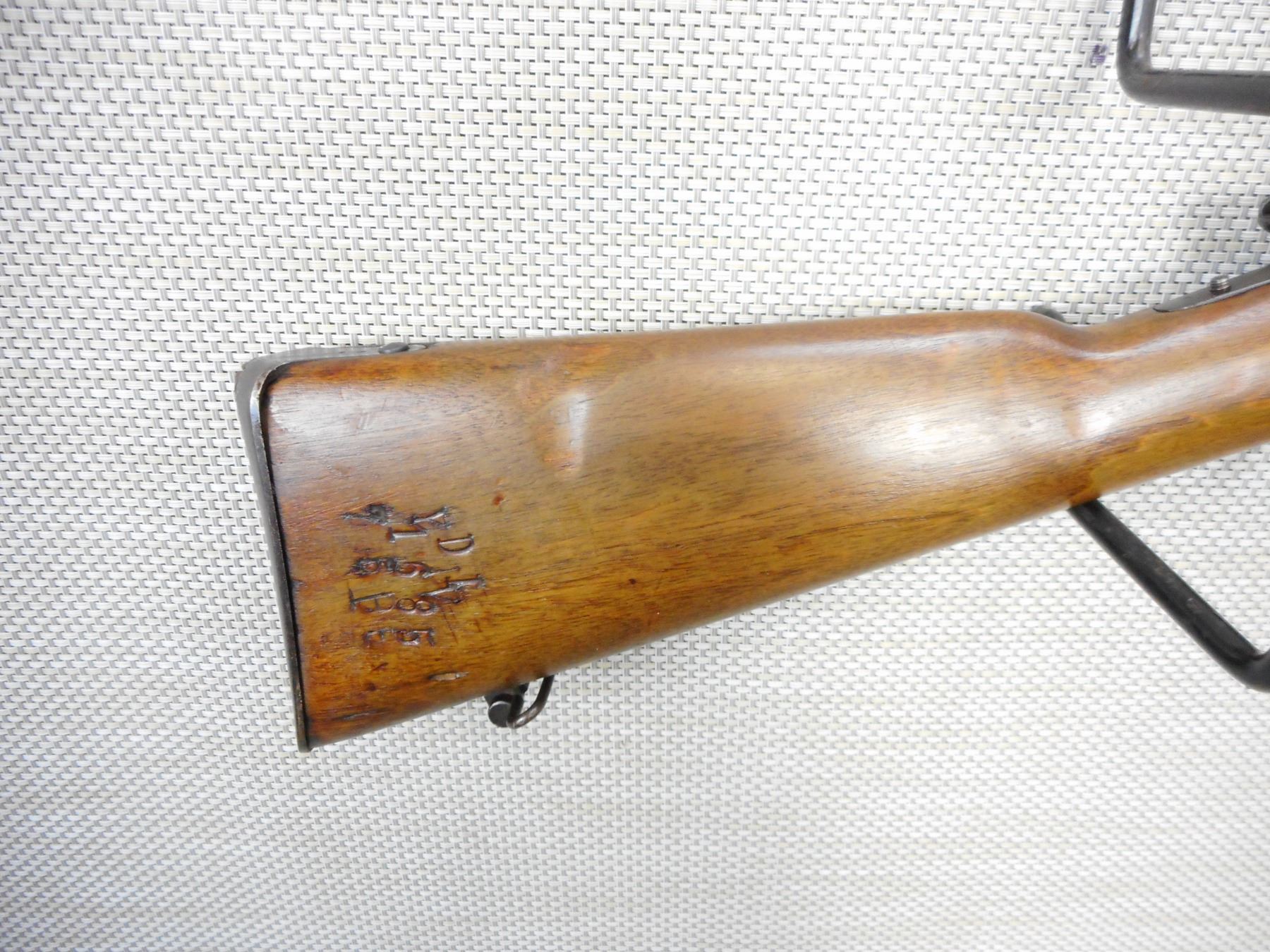 WWI ERA VETTERLI-VITALI, MODEL: 1870/87/16 RIFLE, CALIBER: CONVERTED TO 6.5 ITALIAN , DATED 1890, WWI ERA REWORK, BORE IS VERY GOOD, BLADE FRONT AND ADJUSTABLE REAR SIGHT, RETAINS FULL MILITARY CONFIGURATION, SMALL CHIP IN THE FOREND, SLING SWIVEL LOOPS, STEEL BUTT PLATE, MATCHING STOCK AND RECEIVER BY SERIAL #, SHOWS SOME HANDLING MARKS , ACTION: BOLT ACTION RIFLE , BARREL LENGTH: 34" , CONDITION: 7/10 , STOCK # 9252 , SERIAL # 1685 , CLASS: CANADIAN NON RESTRICTED CLASS