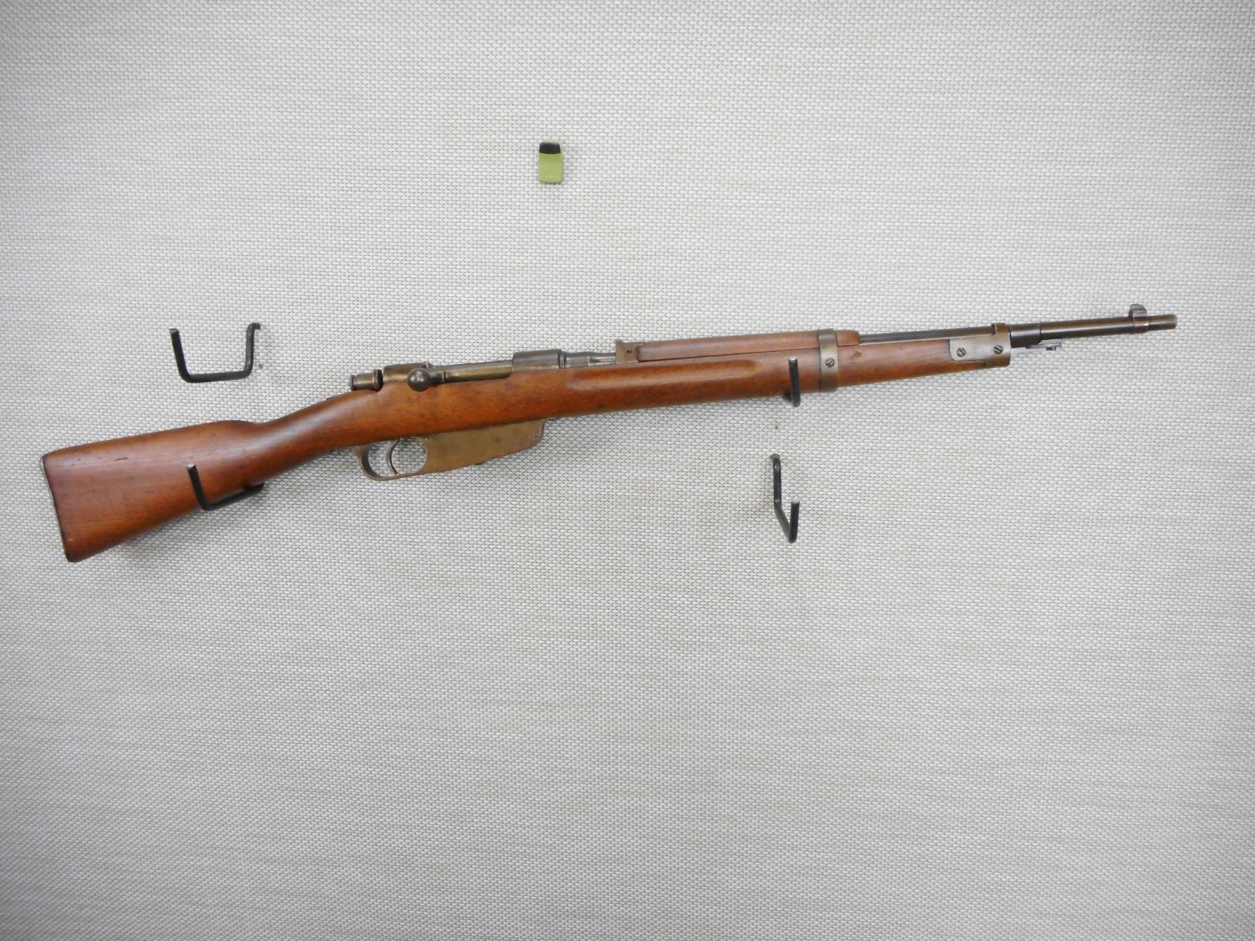 CARCANO , MODEL: M1938 CARBINE , CALIBER: 6.5 X 52R , BORE IS VERY GOOD, RETAINS FULL MILITARY CONFIGURATION, SLING SWIVEL LOOPS, SHOWS SOME HANDLING MARKS, HAS A BAYONET LUG, STOCK AND RECEIVER MATCH BY SERIAL # , ACTION: BOLT ACTION RIFLE , BARREL LENGTH: 21" , CONDITION: 5/10 , STOCK # 9253 , SERIAL # 236 , CLASS: CANADIAN NON RESTRICTED CLASS