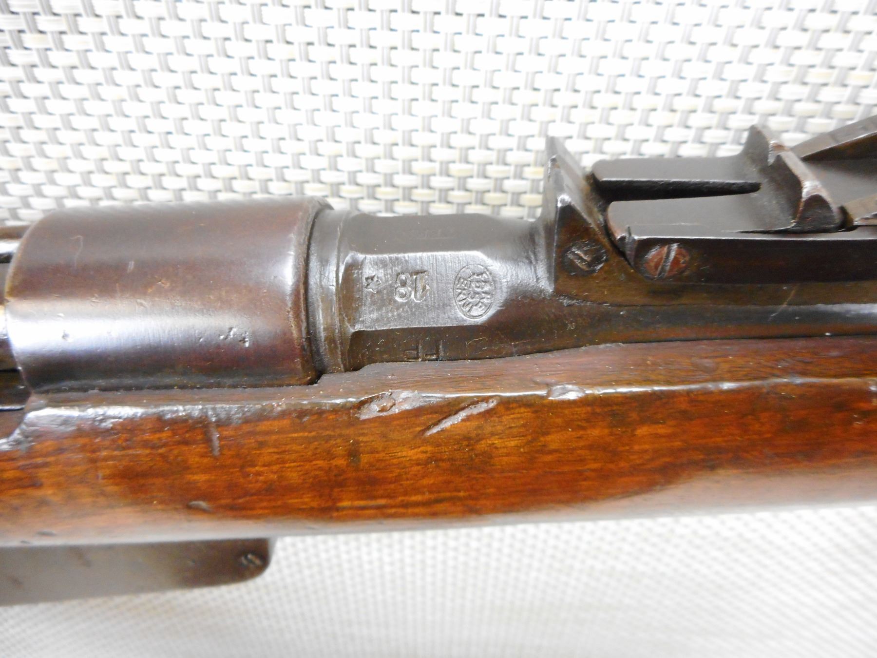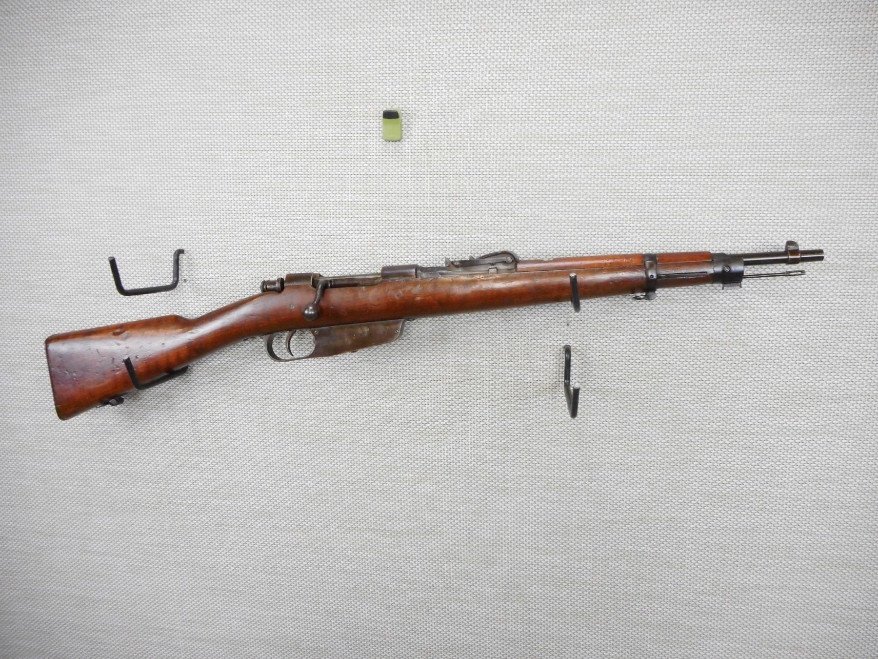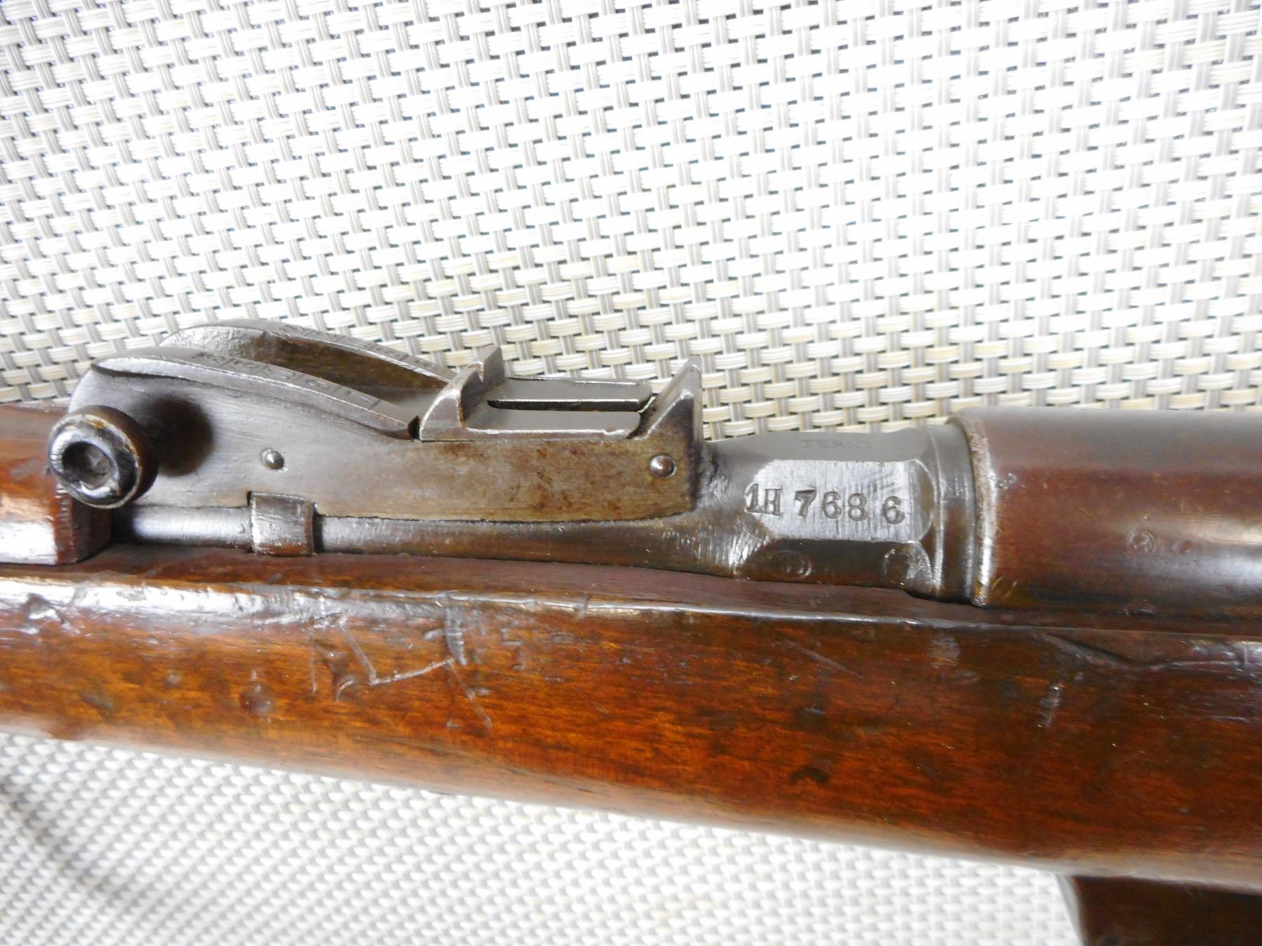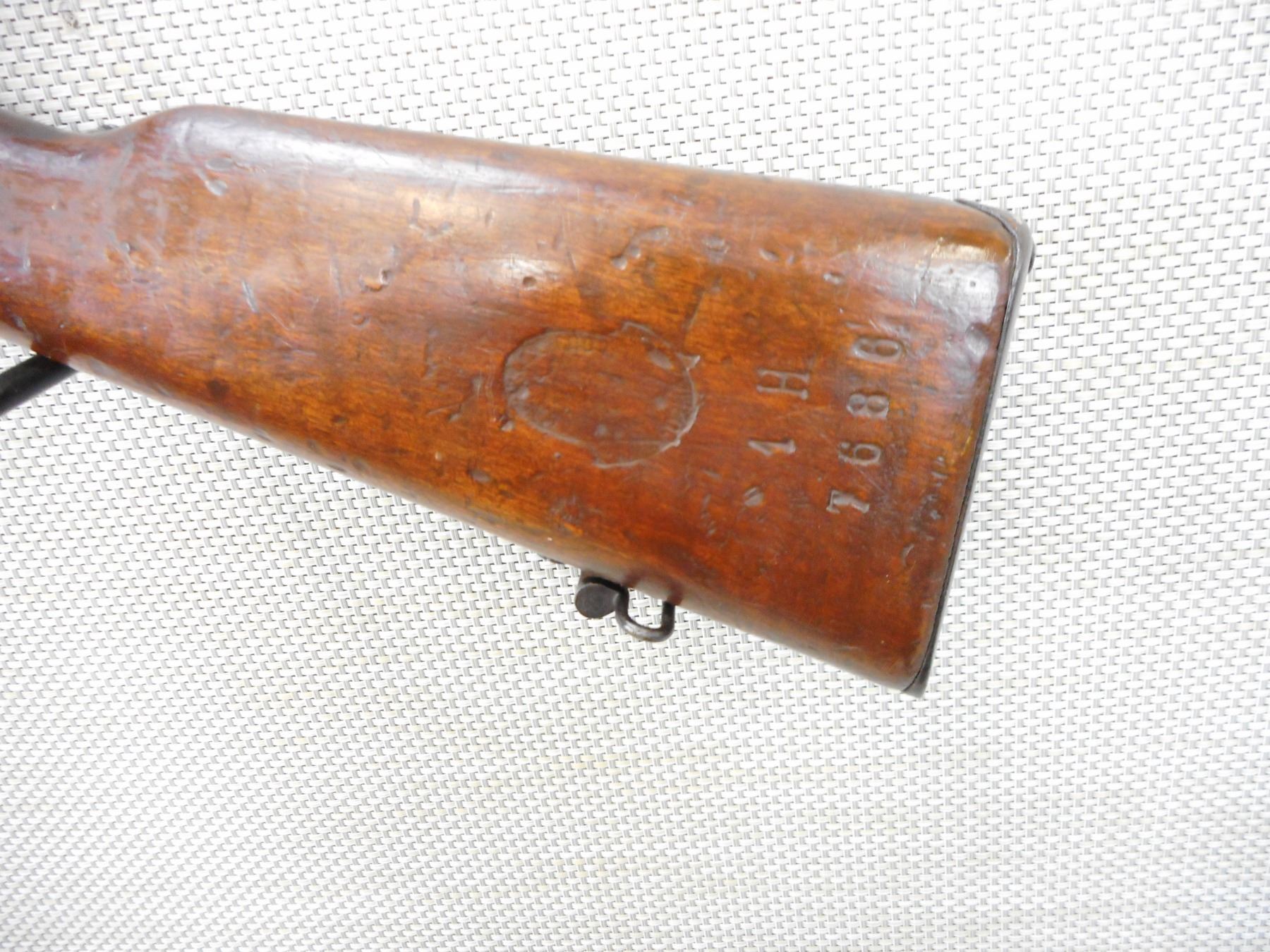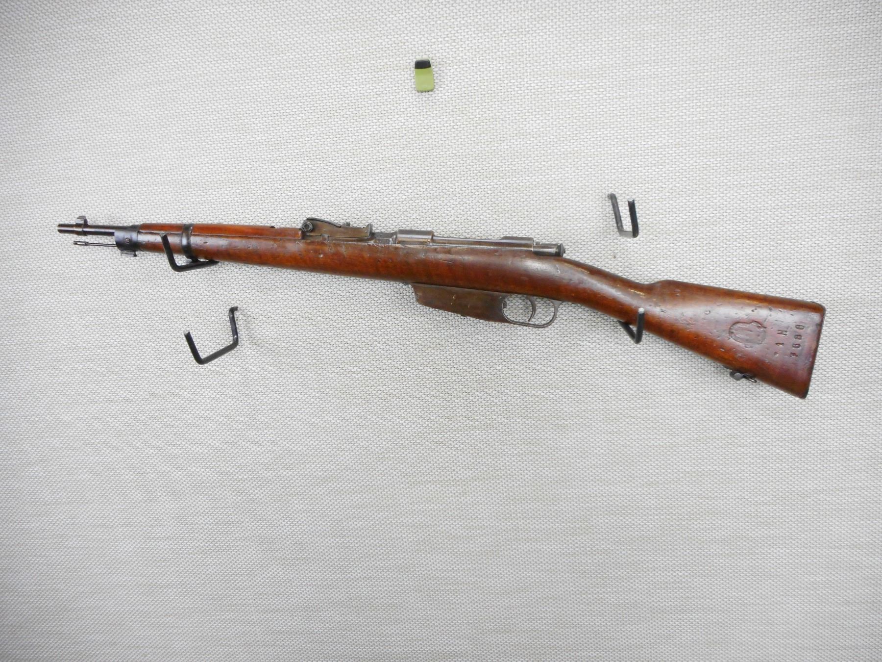CARCANO , MODEL: M1938 CARBINE , CALIBER: 6.5 X 52R , RECEIVER AND STOCK MATCH BY SERIAL #, VERY GOOD BORE, BLADE FRONT AND ADJUSTABLE REAR SIGHTS, SLING SWIVEL LOOPS, SHOWS SOME HANDLING MARKS, STEEL BUTT PLATE , ACTION: BOLT ACTION RIFLE , BARREL LENGTH: 18" , CONDITION: 6/10 , STOCK # 9254 , SERIAL # 7686 , CLASS: CANADIAN NON RESTRICTED CLASS