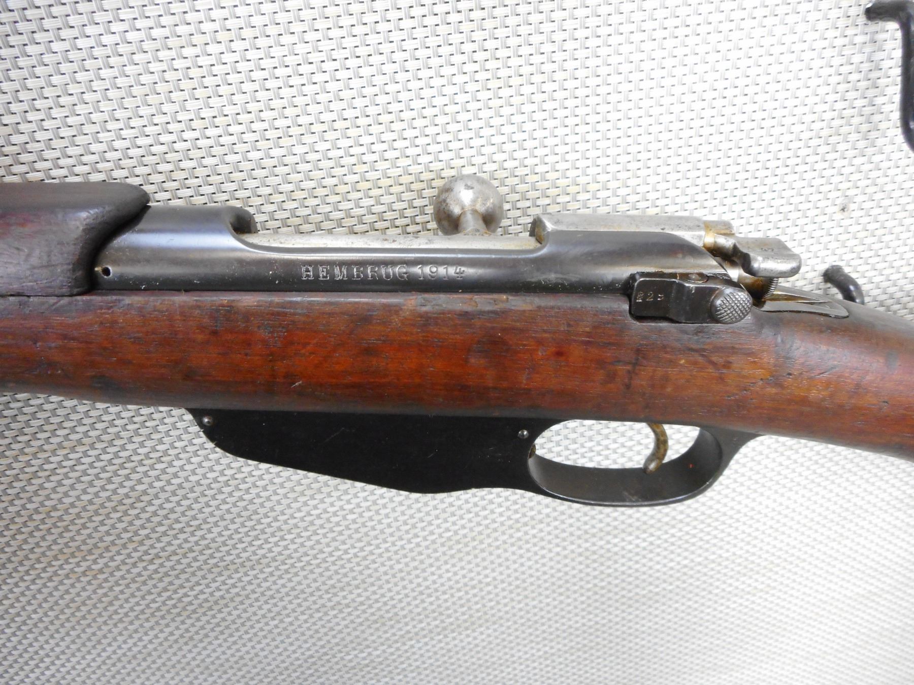 WWI ERA, MANNLICHER, MODEL: 1895 DUTCH RIFLE , CALIBER: 6.5 X 53R MANNLICHER , DATED 1914, ARSENAL HEMBRUG, MISMATCHED SERIAL #'S, BORE IS GOOD, BLADE FRONT AND ADJUSTABLE REAR SIGHTS, RETAIN FULL MILITARY CONFIGURATION, SLING SWIVEL LOOPS, STEEL BUTT PLATE, SHOWS SOME HANDLING MARKS , ACTION: BOLT ACTION RIFLE , BARREL LENGTH: 32" , CONDITION: 6/10 , STOCK # 9256 , SERIAL # 6947 , CLASS: CANADIAN NON RESTRICTED CLASS