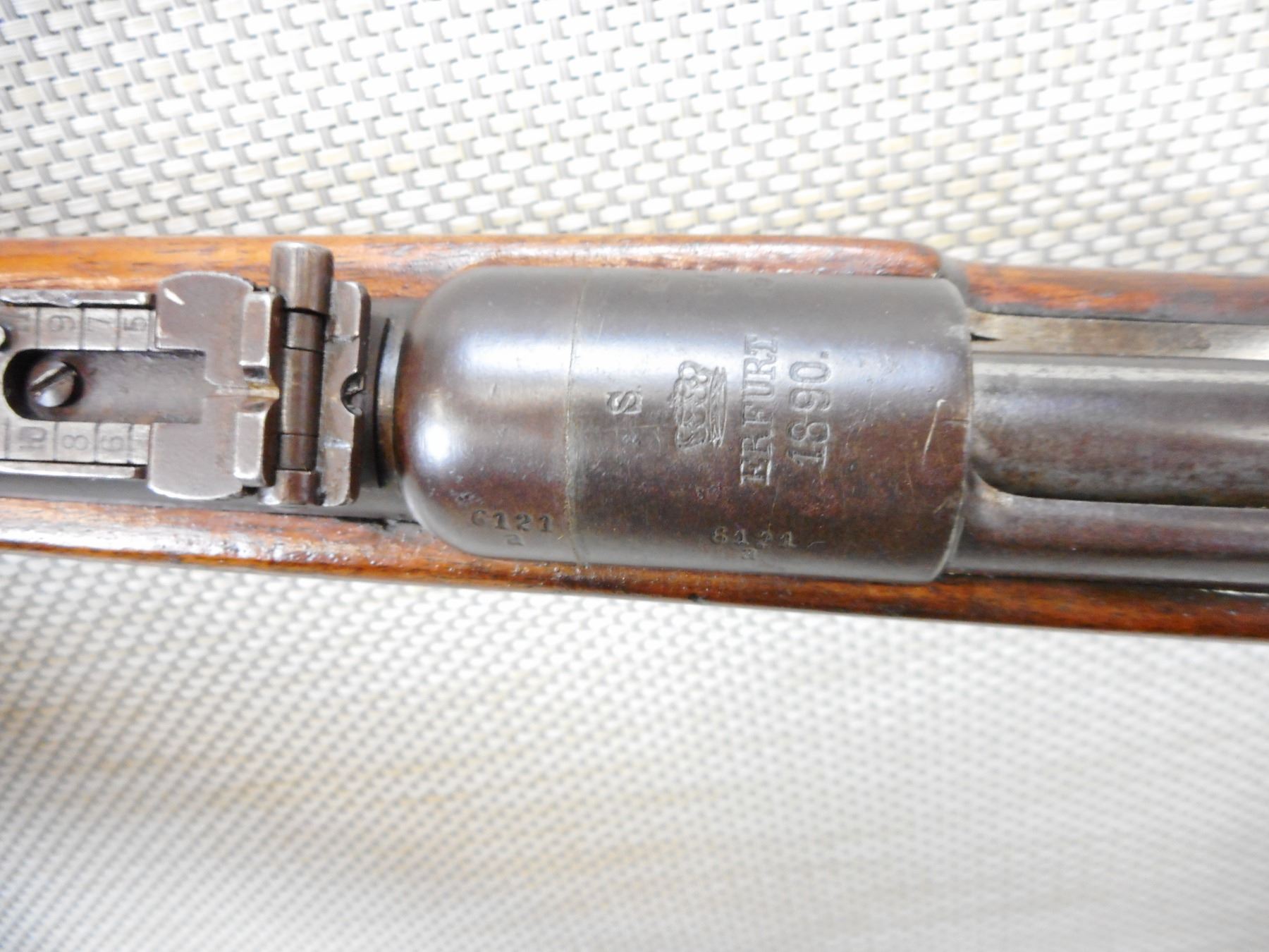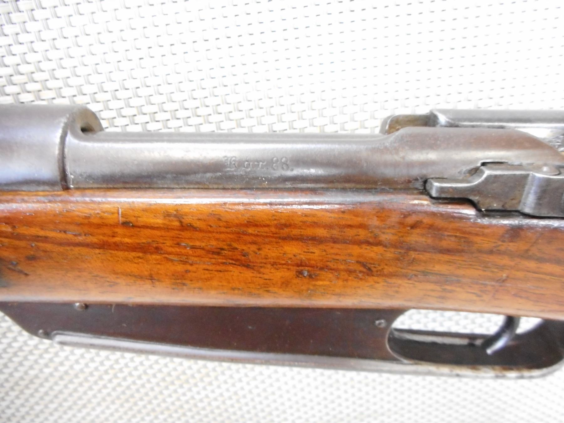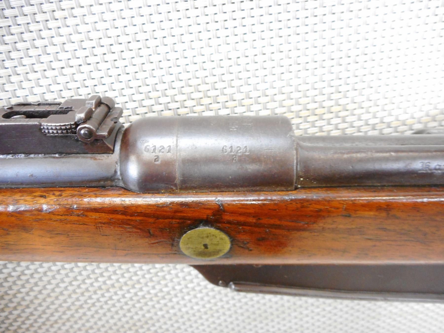 RARE, COMMISSION CARBINE , MODEL: KAR 88 CARBINE, CALIBER: "S" FOR .323" DIA , STRIPPER CLIP FED ( DOES NOT COME WITH THE STRIPPER CLIP) MADE IN GERMANY ERFURT 18590, MATCHING PARTS BY SERIAL # BORE IS GOOD, TAPPED HOLE IN THE BUTT PLATE, RETAINS FULL MILITARY CONFIGURATION, BARLEY CORN FRONT AND ADJUSTBLE REAR SIGHTS, TURN DOWN BOLT HANDLE, SLING SWIVEL LOOPS, SHOWS SOME HANDLING MARKS , ACTION: BOLT ACTION RIFLE , BARREL LENGTH: 18" , CONDITION: 6/10 , STOCK # 9261 , SERIAL # 6121 , CLASS: CANADIAN NON RESTRICTED CLASS