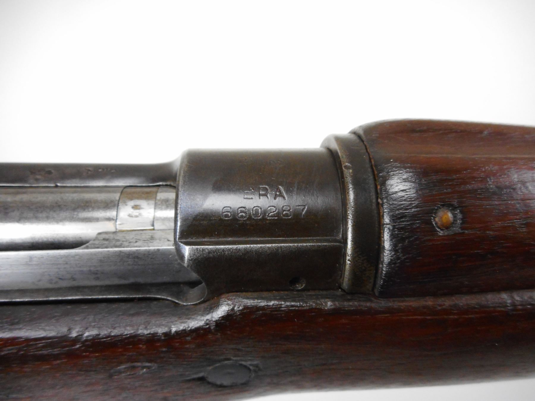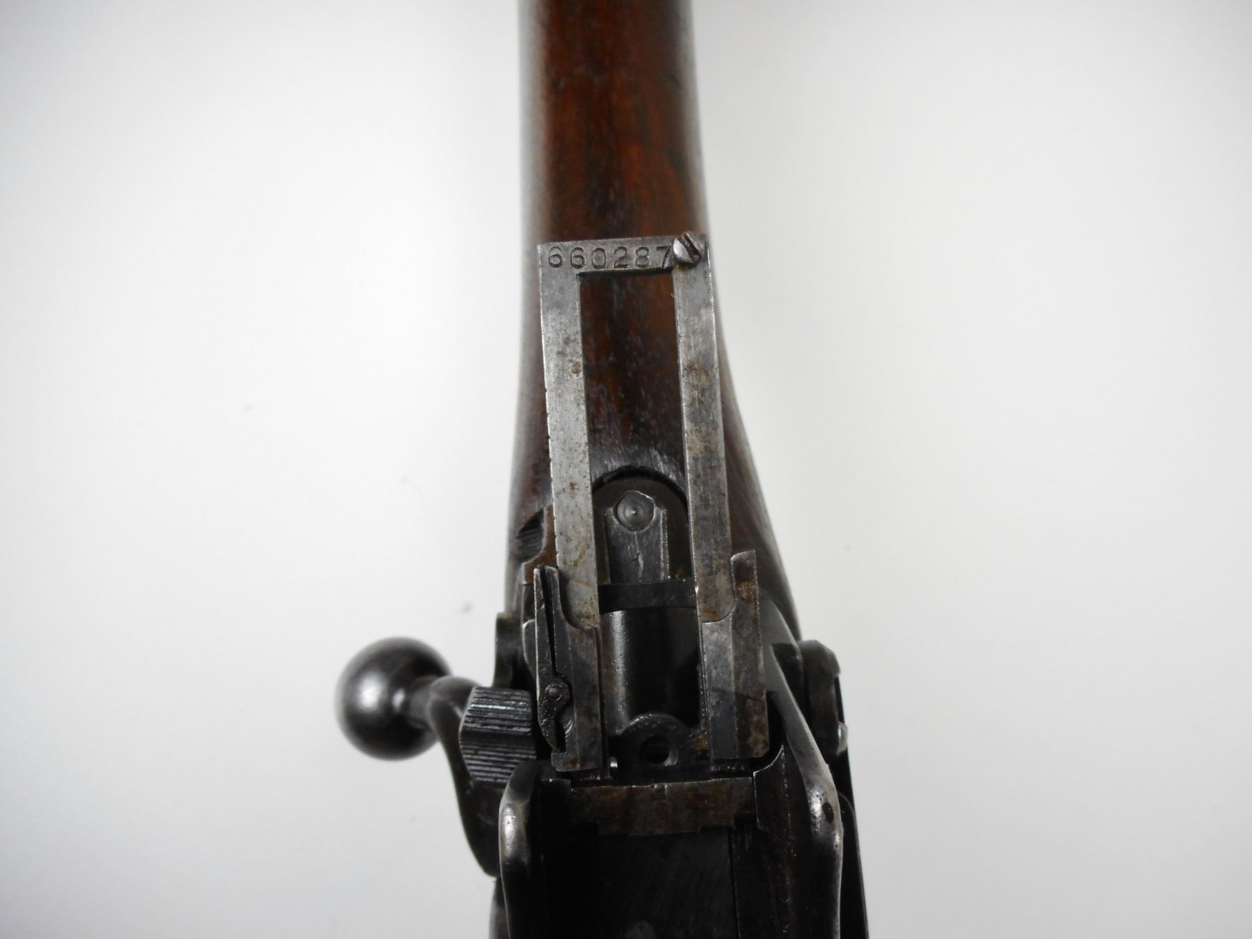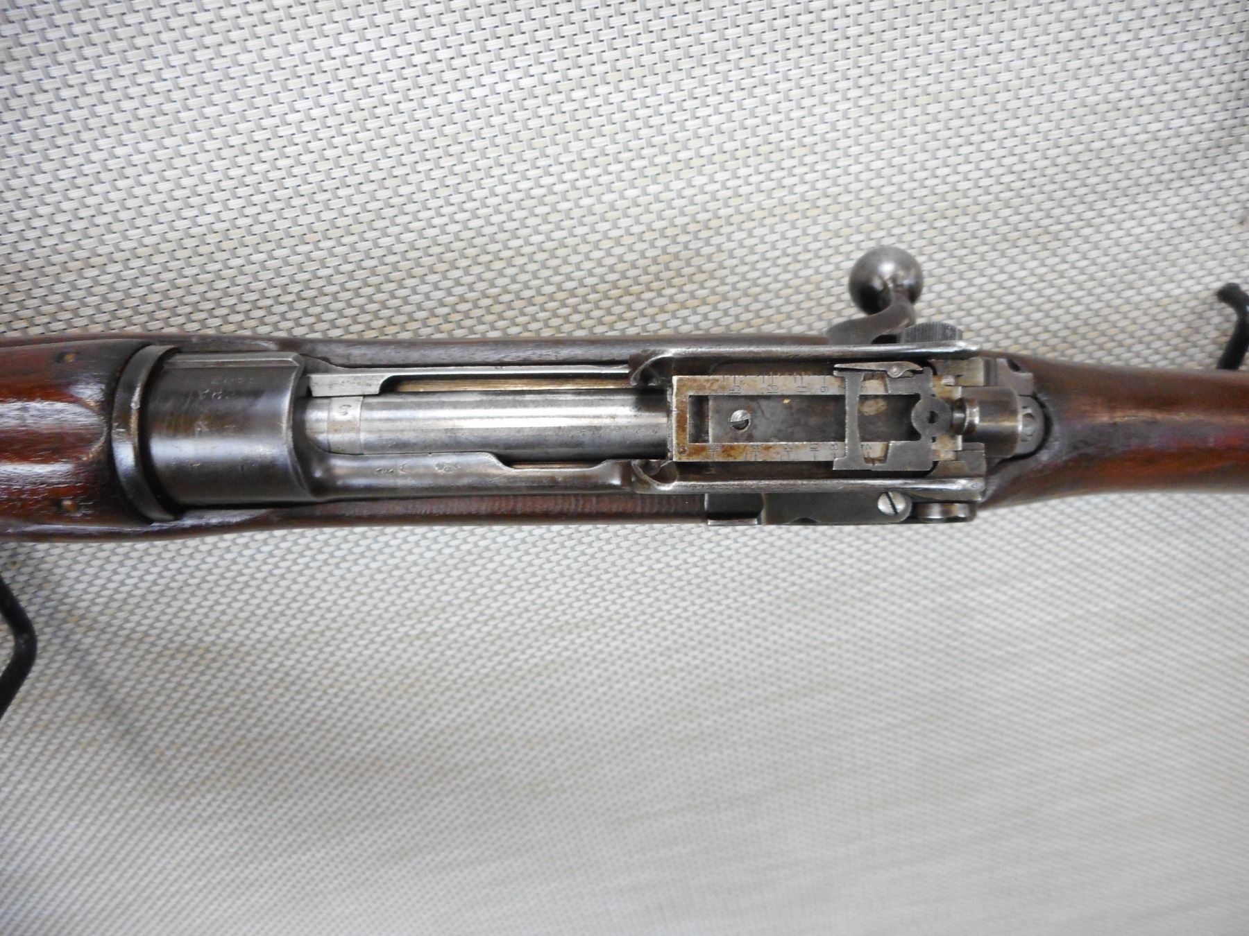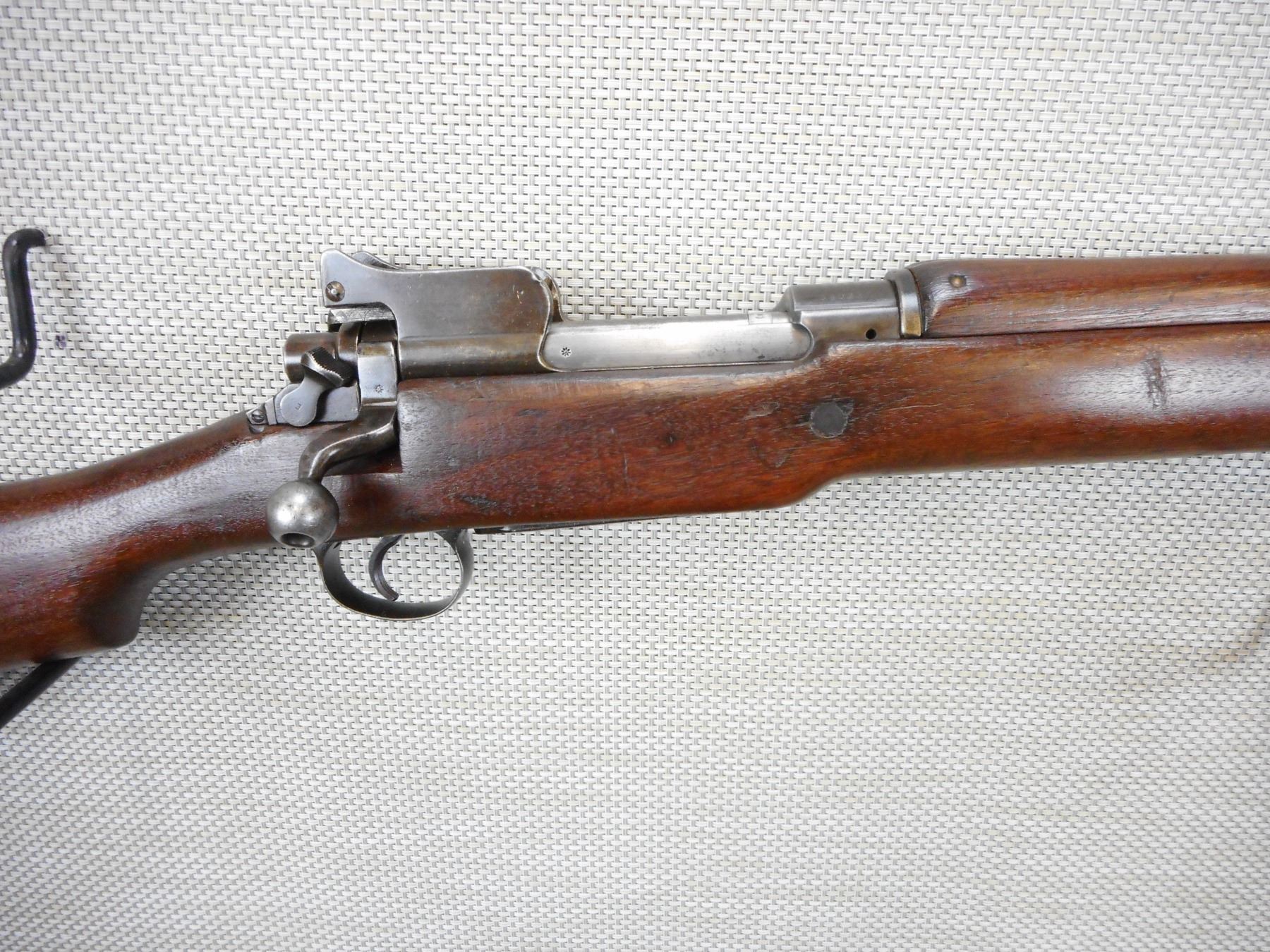 WWI ERA, ENFIELD , MODEL: P14 ERA, CALIBER: 303 BR , BOLT, REAR SIGHT AND RECEIVER MATCH BY SERIAL #, BORE IS VERY GOOD, BARLEY CORN FRONT AND PEEP REAR SIGHT, RETAINS FULL MILITARY CONFIGURATION, SHOWS SOME HANDLING MARKS , ACTION: BOLT ACTION RIFLE , BARREL LENGTH: 26" , CONDITION: 7/10 , STOCK # 9267 , SERIAL # 660287 , CLASS: CANADIAN NON RESTRICTED CLASS