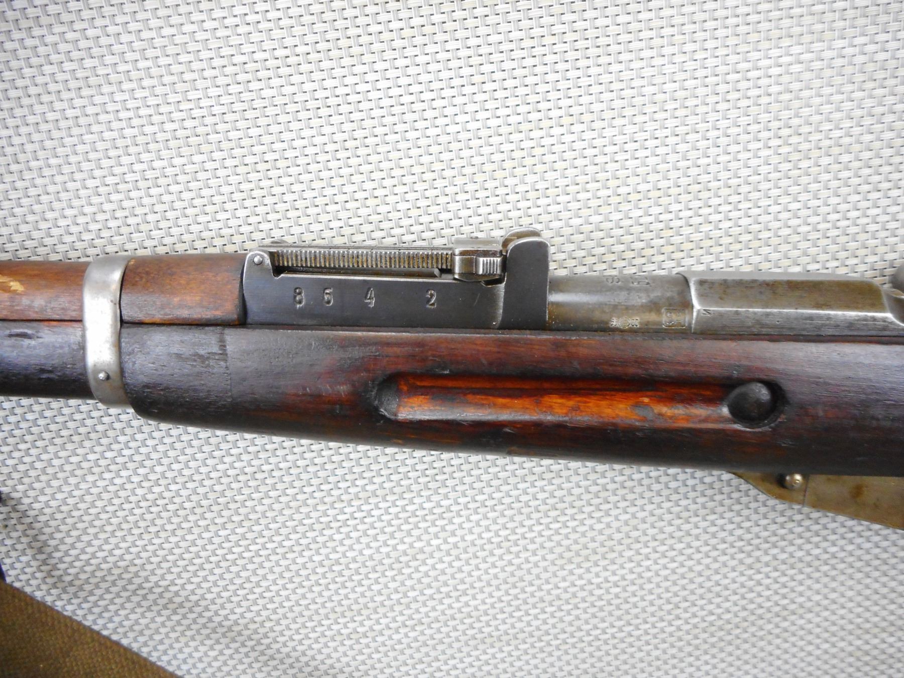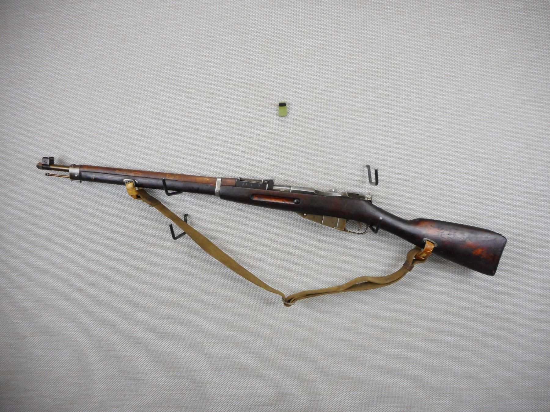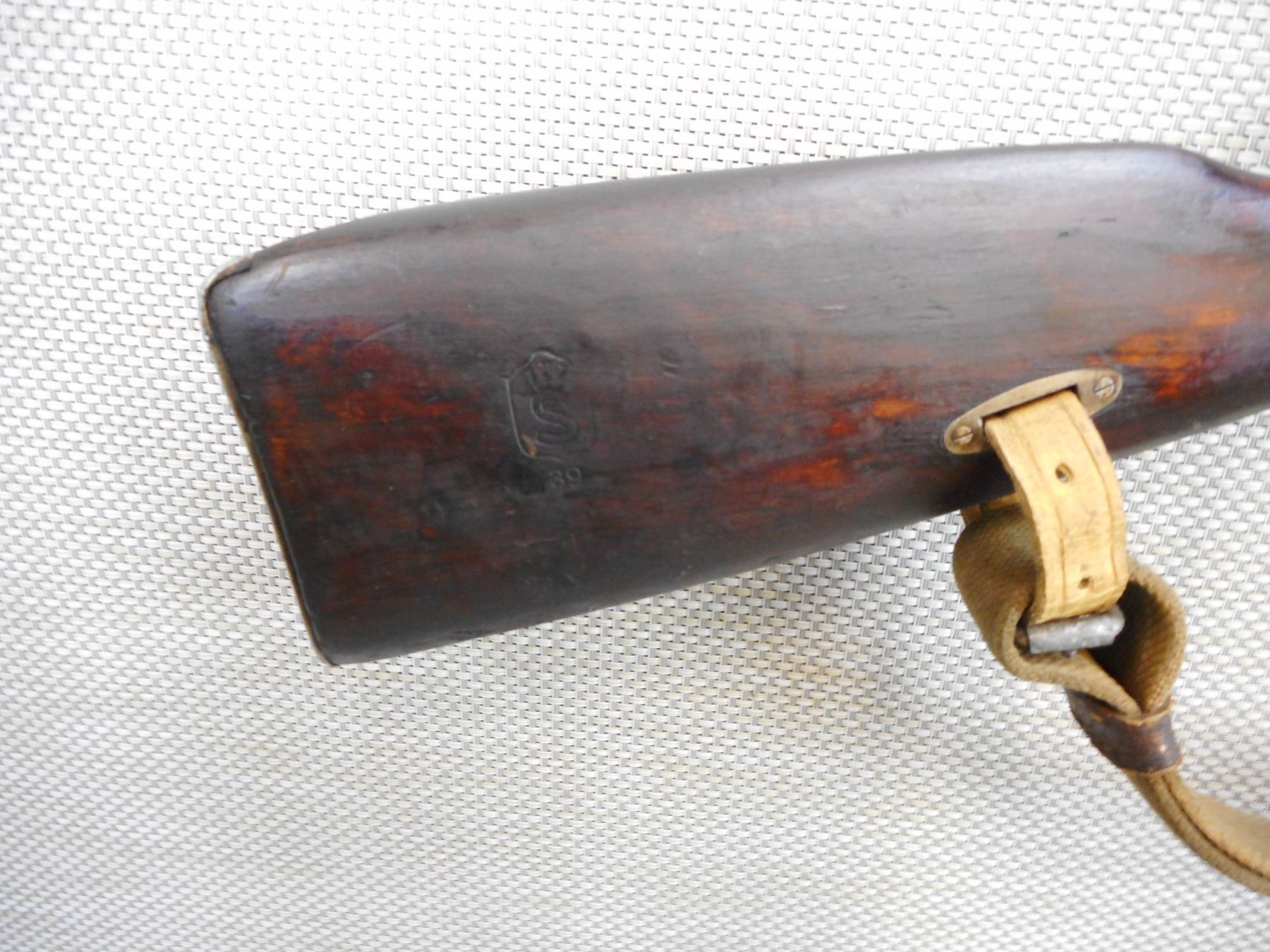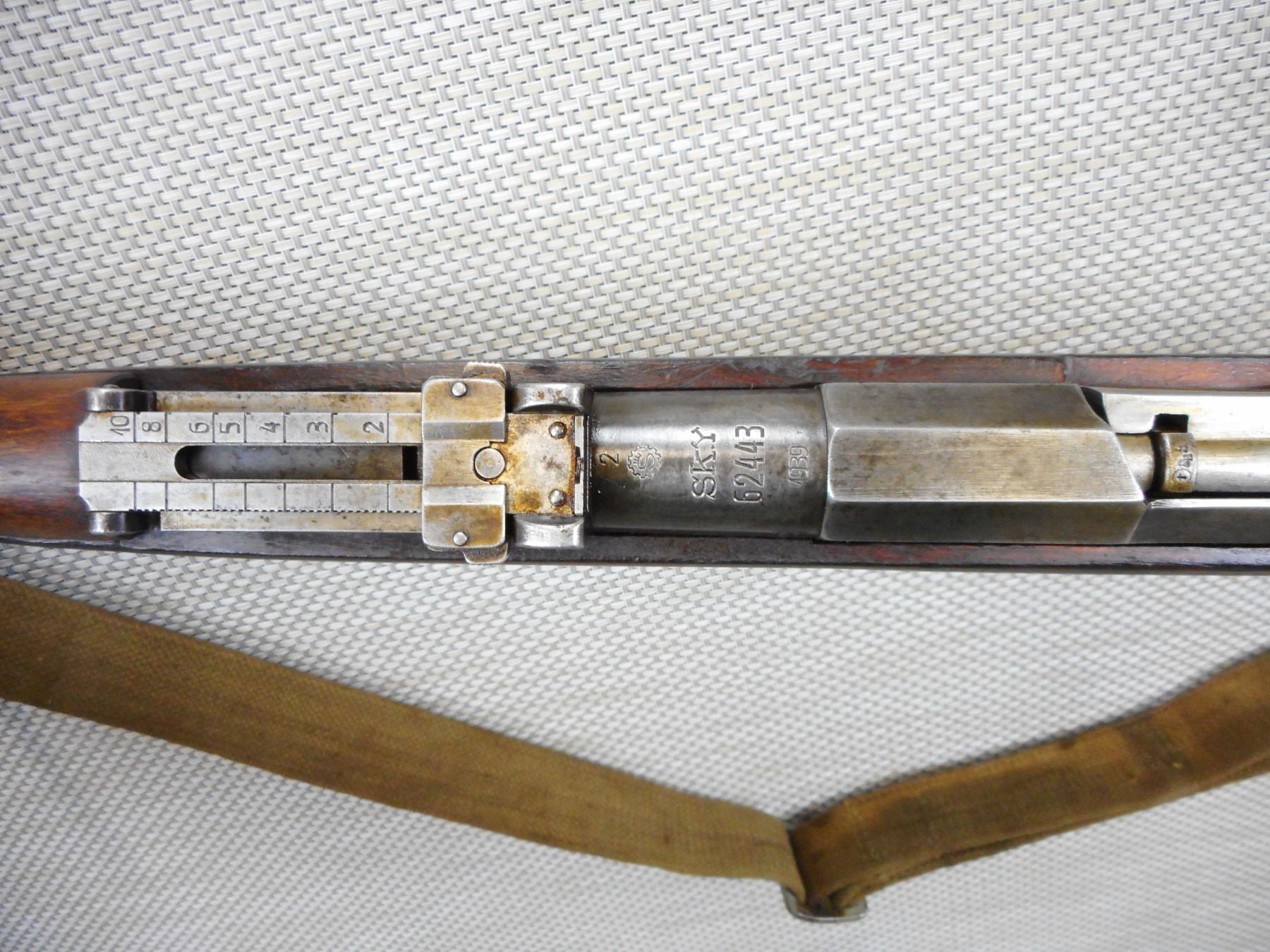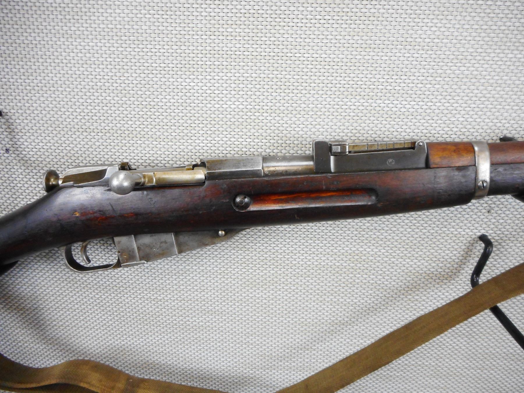 WWII ERA, MOSIN NAGANT, MODEL: 1928/30 FINNISH , CALIBER: 7.62 X 54R , COMES WITH BRASS MUZZLE CAP, MADE BY SAKO, DATED 1939, MATCHING BOLT AND RECEIVER, BORE IS GOOD, BARLEY CORN FRONT SIGHT AND ADJUSTABLE REAR SIGHT, RETAINS FULL MILITARY CONFIGURATION, LEATHER AND CANVAS SLING, SHOWS SOME HANDLING MARKS , ACTION: BOLT ACTION RIFLE , BARREL LENGTH: 27" , CONDITION: 7/10 , STOCK # 9268 , SERIAL # 62443 , CLASS: CANADIAN NON RESTRICTED CLASS