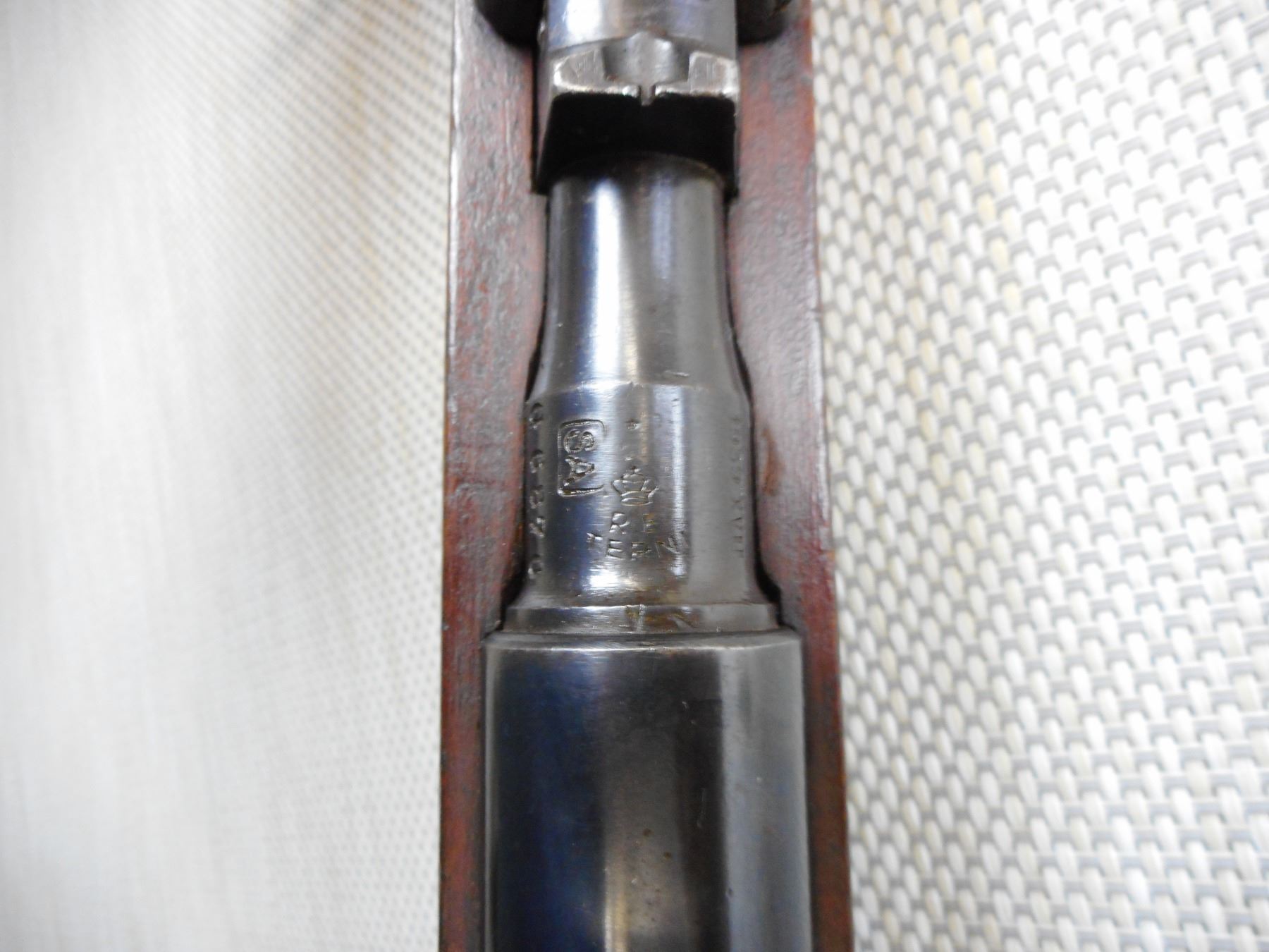 CARCANO, MODEL: 1938 CARBINE , CALIBER: 7.35MM ITALIAN CARCANO , COMES WITH BAYONET AND SCABBARD THAT DON'T MATCH BY SERIAL #, VERY GOOD BORE, DATED 1939, RETAINS FULL MILITARY CONFIGURATION, SMALL CHIP AND CRACK AT THE FOREND WOOD, SHOWS SOME HANDLING MARKS, STEEL BUTT PLATE, BLADE FRONT AND FIXED REAR SIGHT , ACTION: BOLT ACTION RIFLE , BARREL LENGTH: 21" , CONDITION: 6/10 , STOCK # 9280 , SERIAL # G6870 , CLASS: CANADIAN NON RESTRICTED CLASS