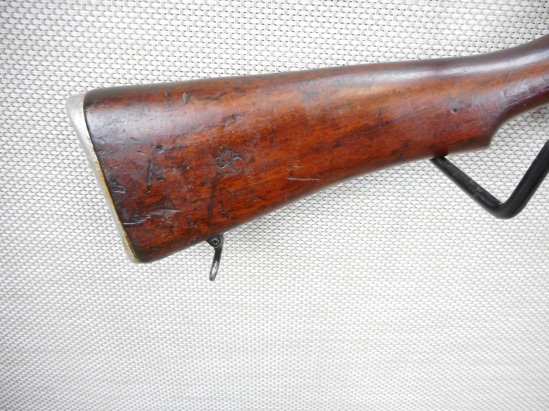 RARE, LEE ENFIELD, MODEL: NO I MKIII , CALIBER: 7.62 X 51 NATO , COMES WITH BAYONET/SCABBARD AND MAGAZINE, THE BAYONET THAT IS DATED 10 44 AND MARKED " DP", MATCHING BOLT AND RECEIVER BY SERIAL #, RIFLE IS DATED 1959, VERY GOOD BORE, RIFLE FACTORY ISHAPORE ARSENAL, BRD ARROW MARKED ON THE BOLT, STEEL BUTT PLATE, BARLEY CORN FRONT AND ADJUSTABLE REAR SIGHT, SHOWS EXTENSIVE HANDLING MARKS, HAS SLING SWIVEL LOOPS, BAYONET LUG IS INTACT , ACTION: BOLT ACTION RIFLE , BARREL LENGTH: 25" , CONDITION: 6/10 , STOCK # 9287 , SERIAL # D9579 , CLASS: CANADIAN NON RESTRICTED CLASS