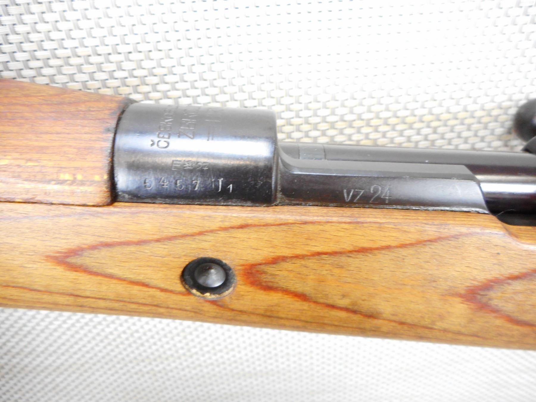 BRNO, MODEL: VZ24, CALIBER: 8MM MAUSER , HINGED FLOOR PLATE, BOLT AND RECEIVER DON'T MATCH BY SERIAL #, EXCELLENT BORE , LAMINATED STOCK, SLING SWIVEL LOOPS, STEEL BUTT PLATE, SHOWS VERY LITTLE HANDLING MARKS , ACTION: BOLT ACTION RIFLE , BARREL LENGTH: 24" , CONDITION: 9/10 , STOCK # 9294 , SERIAL # 5457 , CLASS: CANADIAN NON RESTRICTED CLASS