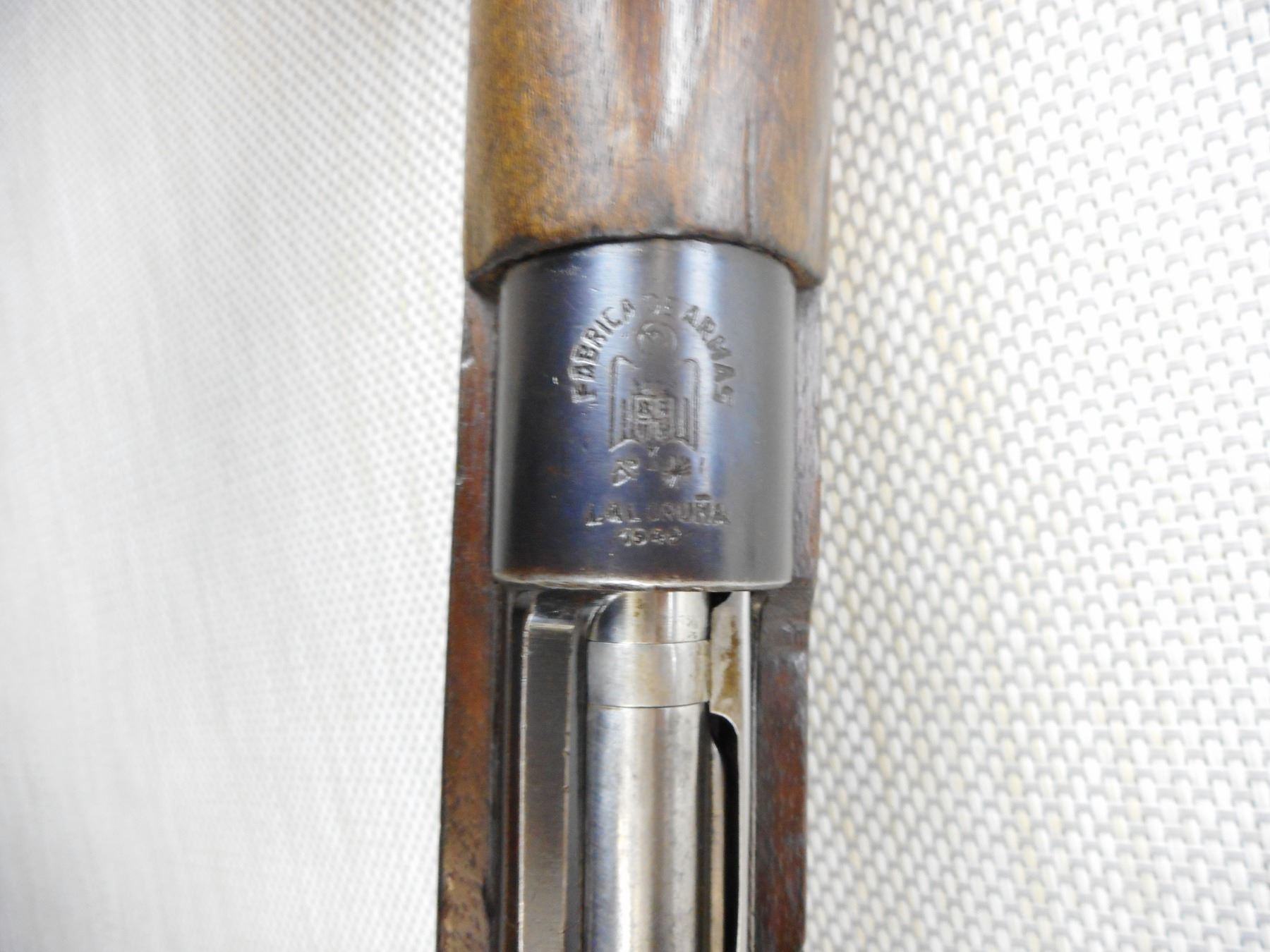 MAUSER , MODEL: 1943 SPANISH SHORT RIFLE , CALIBER: 8MM MAUSER , SPANISH MADE LA CARUNA, BORE IS GOOD, RAMP FRONT AND ADJUSTABLE REAR SIGHTS, BOLT AND RECEIVER ARE MATCHING BY SERIAL #, RETAINS FULL MILITARY CONFIGURATION, SLING SWIVEL LOOPS, STEEL BUTT PLATE, SHOWS SOME HANDLING MARKS , ACTION: BOLT ACTION RIFLE , BARREL LENGTH: 24" , CONDITION: 6/10 , STOCK # 9296 , SERIAL # K5585 , CLASS: CANADIAN NON RESTRICTED CLASS