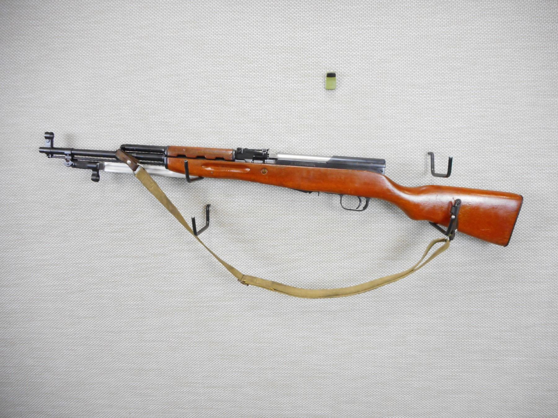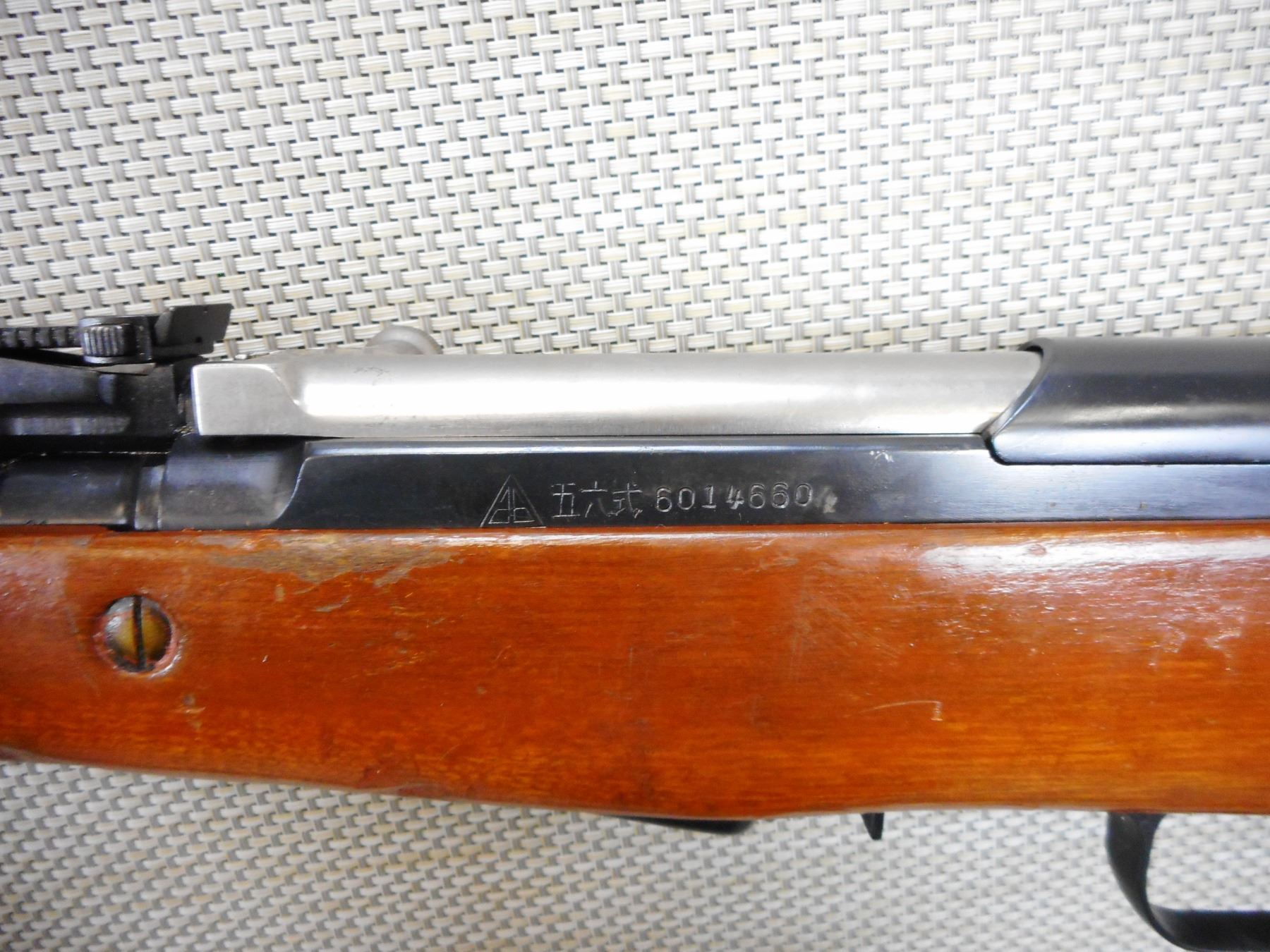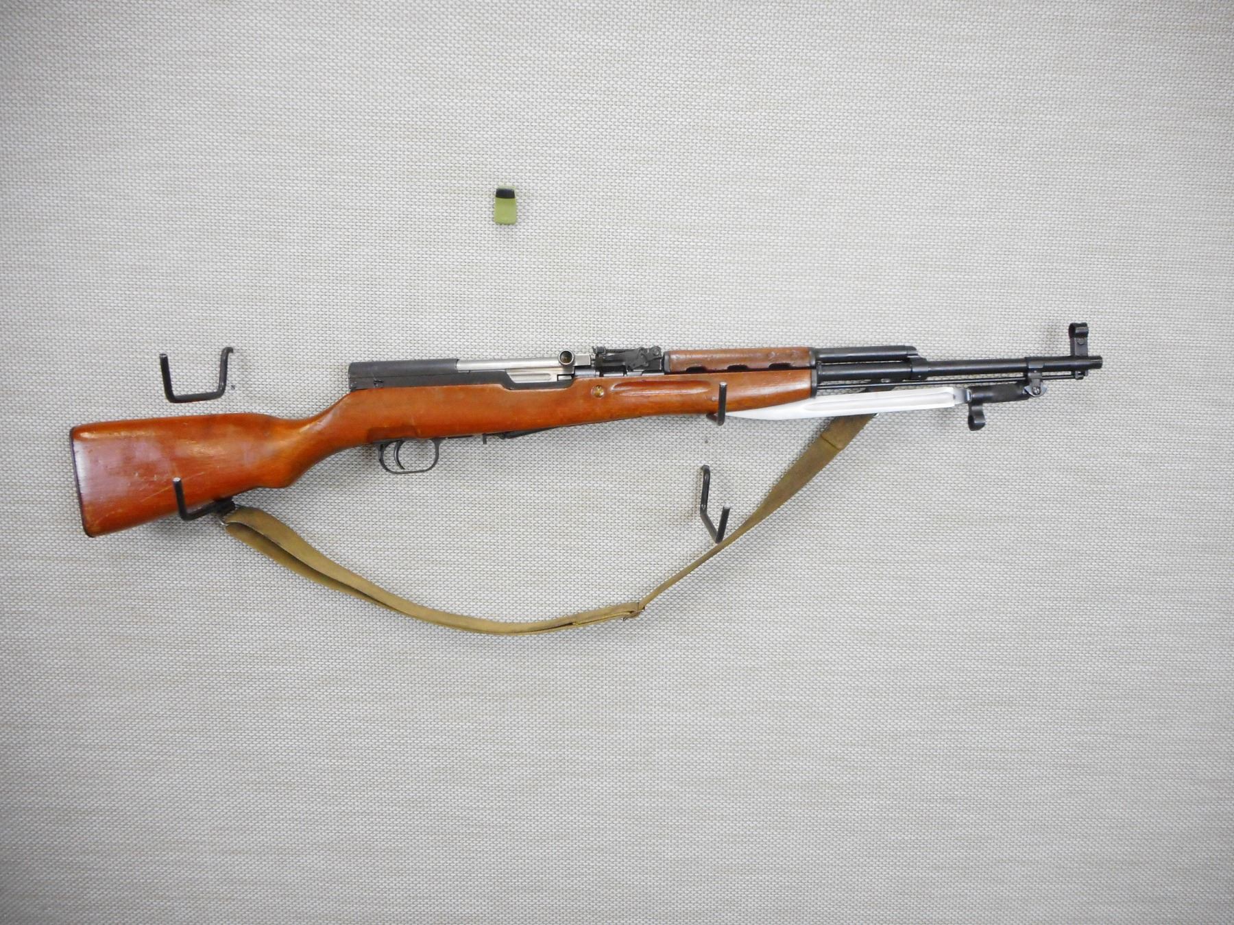 NORINCO , MODEL: SKS, CALIBER: 7.62 X 39 , EXCELLENT BORE, ARSENAL FACTORY 26, NOT DATED, HOODED FRONT AND ADJUSTABLE REAR SIGHTS, ORIGINAL CANVAS AND LEATHER SLING, FEATURES A RUSSIAN FOLDING BLADE BAYONET ATTACHED , ACTION: SEMI AUTOMATIC RIFLE , BARREL LENGTH: 20 1/2" , CONDITION: 7/10 , STOCK # 9307 , SERIAL # 6014660 , CLASS: CANADIAN NON RESTRICTED CLASS