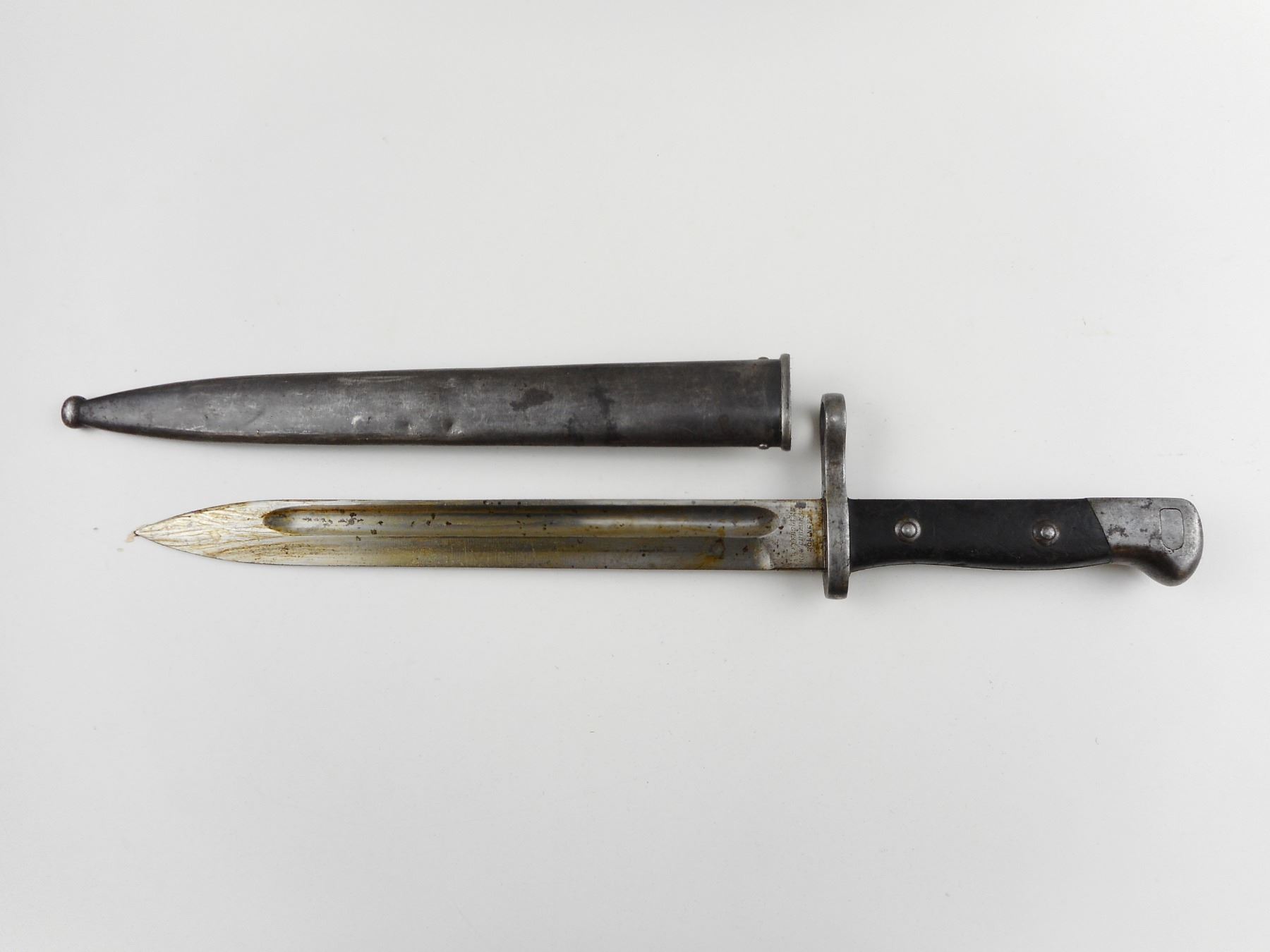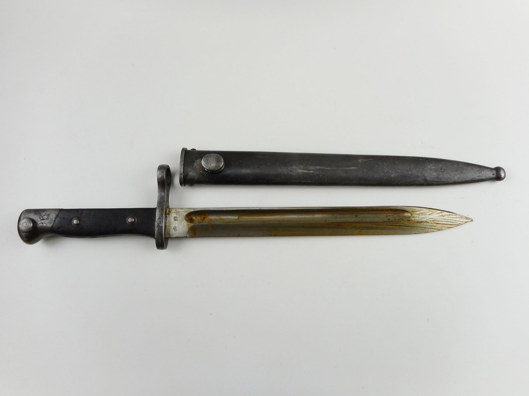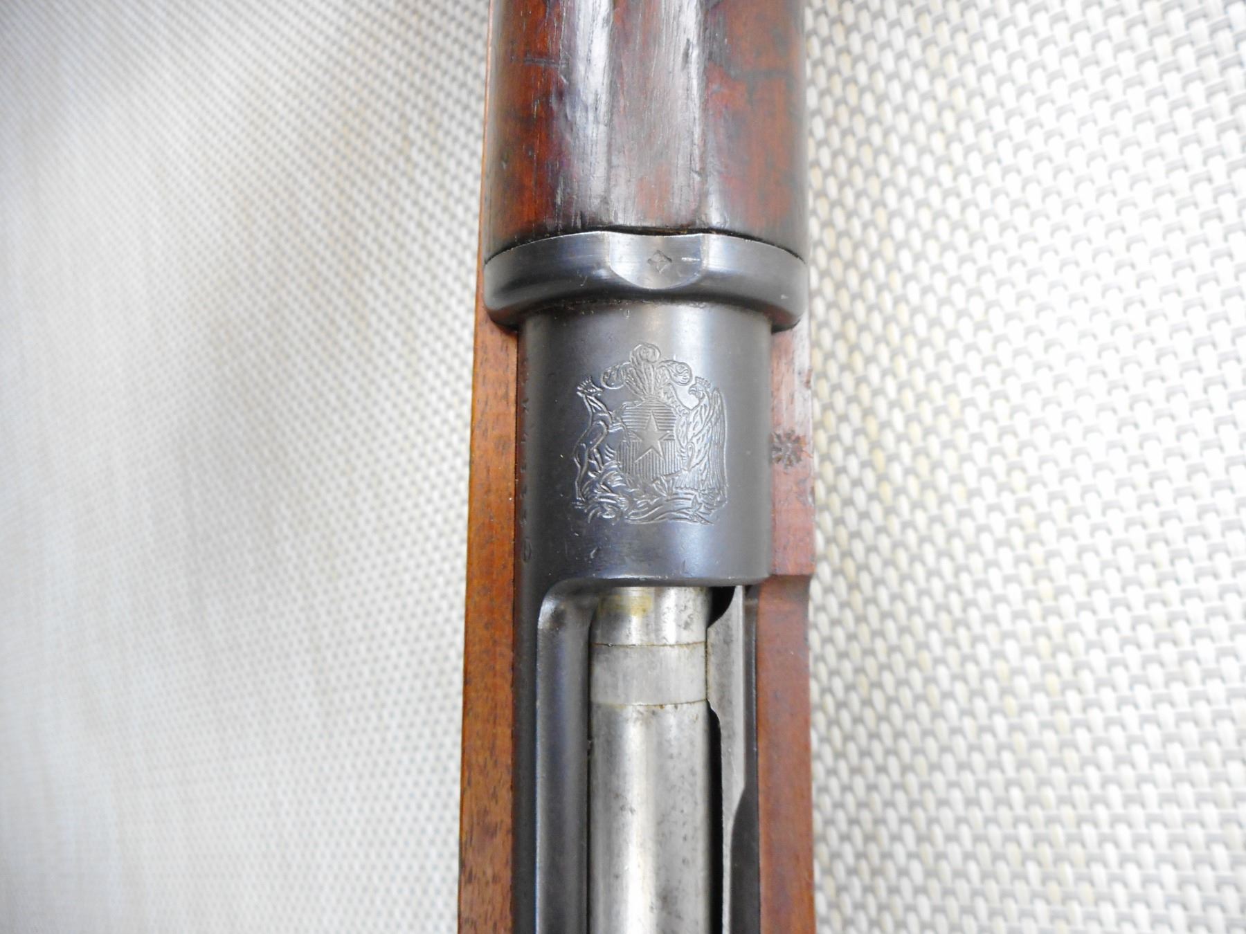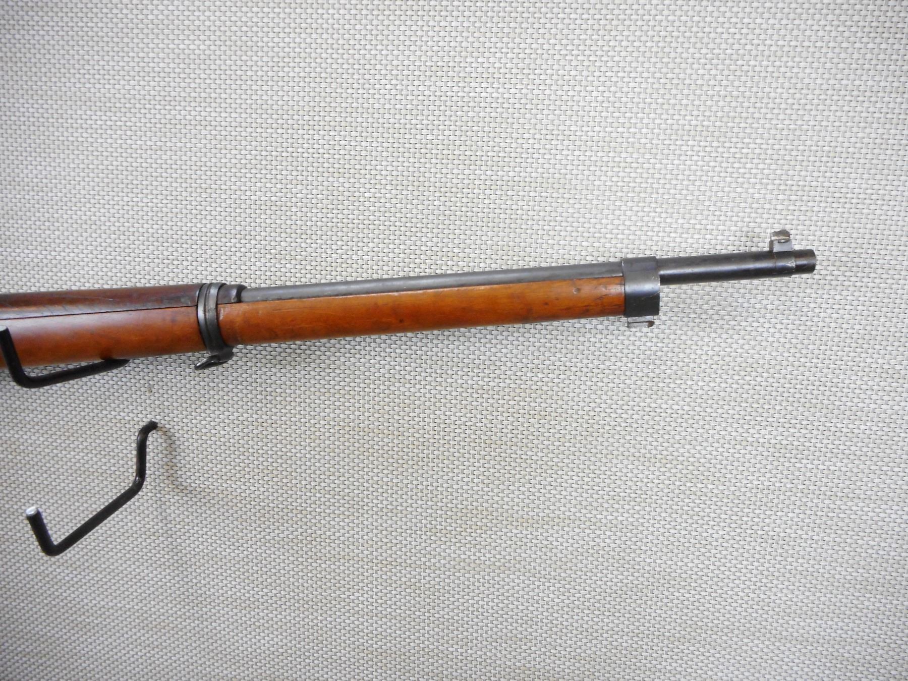 MAUSER, MODEL: 1895, CALIBER: 7.62 NATO, COMES WITH BAYONET AND SCABBARD, CHILEAN MAUSER, BOLT AND RECEIVER MATCH BY SERIAL #, REWORKED TO 7.62 NATO CALIBER, RETAINS FULL MILITARY CONFIGURATION, BLADE FRONT AND ADJUSTABLE REAR SIGHTS, SLING SWIVEL LOOPS, STEEL BUTT PLATE, SHOWS SOME HANDLING MARKS, VERY GOOD BORE , ACTION: BOLT ACTION RIFLE , BARREL LENGTH: 29" , CONDITION: 7/10 , STOCK # 9320 , SERIAL # K4833 , CLASS: CANADIAN NON RESTRICTED CLASS