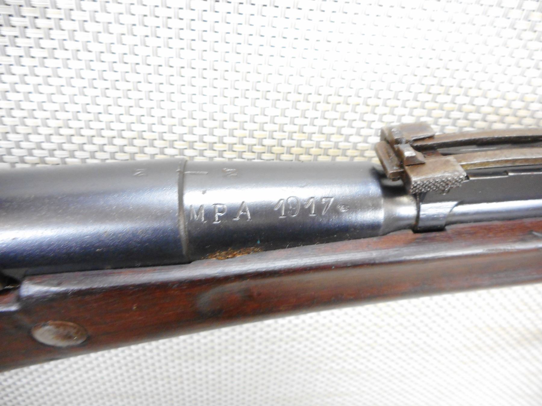 WWI ERA, MANNLICHER BERTHIER , MODEL: 1916 RIFLE , CALIBER: 8 X 50R LEBEL , CHATELLERAULT ARSENAL, MATCHING BOLT AND RECEIVER BY SERIAL #, DATED 1917, BORE IS VERY GOOD, RETAINS FULL MILITARY CONFIGURATION, SLING SWIVELS, SHOWS SOME HANDLING MARKS, MINOR CHIPS AT THE TOE, STEEL BUTT PLATE , ACTION: BOLT ACTION RIFLE , BARREL LENGTH: 31" , CONDITION: 7/10 , STOCK # 9322 , SERIAL # 51073 , CLASS: CANADIAN NON RESTRICTED CLASS