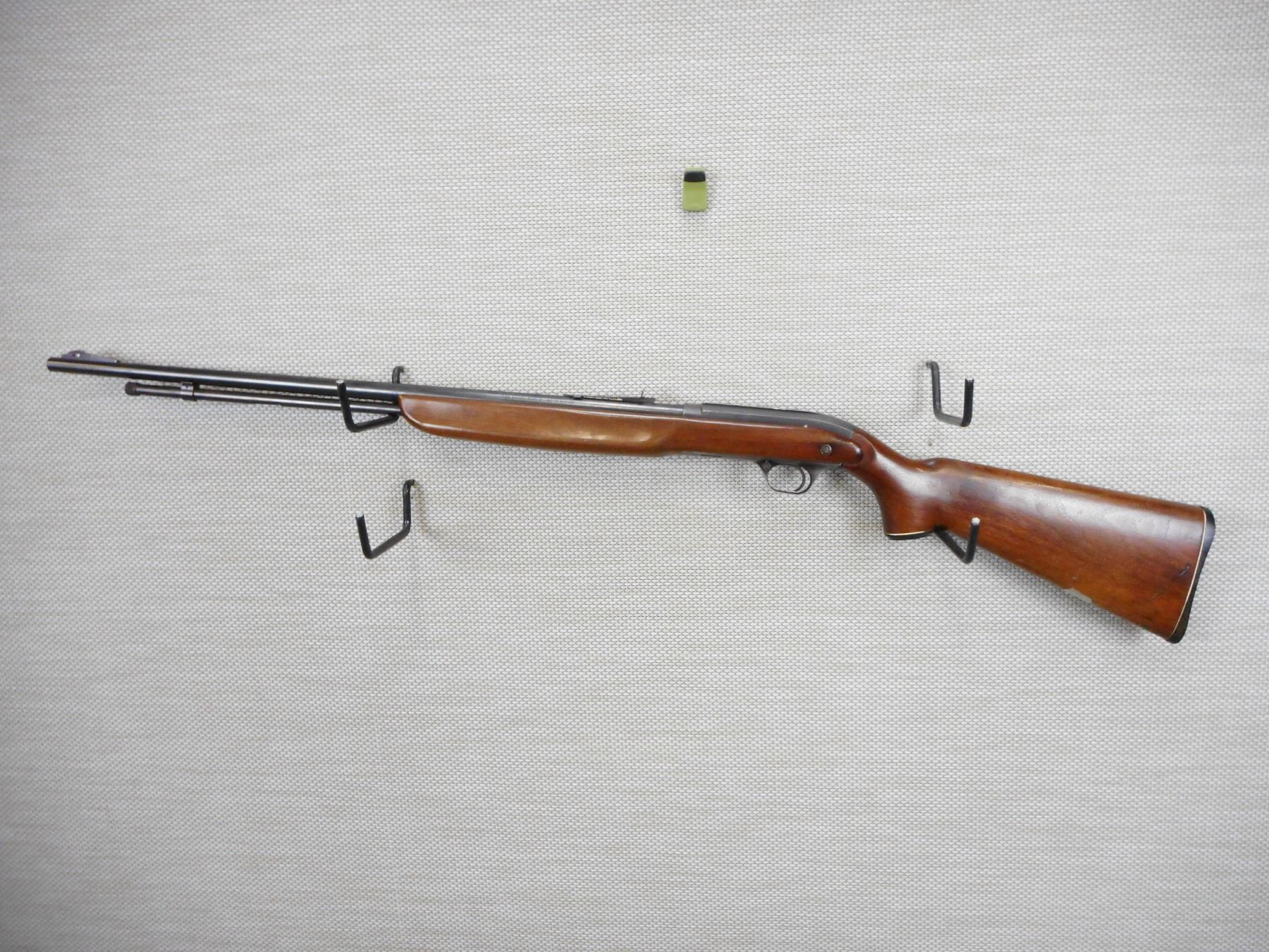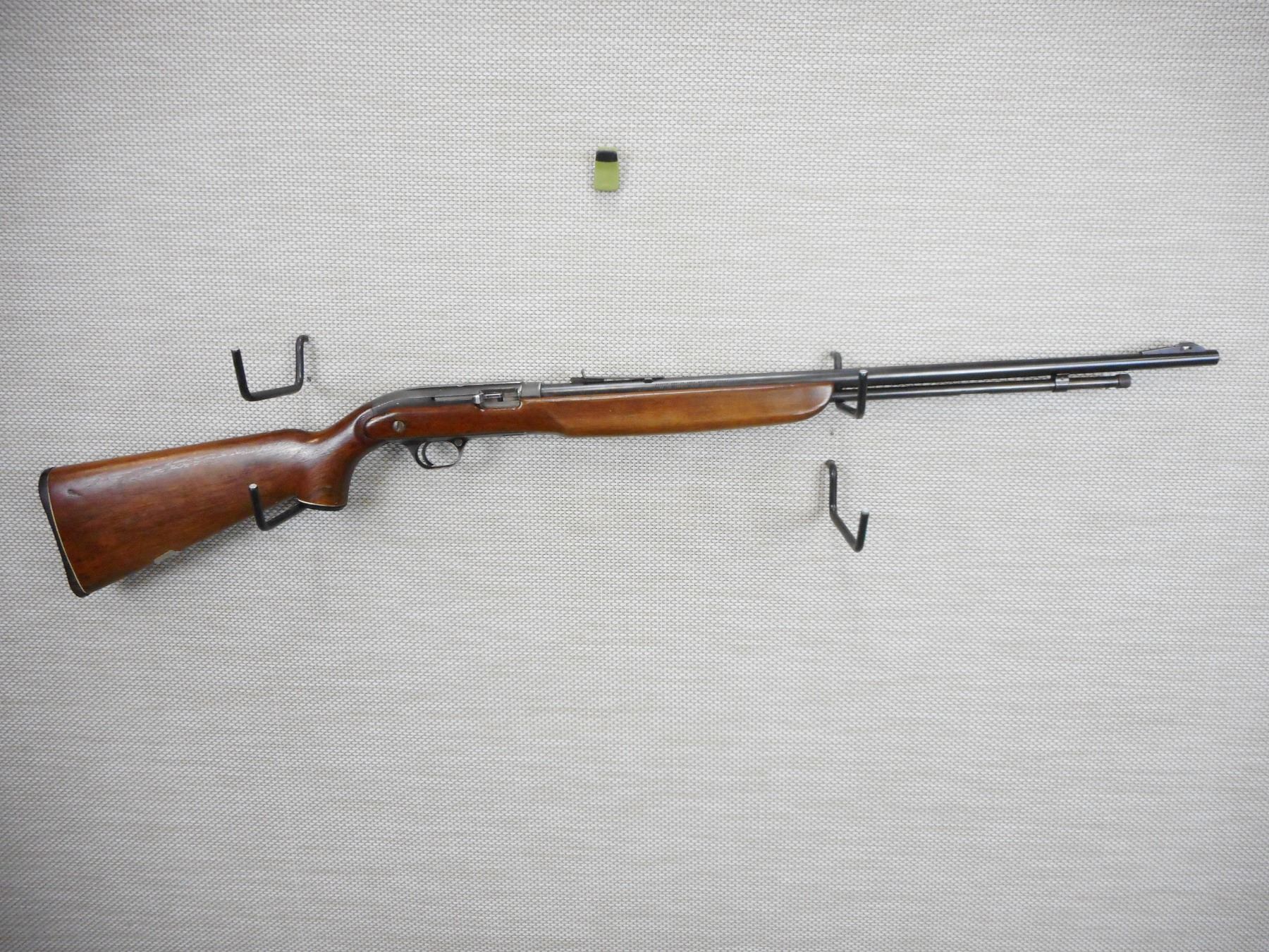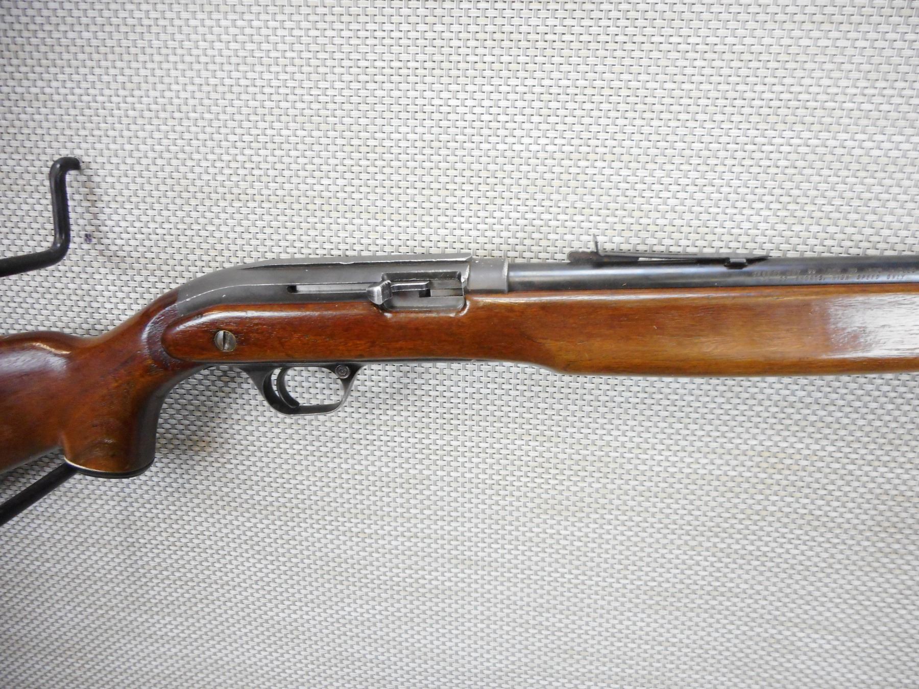 J.C. HIGGINS , MODEL: 31, CALIBER: 22 LR , BORE IS GOOD, BLADE FRONT AND ADJUSTABLE REAR SIGHTS, CAPPED PISTOL GRIP BUTT STOCK WITH PLASTIC BUTT PLATE, RECEIVER IS GROOVED FOR SCOPE MOUNTS, SHOWS SOME HANDLING MARKS , ACTION: SEMI AUTOMATIC RIFLE , BARREL LENGTH: 24" , CONDITION: 6/10 , STOCK # 9364 , SERIAL # N/A , CLASS: CANADIAN NON RESTRICTED CLASS