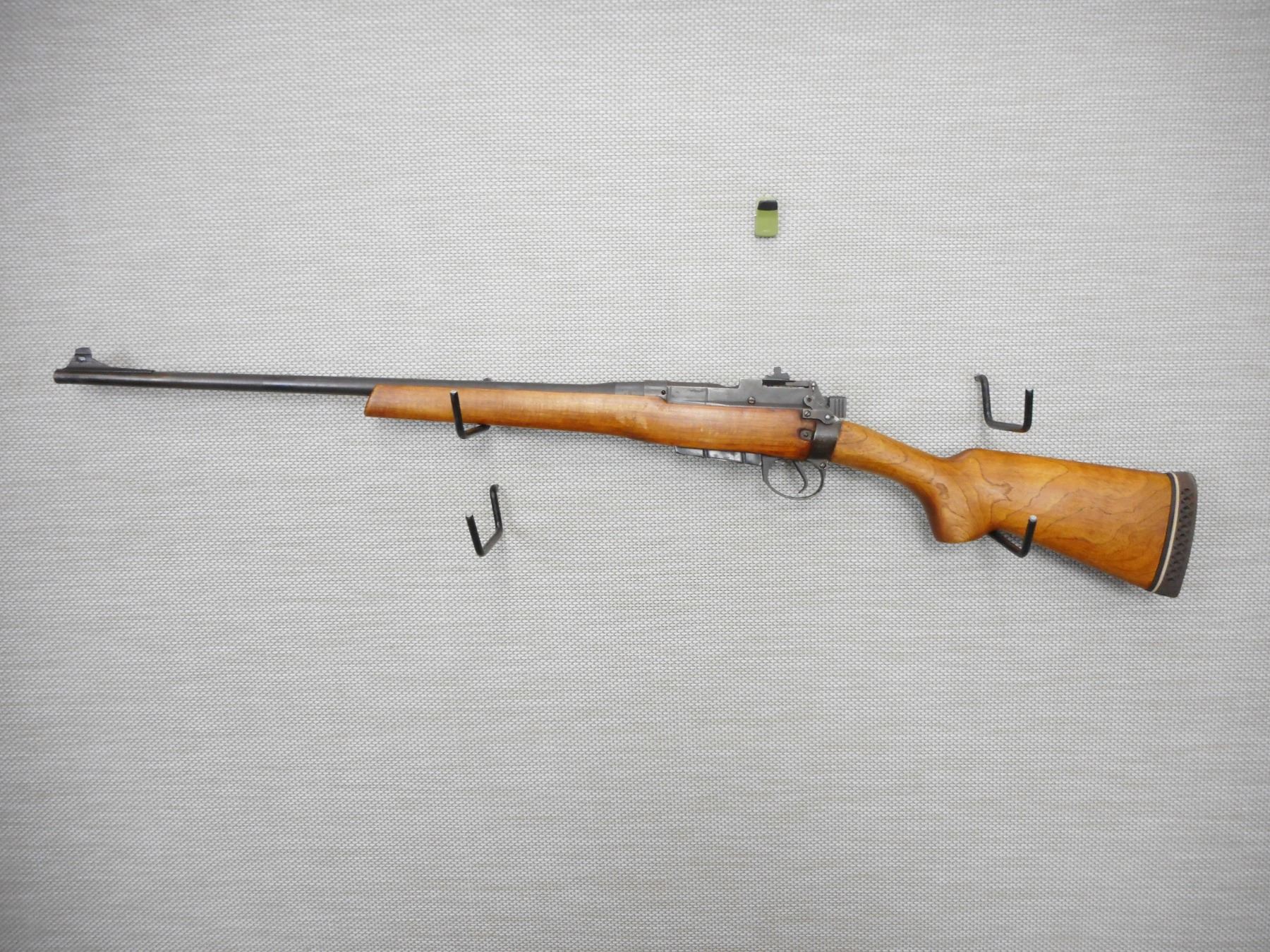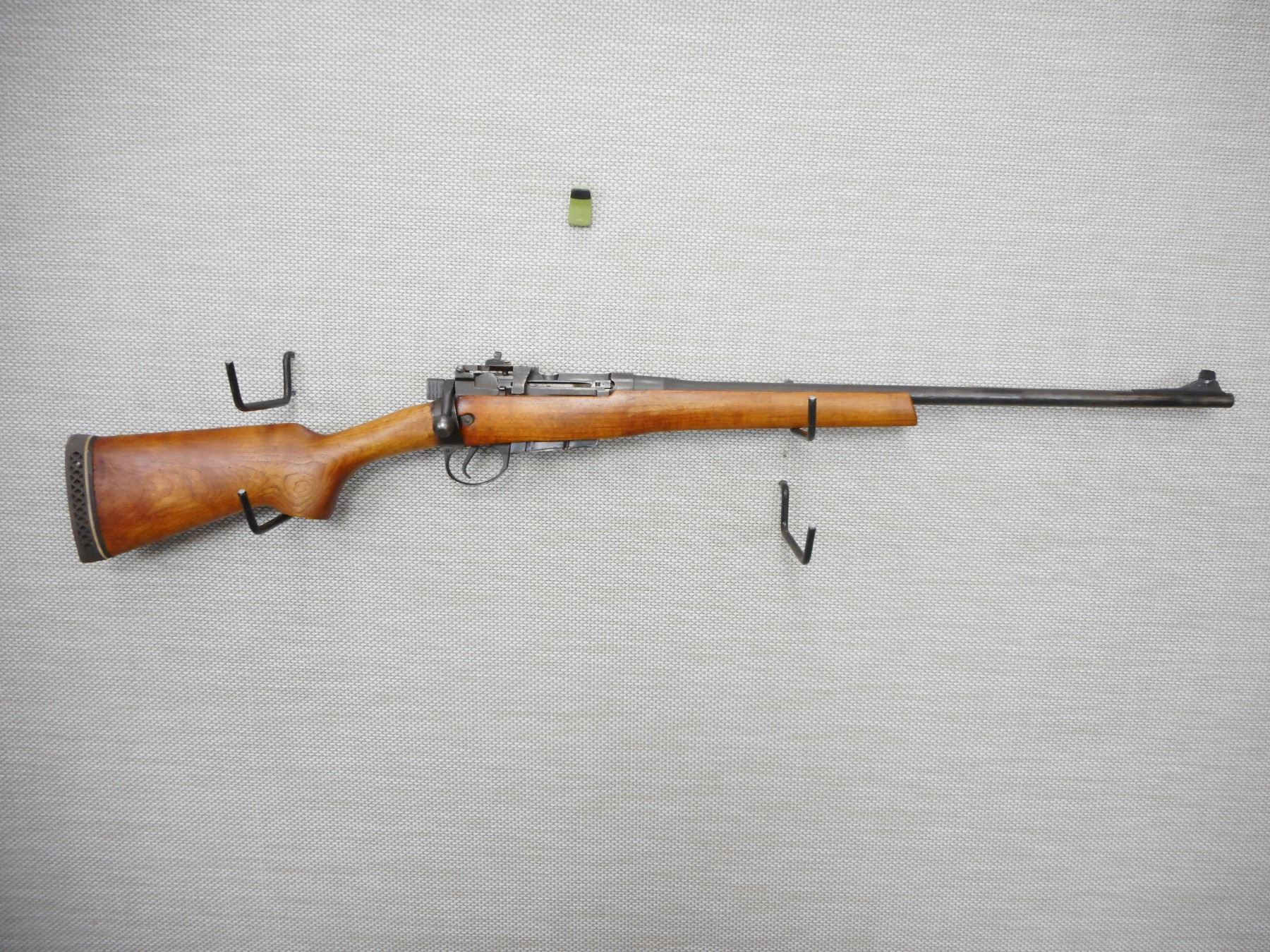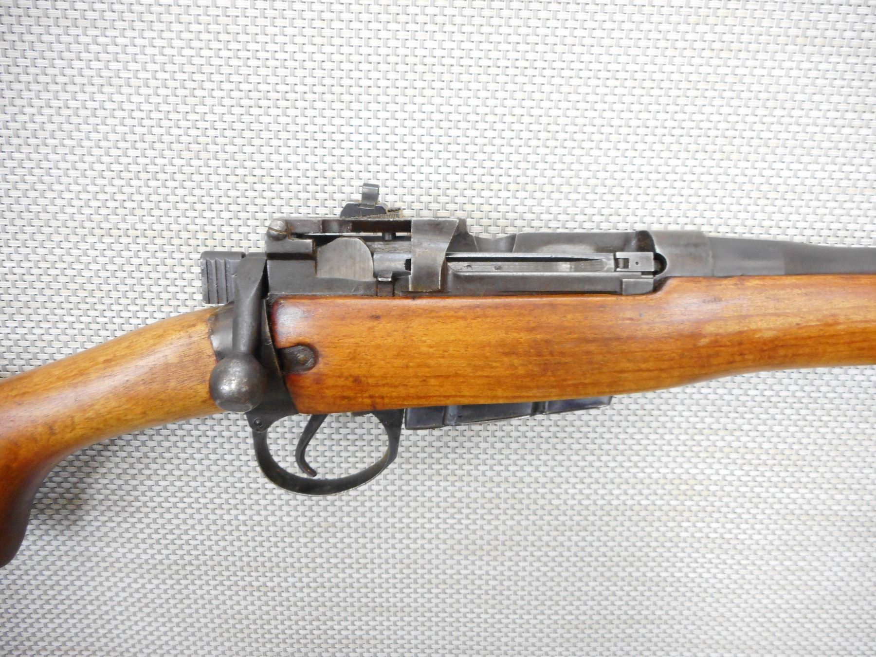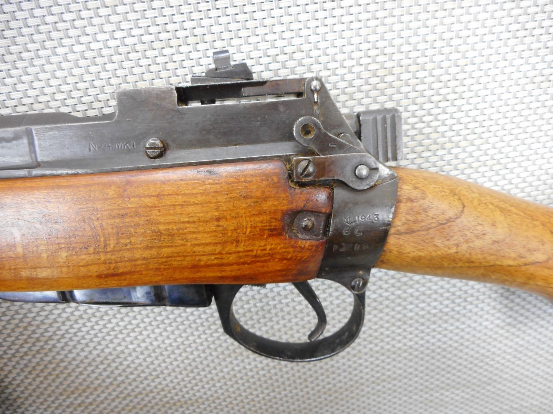 WWII ERA, LEE ENFIELD, MODEL: NO 4 MKI SPORTER, CALIBER: 303 BR , COMES WITH MAGAZINE, DATED 1943, BRD ARROW MARKED, BOLT AND RECEIVER MATCH BY SERIAL #, BORE IS VERY GOOD, BLADE FRONT SIGHT AND PEEP REAR SIGHT, VENTED RUBBER RECOIL PAD , ACTION: BOLT ACTION RIFLE , BARREL LENGTH: 22 1/2" , CONDITION: 6/10 , STOCK # 9371 , SERIAL # 13619 , CLASS: CANADIAN NON RESTRICTED CLASS