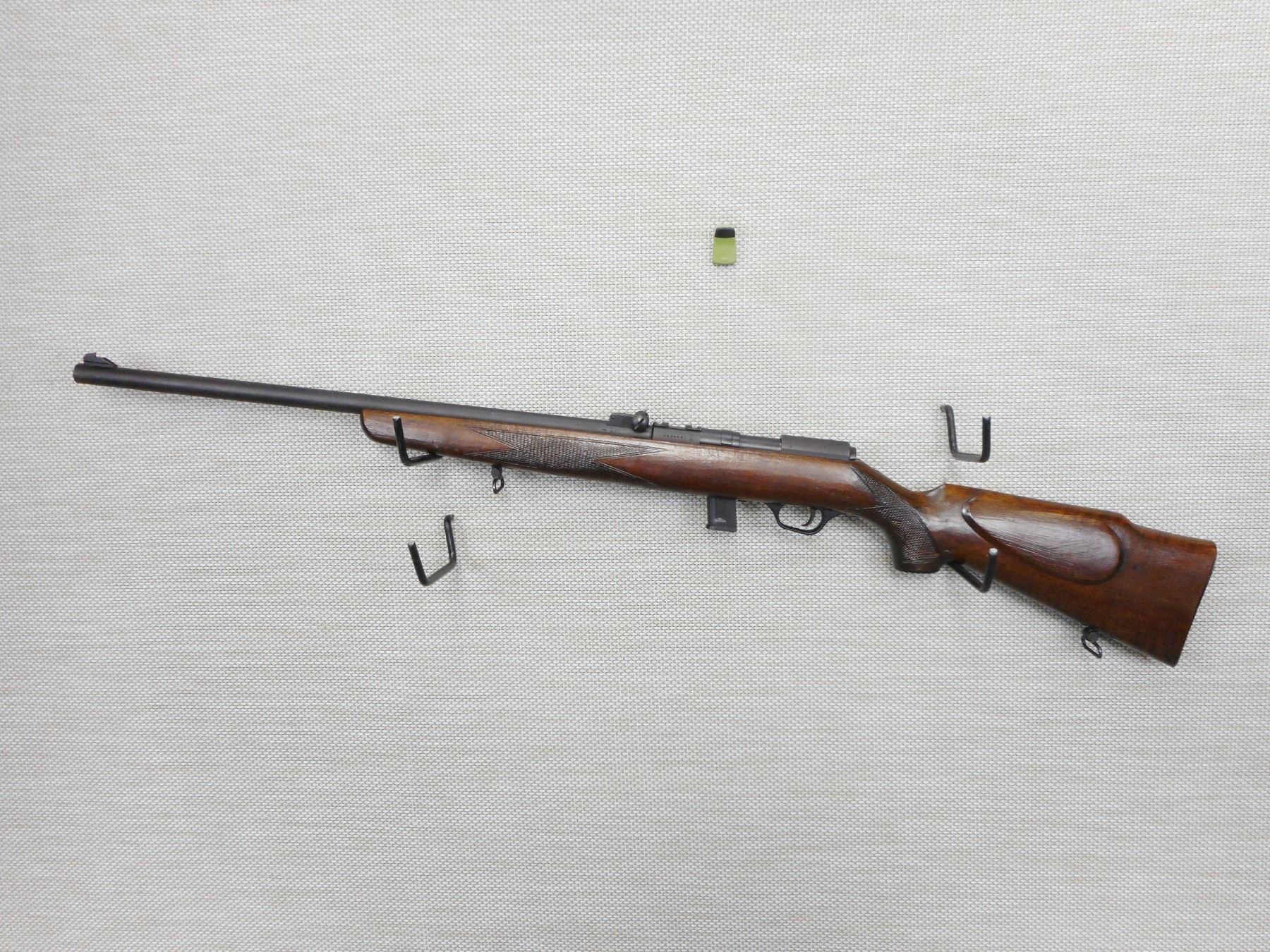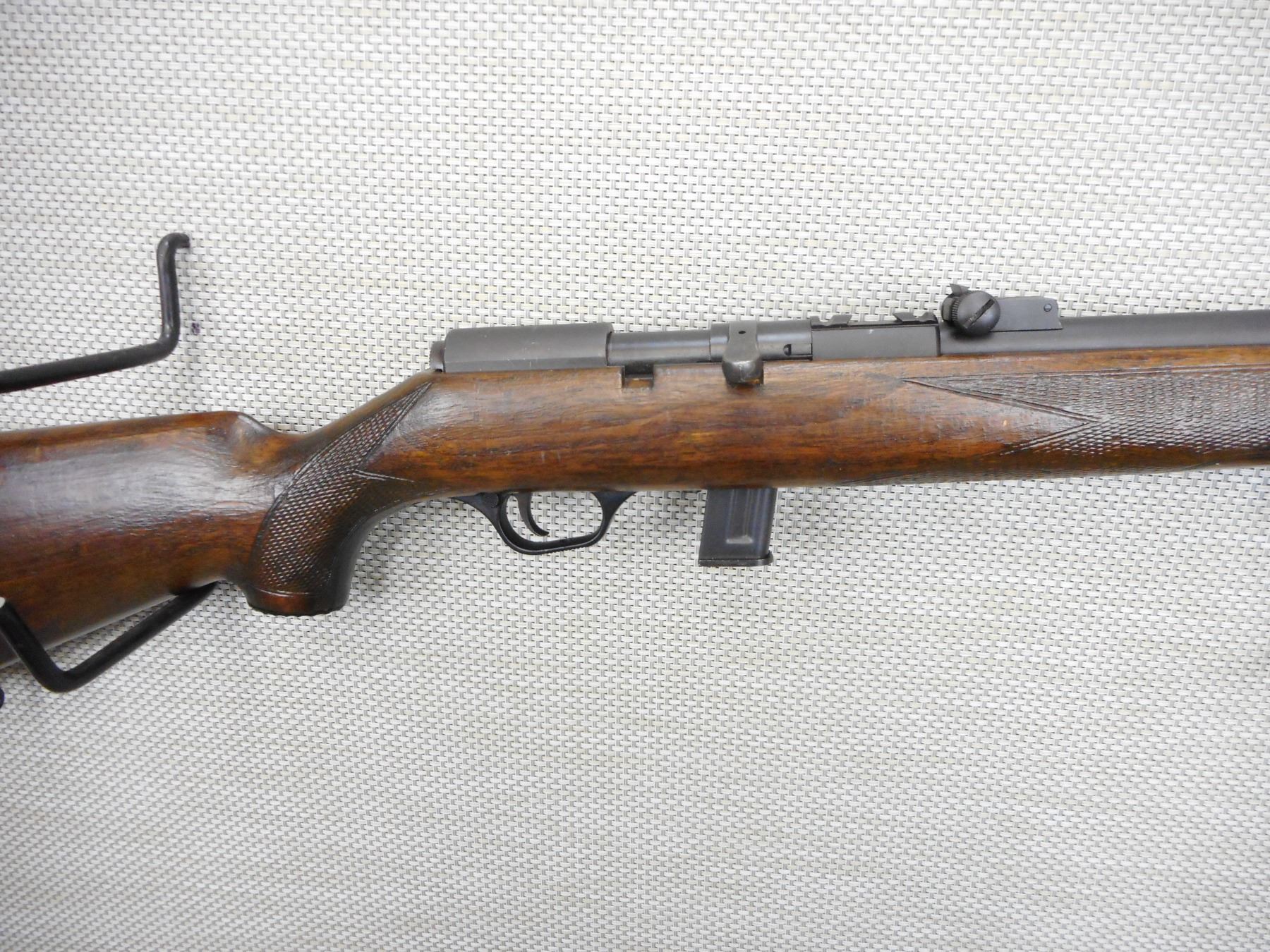 BERETTA, MODEL: OLIMPIA SUPER SPORT , CALIBER: 22 LR , COMES WITH MAGAZINE, VERY GOOD BORE, BLADE FRONT AND ADJUSTABLE REAR SIGHTS, CHECKERED FOREND AND CAPPED PISTOL GRIB BUTT STOCK, SLING SWIVEL LOOPS, STEEL BUTT PLATE, STOCK APPEARS TO BE REVARNISHED, SHOWS SOME HANDLING MARKS , ACTION: SEMI AUTOMATIC RIFLE , BARREL LENGTH: 23.5" , CONDITION: 6/10 , STOCK # 9374 , SERIAL # D43449 , CLASS: CANADIAN NON RESTRICTED CLASS