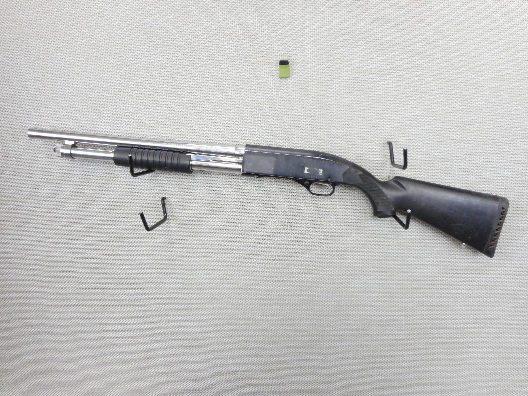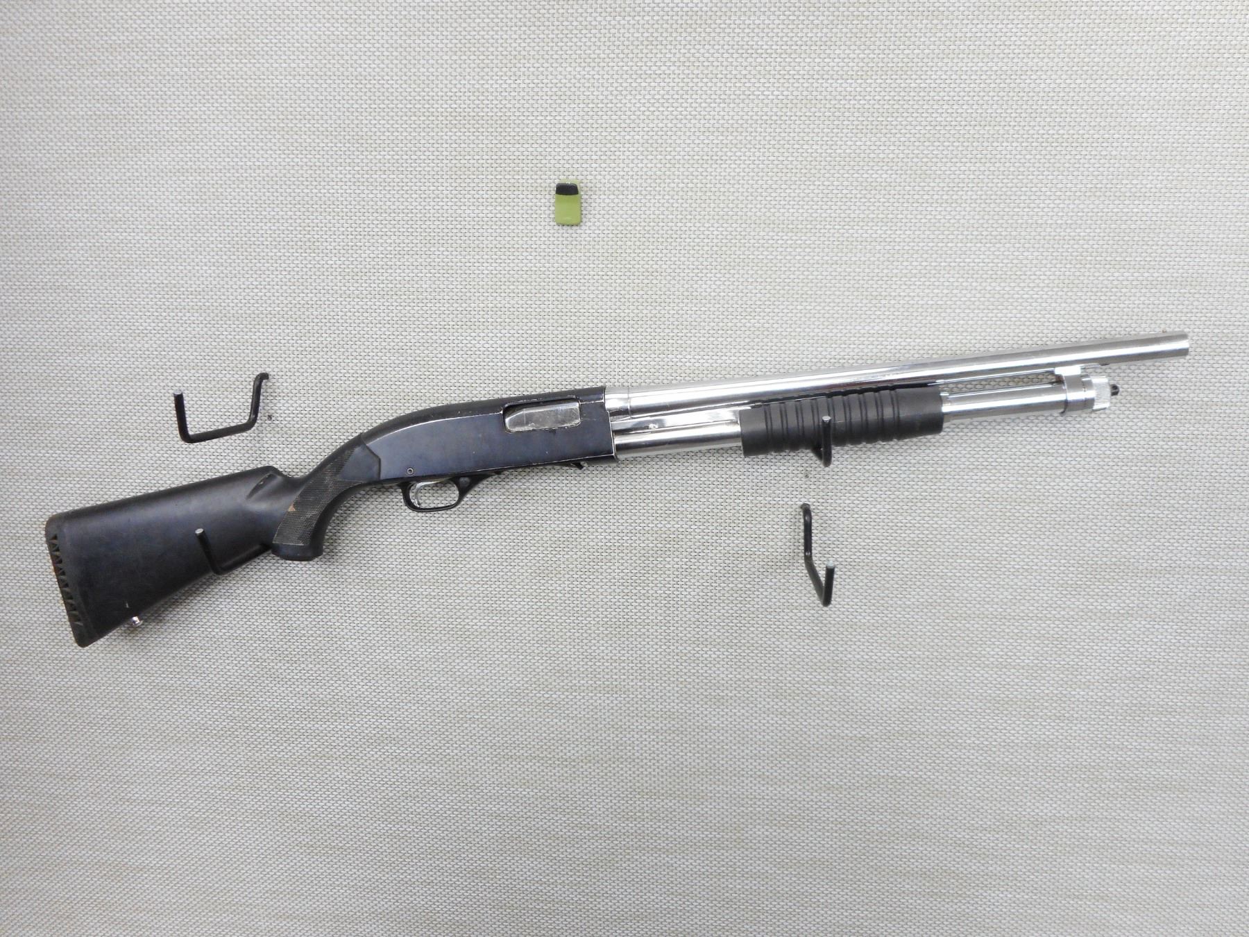 WINCHESTER, MODEL: 1300 STAINLESS MARINE , CALIBER: 12GA X 3" , CYLINDER BORE, VERY GOOD BORE, SYNTHETIC BORE END, WITH SEMI PISTOL GRIP STOCK, SHOWS EXTENSIVE HANDLING MARKS, BEAD FRONT SIGHT, SLING SWIVEL LOOPS , ACTION: PUMP ACTION SHOTGUN , BARREL LENGTH: 18" , CONDITION: 5/10 , STOCK # 9394 , SERIAL # L2961598 , CLASS: CANADIAN NON RESTRICTED CLASS
