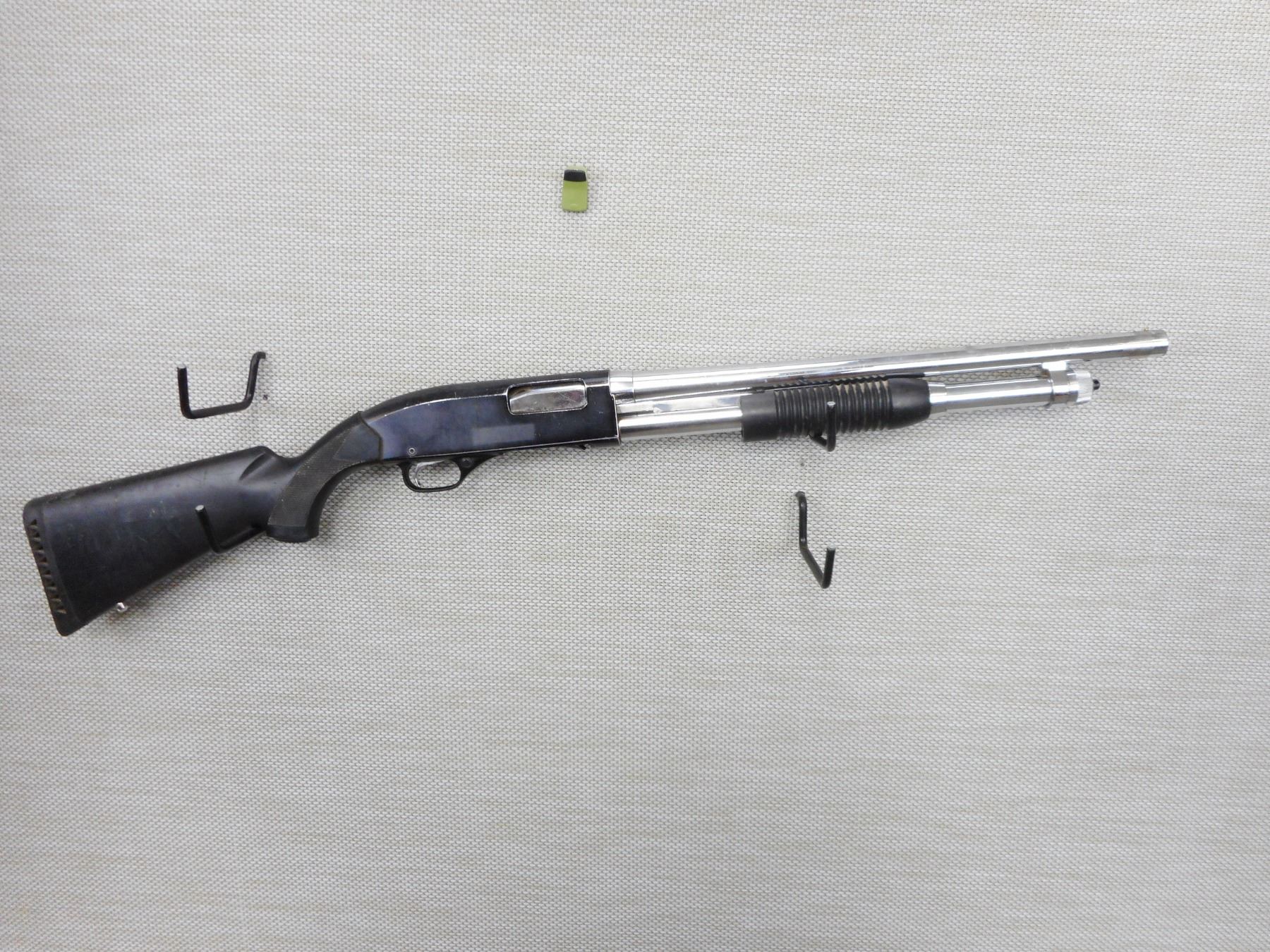 WINCHESTER, MODEL: 1300 STAINLESS MARINE , CALIBER: 12GA X 3" , CYLINDER BORE, GOOD BORE, SYNTHETIC FOREND, BEAD FRONT SIGHT, CAPPED PISTOL GRIP STOCK, WITH VENTED RUBBER RECOIL PAD, SLING SWIVEL LOOPS, SHOWS SOME HANDLING MARKS , ACTION: PUMP ACTION SHOTGUN , BARREL LENGTH: 18" , CONDITION: 5/10 , STOCK # 9397 , SERIAL # L2961485 , CLASS: CANADIAN NON RESTRICTED CLASS