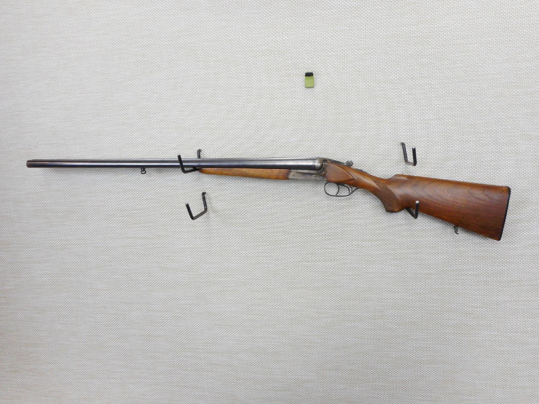 J.P. SAUER 7 SOHN , MODEL: SIDE BY SIDE , CALIBER: 12GA X 2 3/4" , 12 GA. FULL AND FULL FIXED CHOKES, BEAD FRONT SIGHT, CHECKERED FOREND AND CAPPED PISTOL GRIP BUTT STOCK, PLASTIC PISTOL GRIP BUTT PLATE, EXCELLENT BORE, COCKING INDICATORS, SHOWS SOME HANDLING MARKS , ACTION: SIDE BY SIDE SHOTGUN , BARREL LENGTH: , CONDITION: 8/10 , STOCK # 9407 , SERIAL # 300206 , CLASS: CANADIAN NON RESTRICTED CLASS