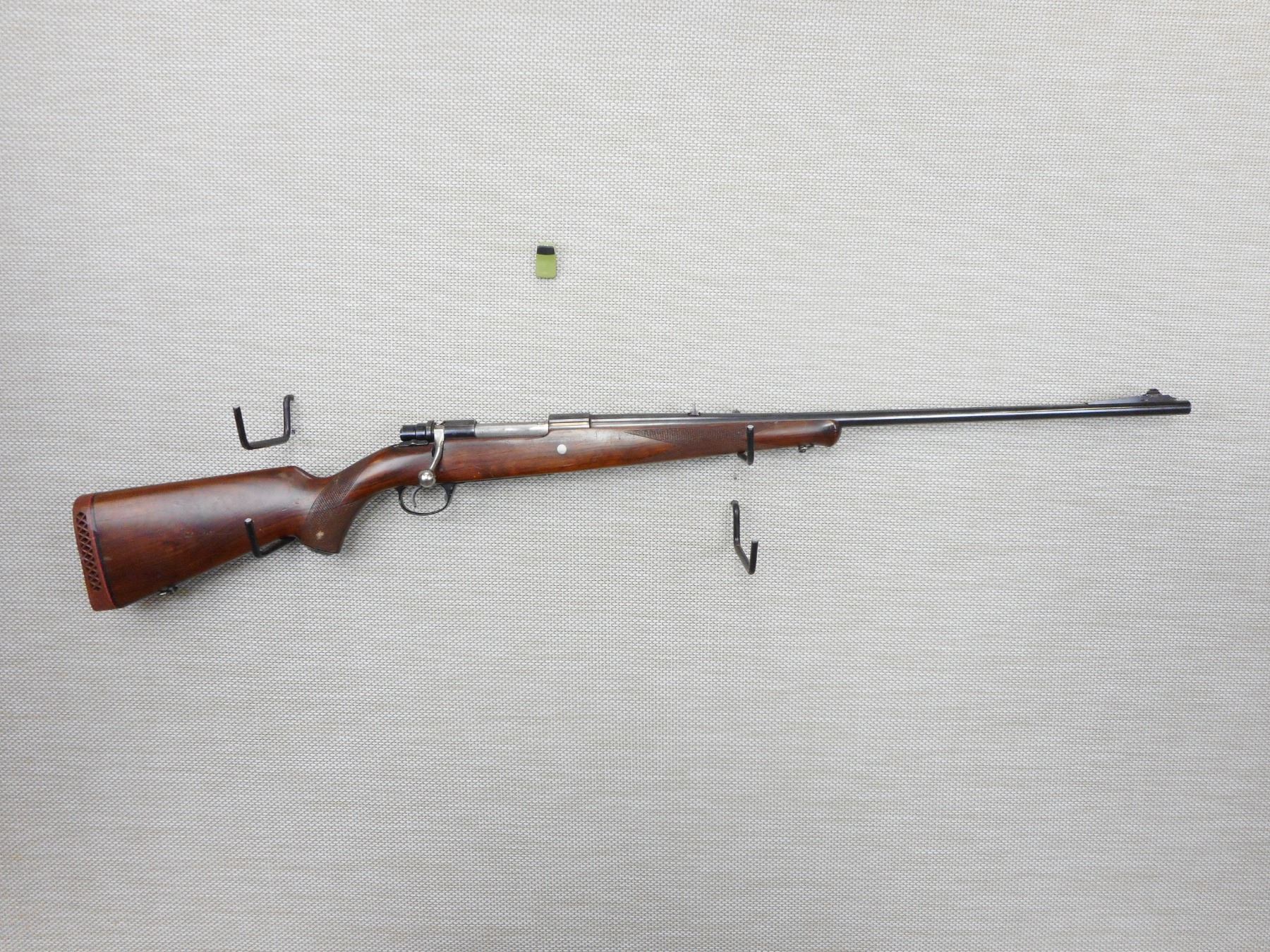 HUSQVARNA, MODEL: 1651, CALIBER: 358 NORMA MAGNUM , VERY GOOD BORE, CHECKERED FOREND AND CAPPED PISTOL GRIP BUTT STOCK, WITH R, HINGED FLOOR PLATE, WITH RAISED CHEEK PIECE, VENTED RUBBER RECOIL PAD, RAMPED FRONT AND FIXED REAR SIGHTS, DRILLED AND TAPPED FOR SCOPE MOUNTS, SHOWS SOME HANDLING MARKS , ACTION: BOLT ACTION RIFLE , BARREL LENGTH: 26" , CONDITION: 7/10 , STOCK # 9415 , SERIAL # 254880 , CLASS: CANADIAN NON RESTRICTED CLASS